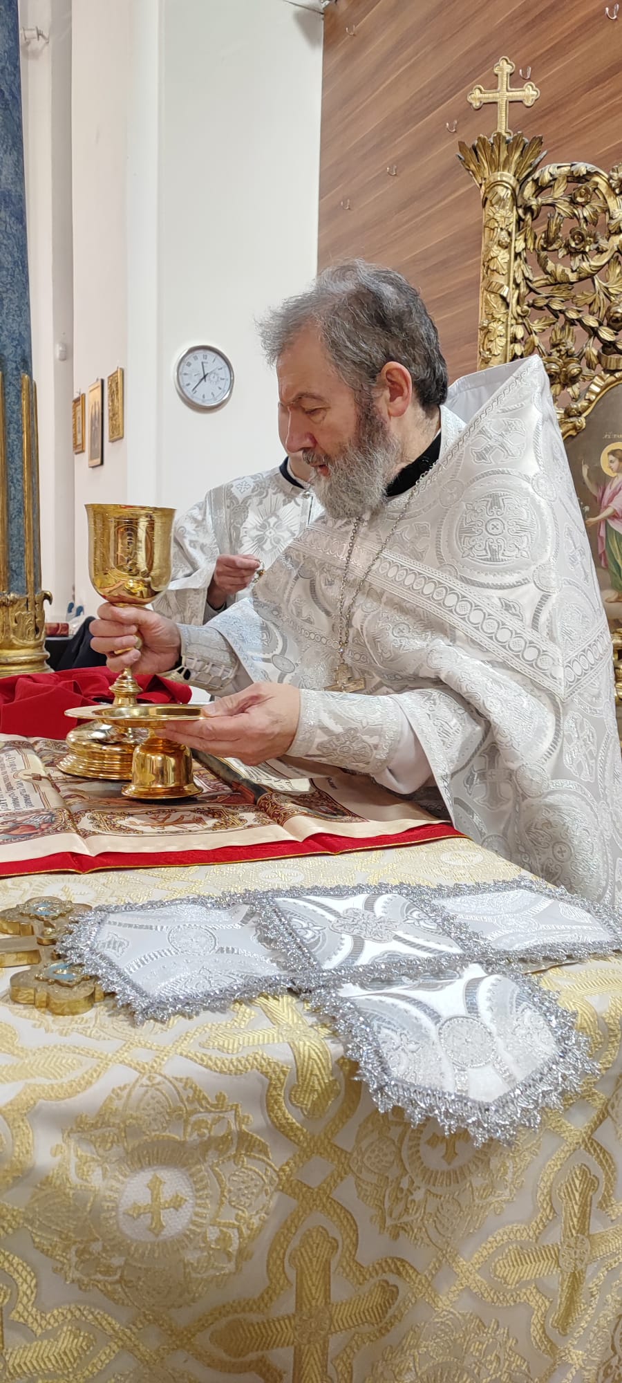 Её совершил священник Свято-Троицкого прихода Святослав Булах. Таинство исповеди во время совершения литургии принимал у верующих настоятель прихода иерей Димитрий Корнилов.