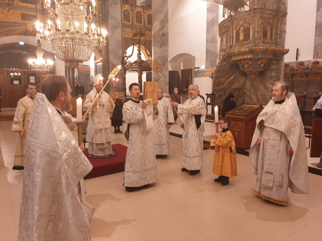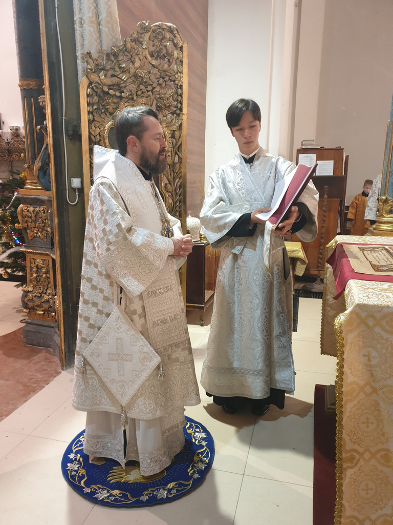 Утром 8 января 2023 года, в воскресный день, именуемый в церковной традиции Неделей по Рождестве Христовом, в Успенском кафедральном соборе Будапешта была совершена Божественная литургия, возглавил которую Высокопреосвященнейший Иларион, митрополит Будапештский и Венгерский. Владыке сослужили настоятель Свято-Троицкого прихода г. Будапешта иерея Димитрий Корнилов, священник Свято-Троицкого прихода Святослав Булах, и архиерейский диакон собора Вячеслава Ли.
