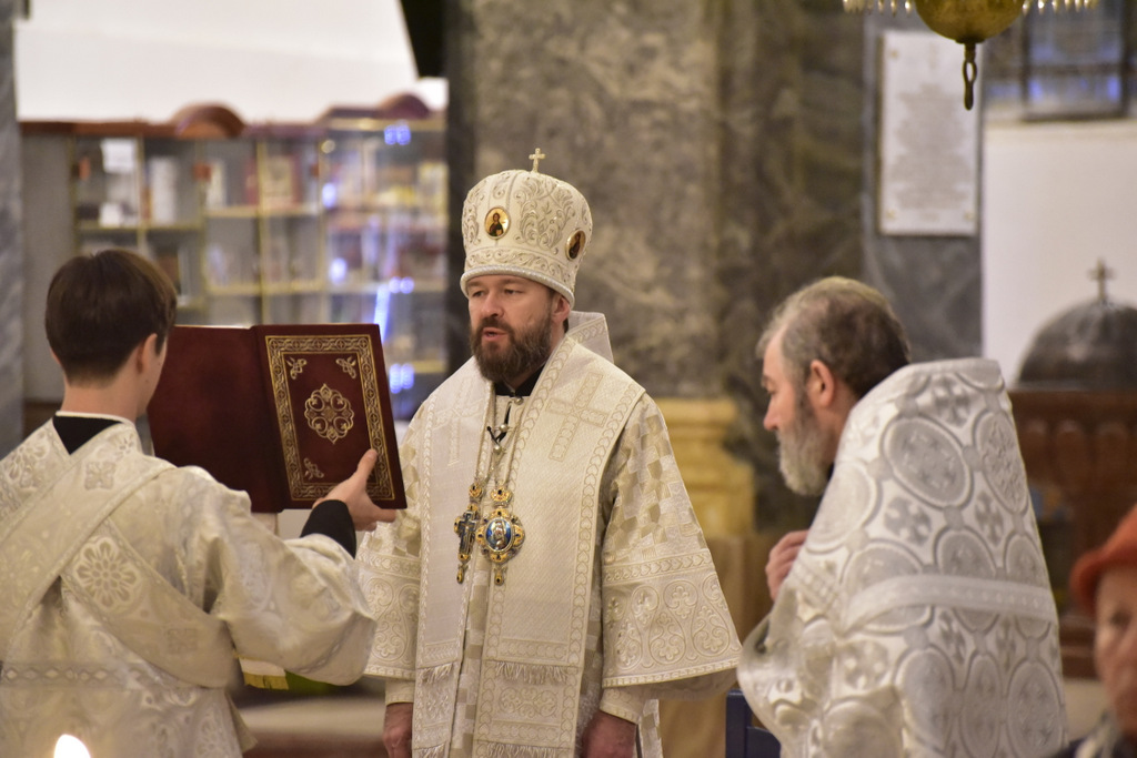 В завершение воскресного богослужения Владыка Иларион обратился к молящимся с архипастырским словом, раскрыв содержание евангельского чтения Божественной литургии, а также поблагодарил прихожан за совместную молитву, поздравил причастников с принятием Святых Христовых Тайн и преподал всем свое благословение.