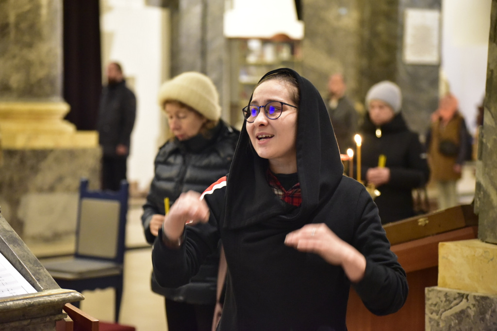 Молитвенные песнопения Рождественского попразднства, его торжественные стихиры, величественный тропарь исполнили певчие хора Свято-Троицкого прихода под управлением регента Евы Гволик.