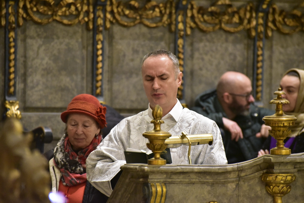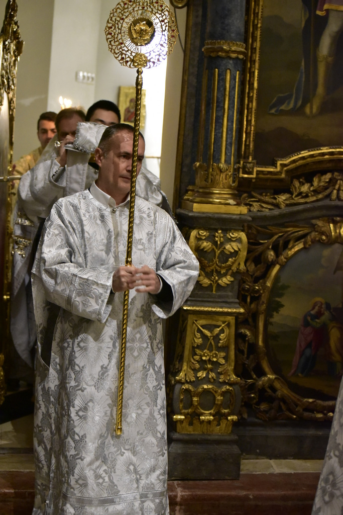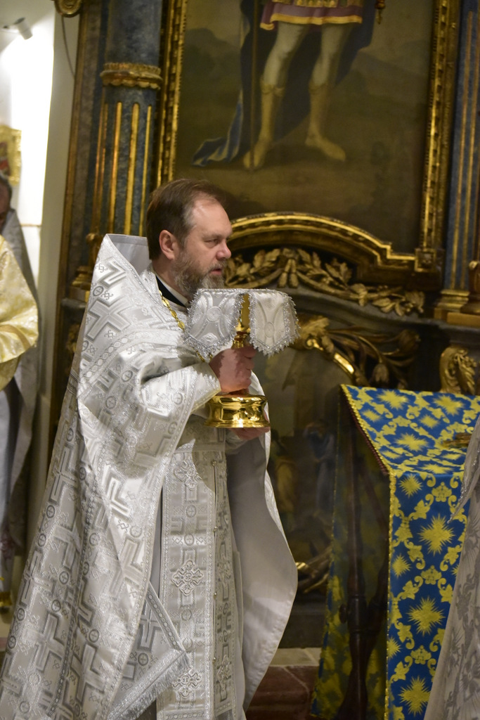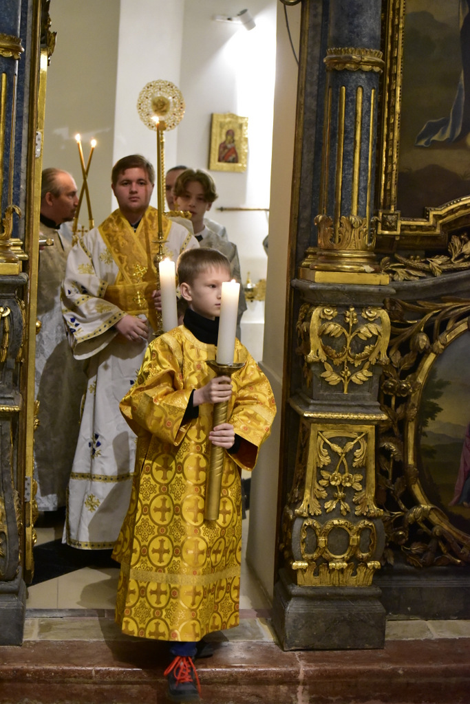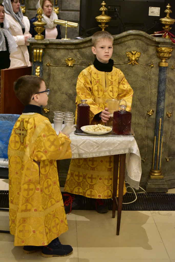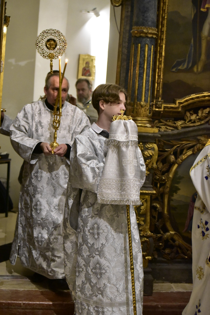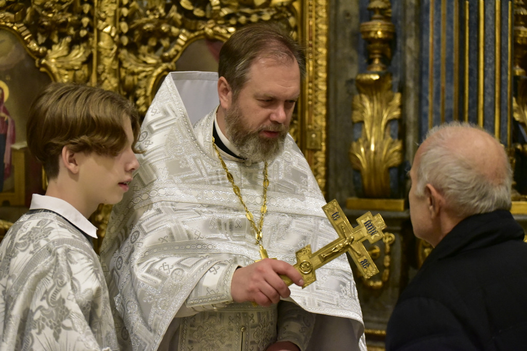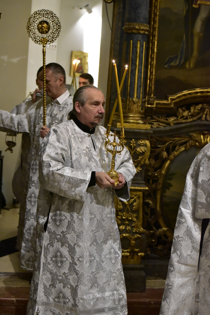 В апостольском послании к Галатам, прочитанном алтарником Юрием Юревичем, молящимся был представлен рассказ святого Павла о его неумеренном, в прошлом, ревностном следовании отеческим преданиям. Апостол Павел признается, что, будучи чрезмерным ревнителем не Священного Писания и даже не Закона Моисея, а преданий иудейских старейшин – этой совокупности правил жизни, нравов и обычаев иудейства, он не узнал Мессию еврейского народа, стал первым гонителем Церкви Божией, нового Израиля.