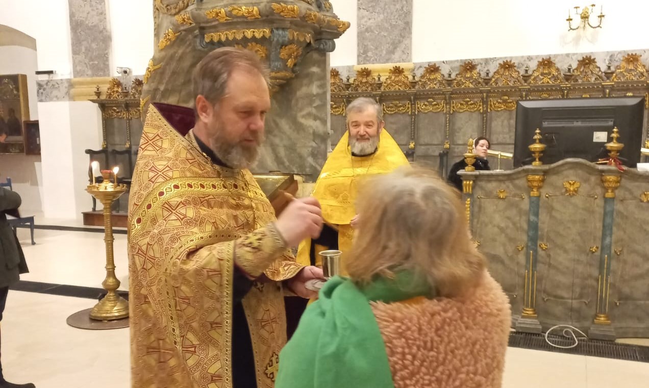 В конце богослужения, поблагодарив прихожан за совместную молитву, отец Димитрий напомнил о том, что завтрашним утром в Успенском кафедральном соборе будет совершаться архиерейская Божественная литургия, начало которой в 10 часов.