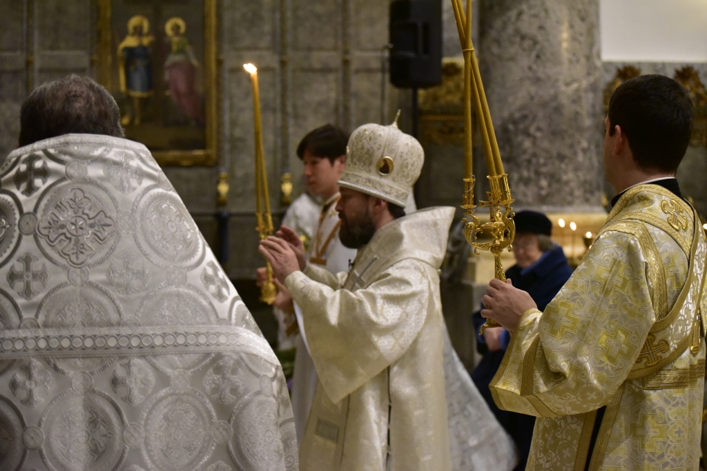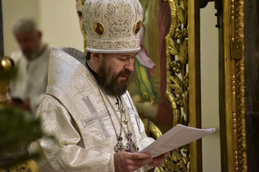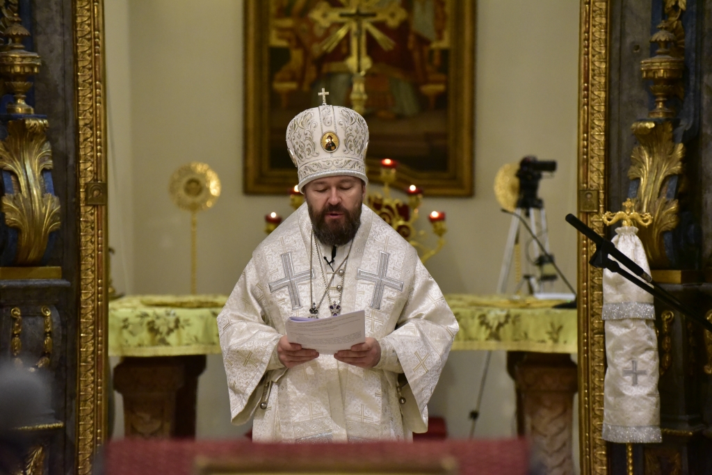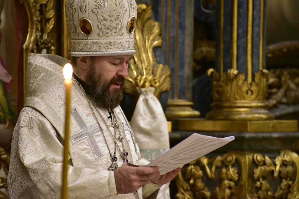 По прочтении Священного Писания митрополит Иларион вознес молитву о восстановлении мира на Украине.