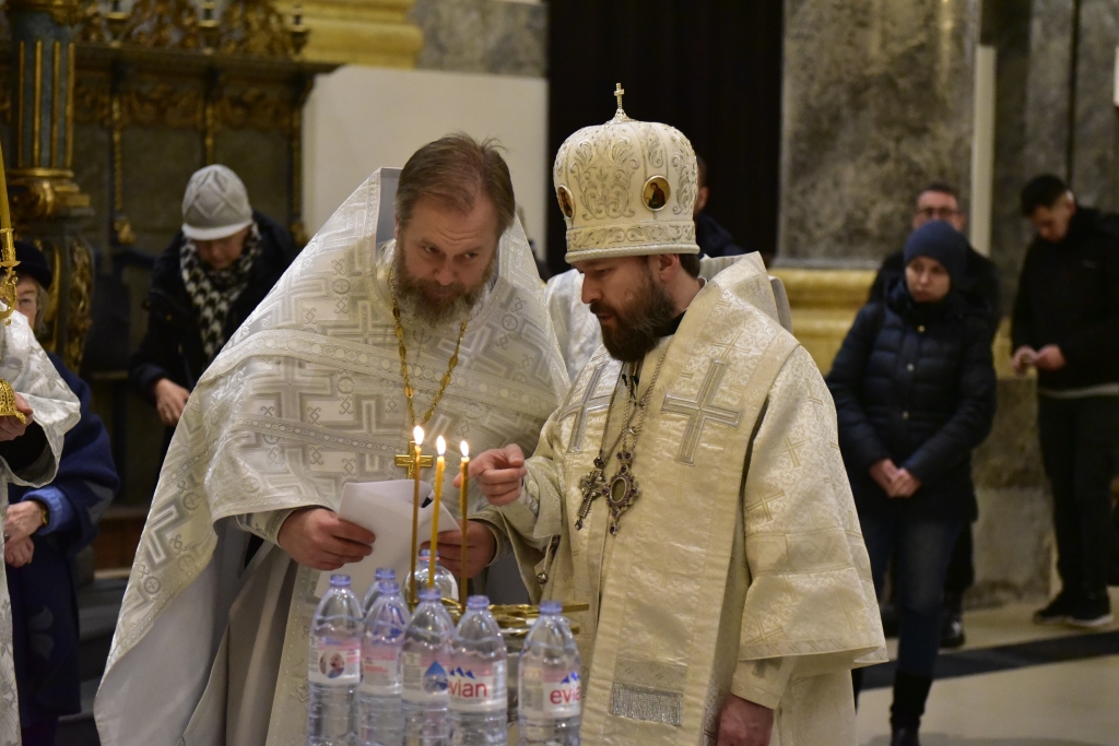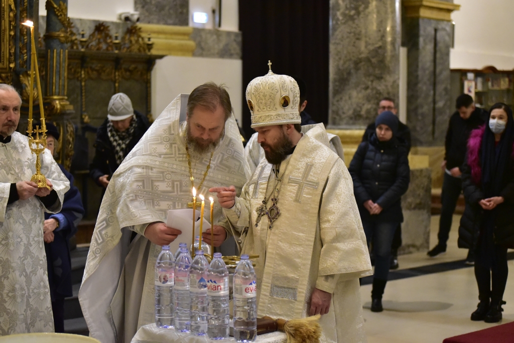 Крещенский сочельник 18 января 2023 года, в преддверии великого двунадесятого праздника Крещения Господа Бога и Спаса нашего Иисуса Христа, на утреннем богослужении, именуемом на языке церковного устава навечерием Богоявления, а также Крещенским сочельником, в Успенском кафедральном соборе г. Будапешта состоялась вечерня с литургией святого Василия Великого, и последующим за ними чином великого освящения воды.