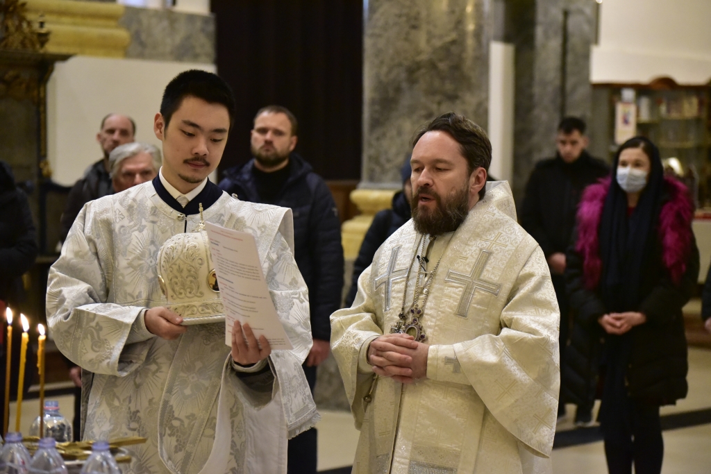 Ему сослужил настоятель Свято-Троицкого прихода г. Будапешта иерей Димитрий Корнилов, священник Свято-Троицкого прихода Святослав Булах, архиерейский диакон Вячеслав Ли.