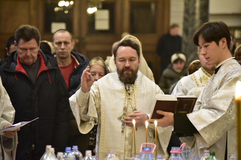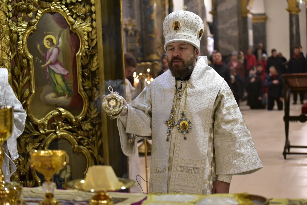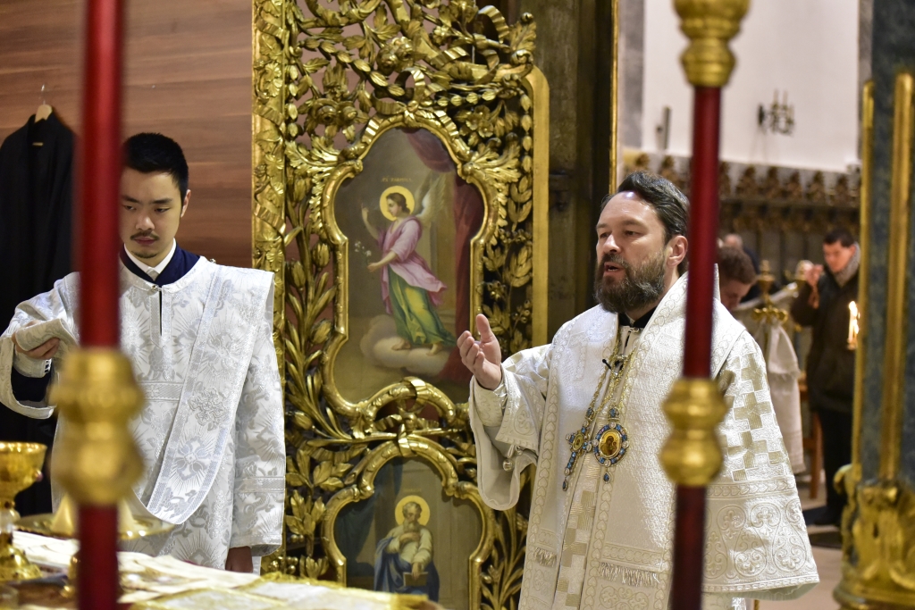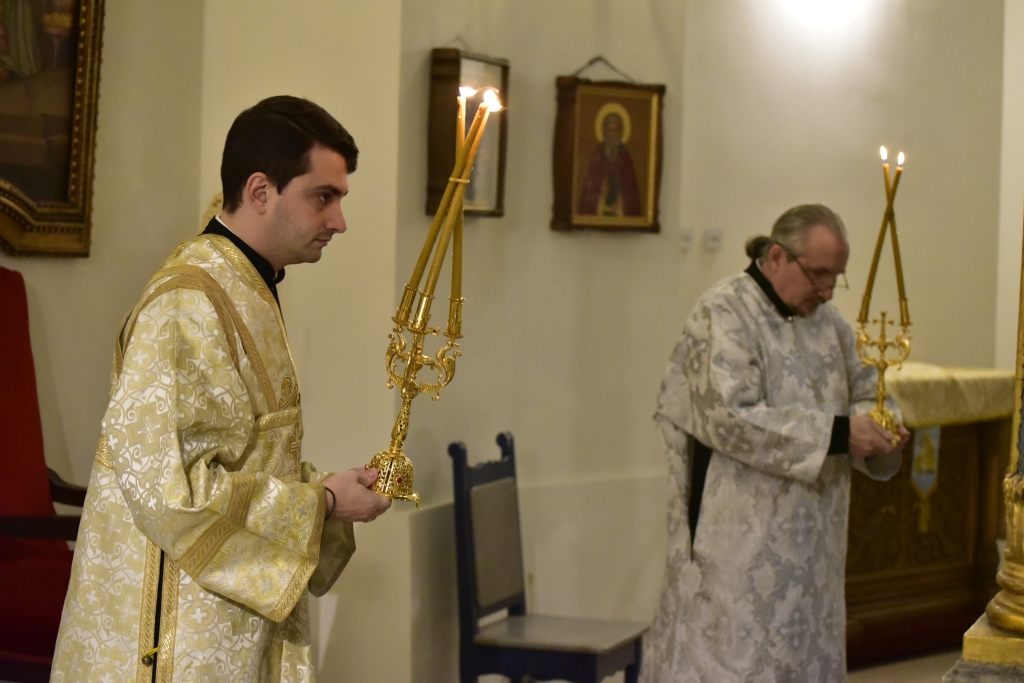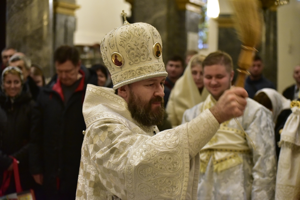 Главе Венгерской епархии сослужил настоятель Свято- Троицкого прихода иерей Димитрий Корнилов, а также священник Свято- Троицкого прихода Святослав Булах и архиерейский диакон Вячеслав Ли.