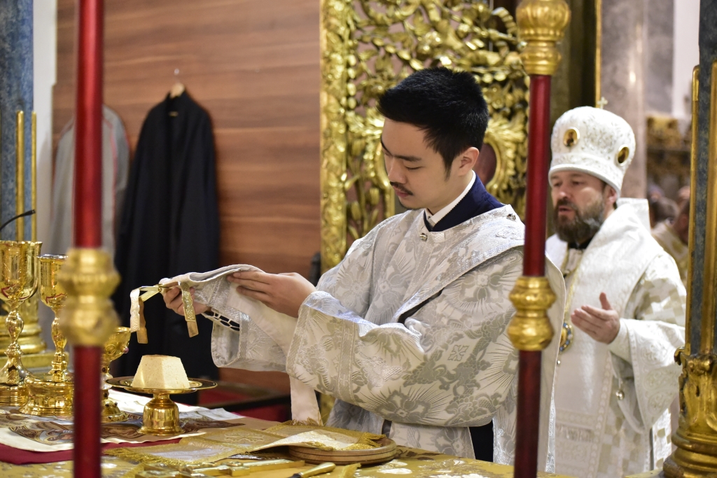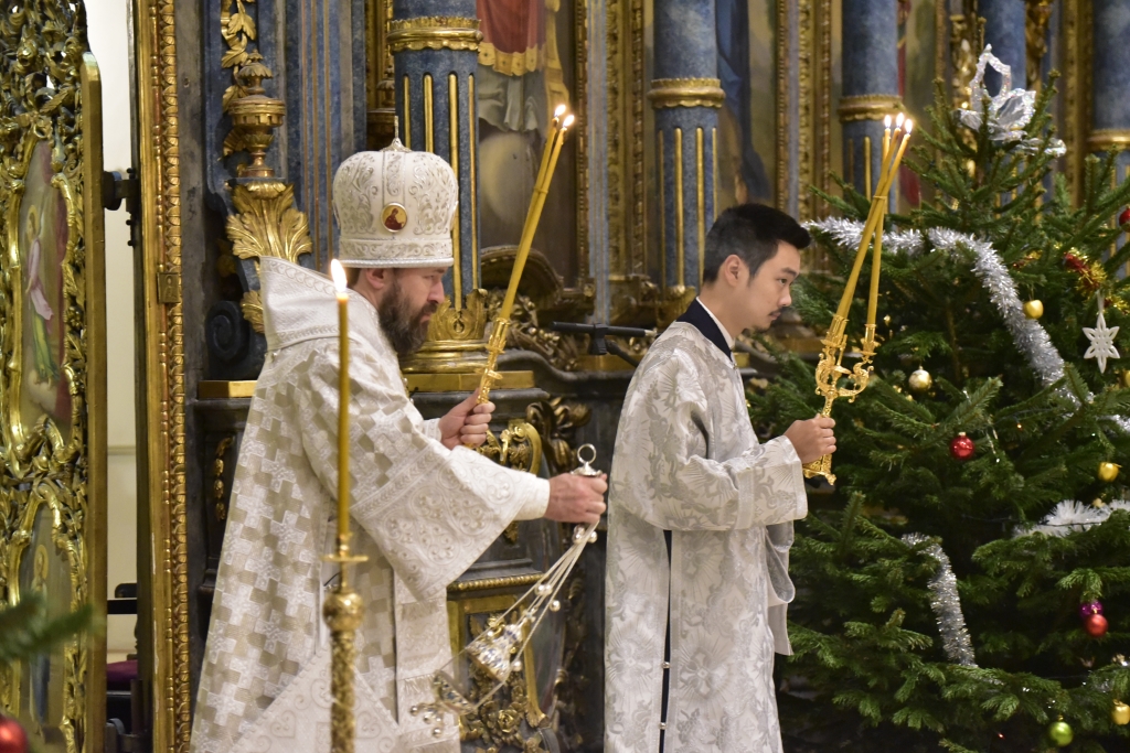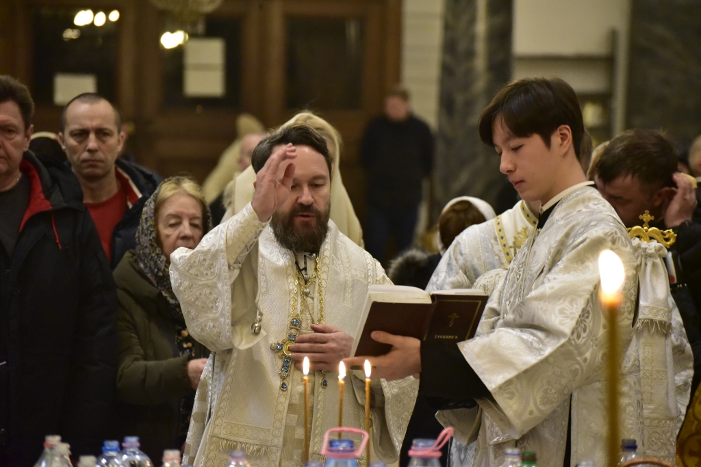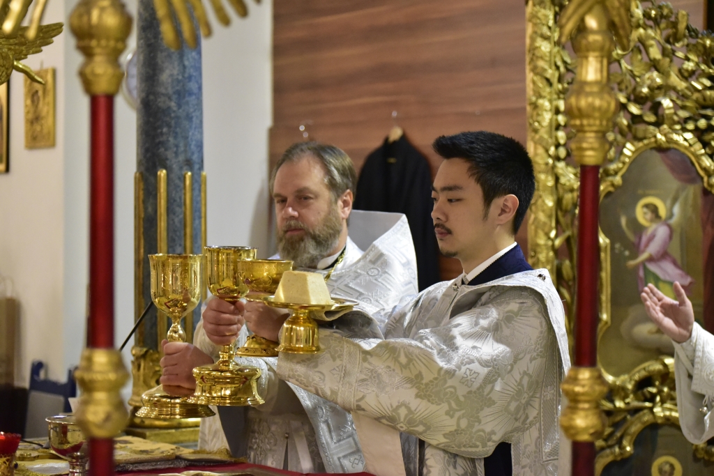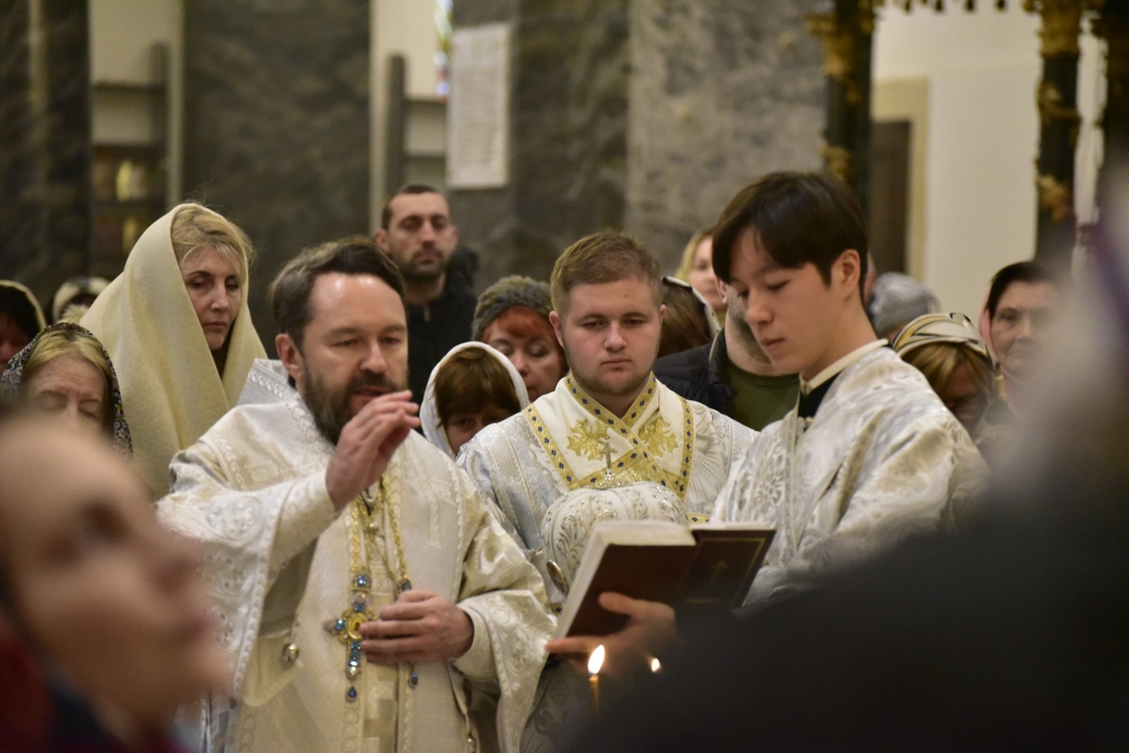 Главе Венгерской епархии сослужил настоятель Свято- Троицкого прихода иерей Димитрий Корнилов, а также священник Свято- Троицкого прихода Святослав Булах и архиерейский диакон Вячеслав Ли.