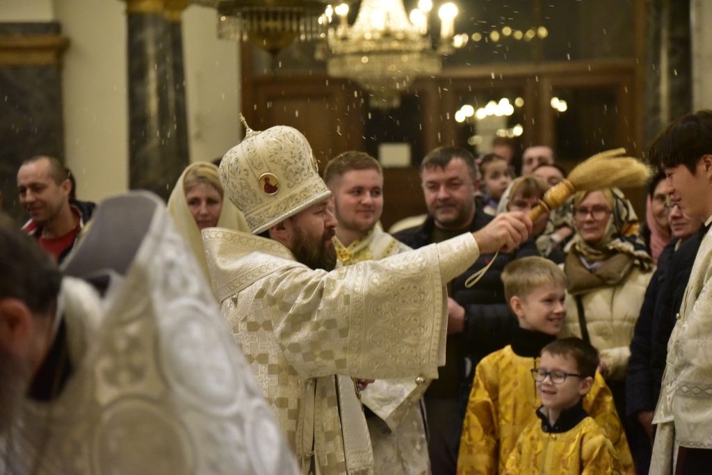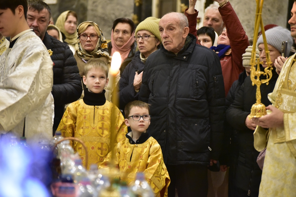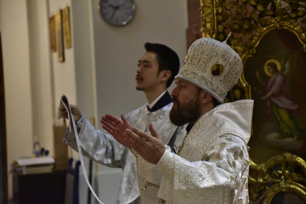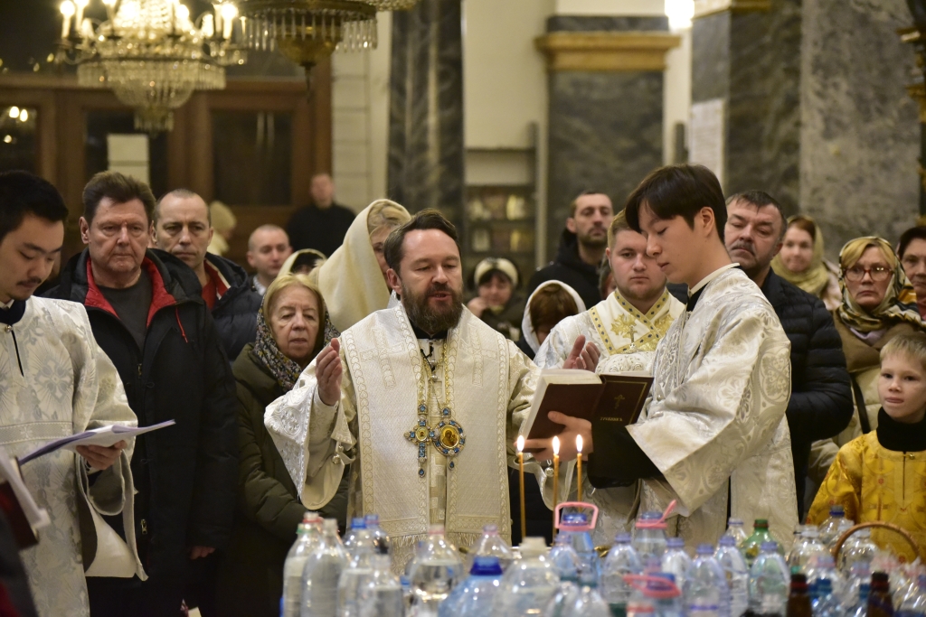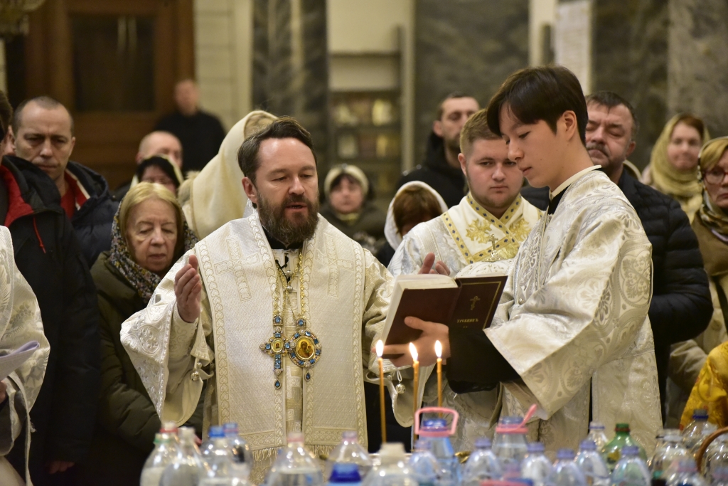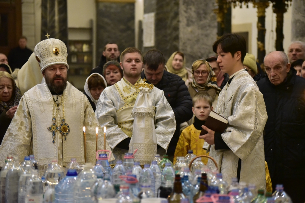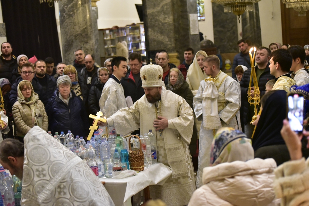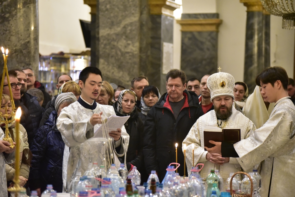 В возвещенном диаконом Вячеславом Ли евангельском фрагменте от Матфея, молящиеся услышали рассказ о священном событии Крещения Господа Иисуса Христа во Иордане. По прочтении Священного Писания, после сугубой ектении митрополит Иларион вознес молитву о восстановлении мира на Украине.