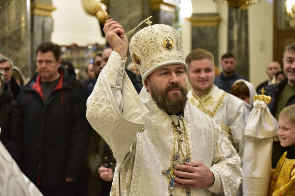 После причащения прихожан Святыми Христовыми Тайнами, Владыка Иларион обратился к молящимся с архипастырским словом, рассказав о духовном значении Крещения Господа для всего человечества.