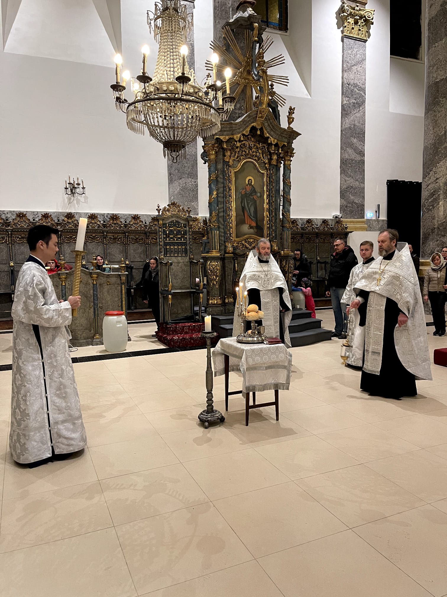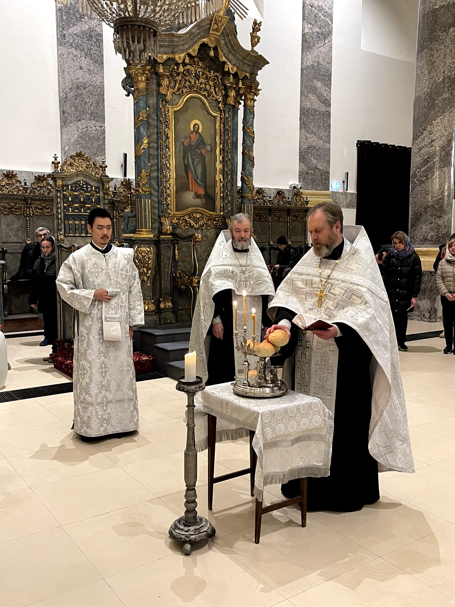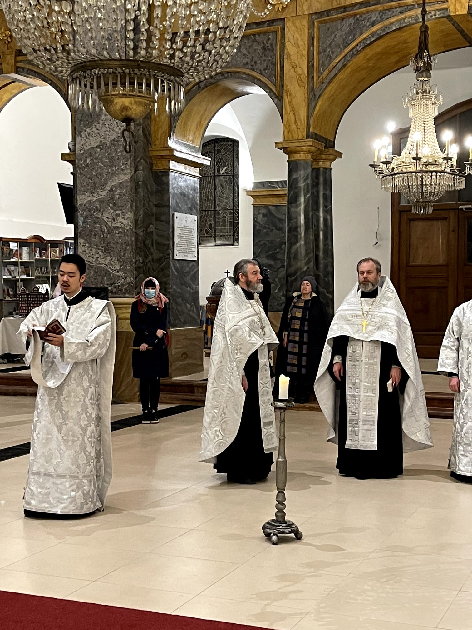 Вечером 18 января 2023 года, в канун великого двунадесятого торжества Крещения Господа Бога и Спаса нашего Иисуса Христа, в Свято-Троицком приходе Успенского кафедрального собора г. Будапешта состоялось праздничное всенощное бдение, которое возглавил настоятель прихода иерей Димитрий Корнилов.