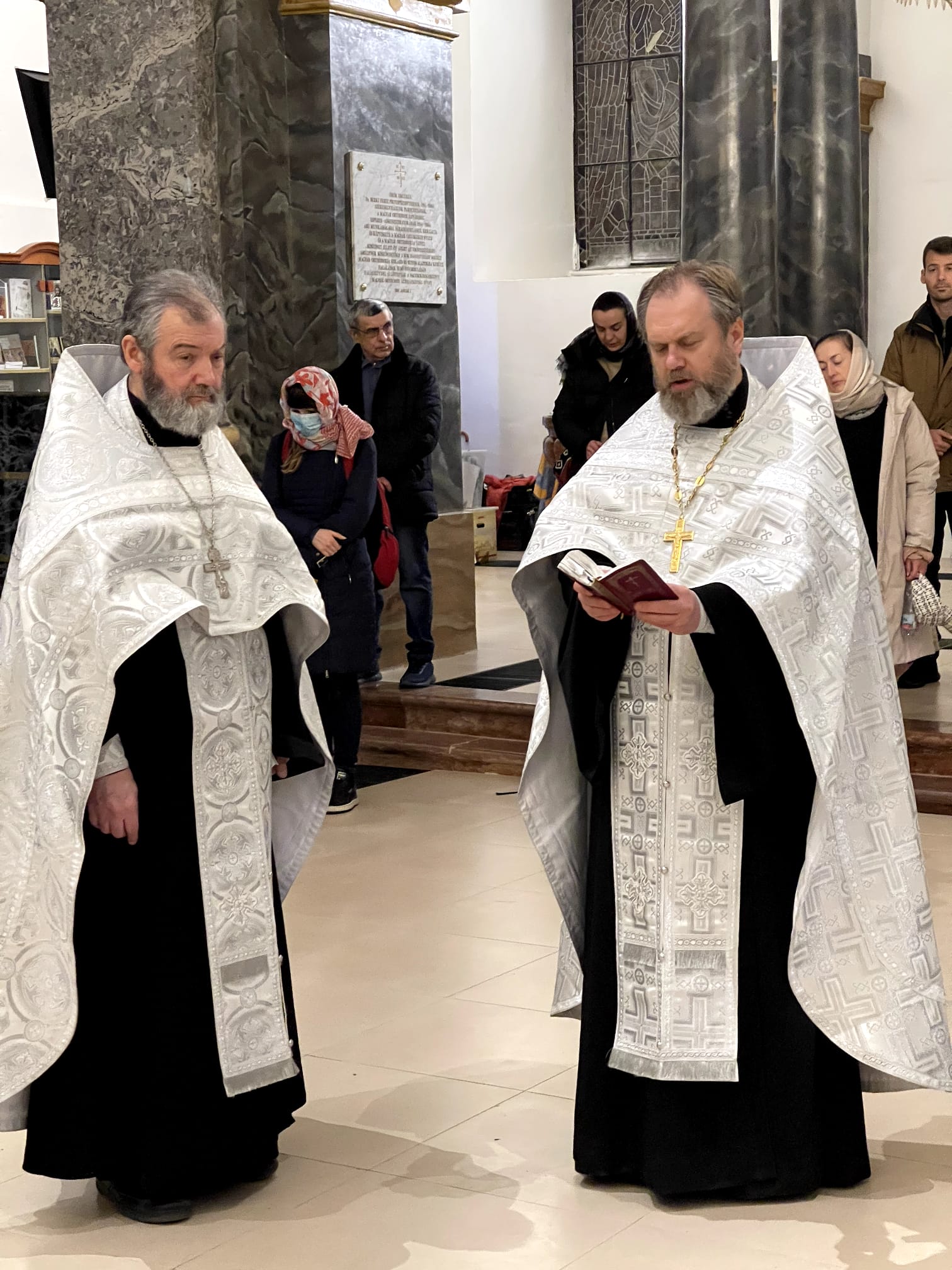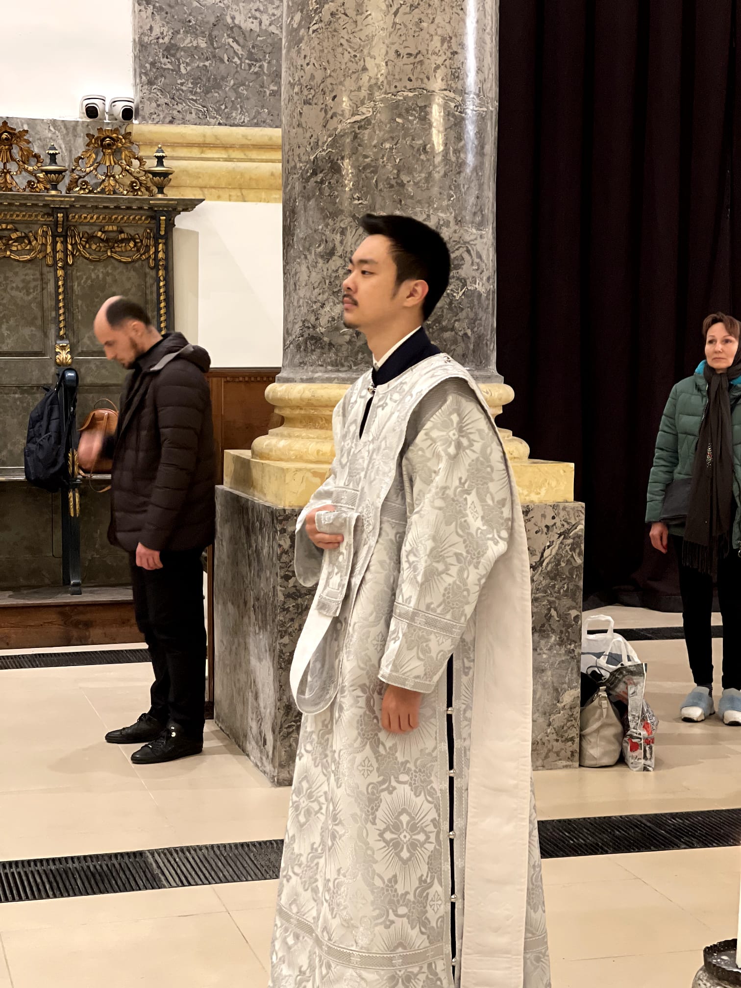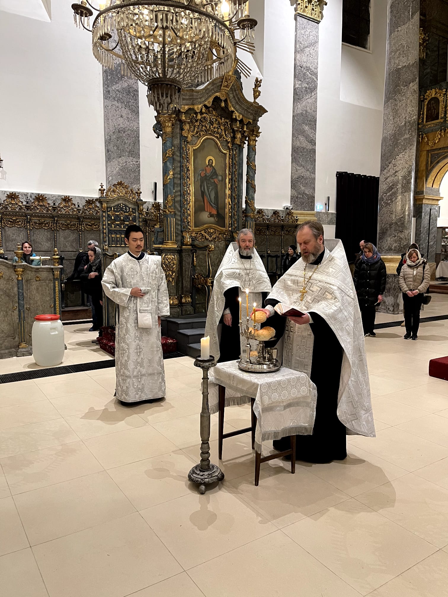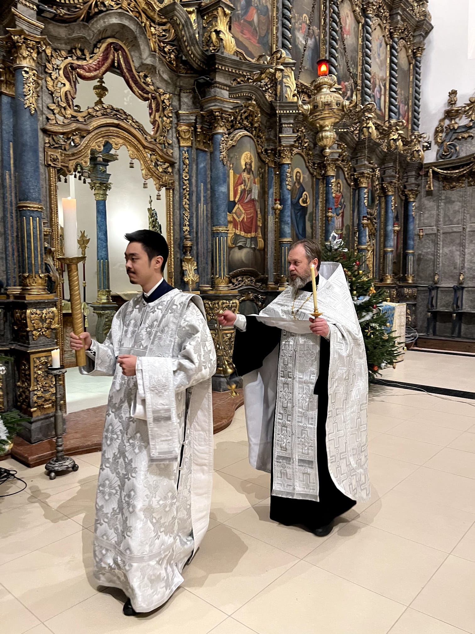 Ему сослужил священник прихода Святослав Булах и архиерейский диакон Вячеслав Ли.