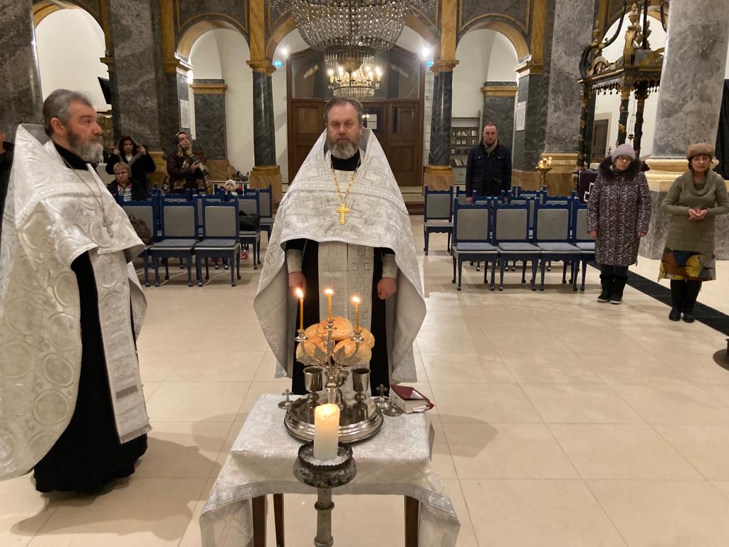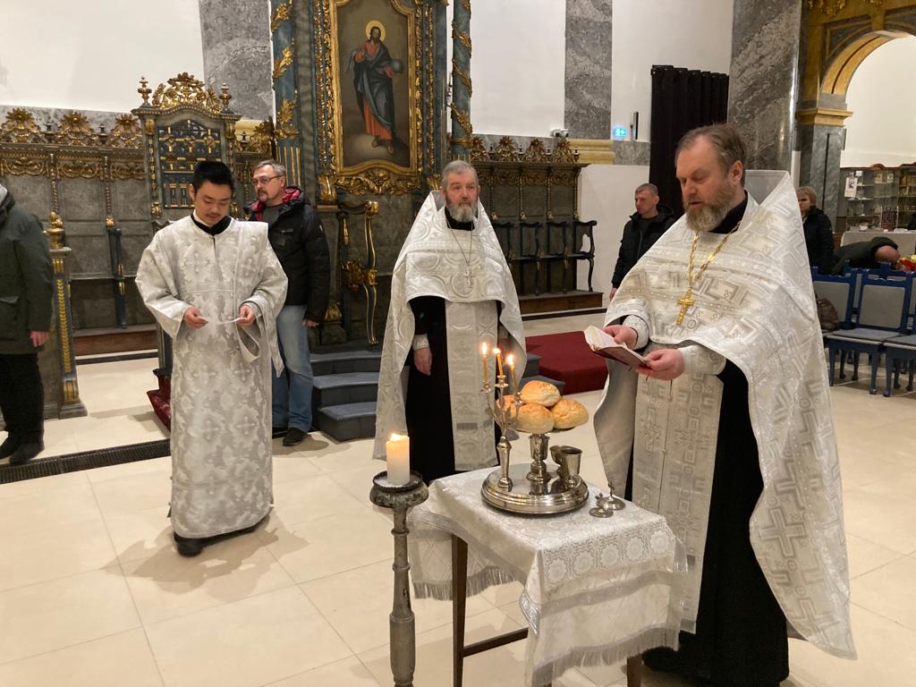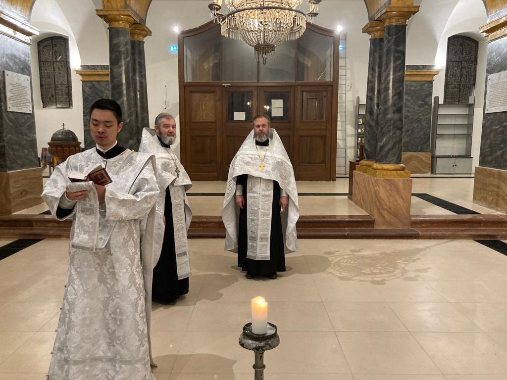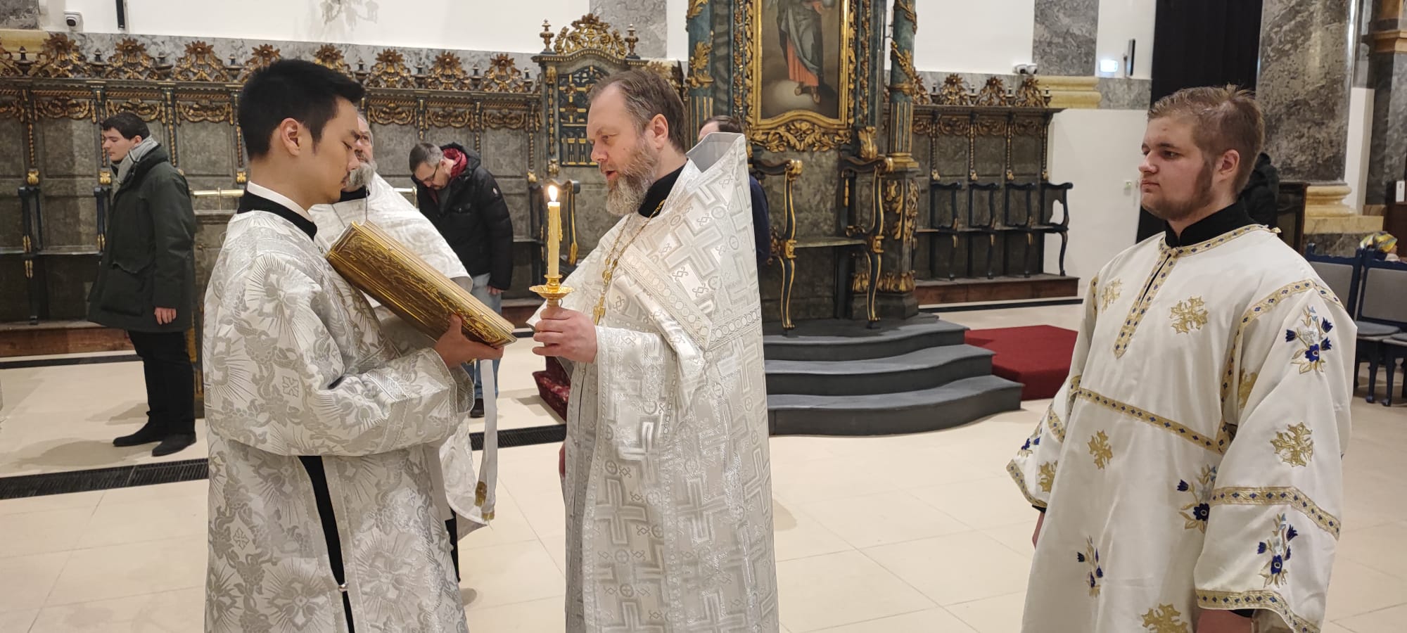 Вечером 14 февраля 2023 года, в канун праздника Сретения Господа Бога и Спаса нашего Иисуса Христа, в Свято-Троицком приходе г. Будапешта состоялось торжественное всенощное бдение. Его возглавил настоятель прихода иерей Димитрий Корнилов. Ему сослужил священник прихода Святослав Булах и архиерейский диакон собора Вячеслав Ли. Богослужение проходило в Успенском кафедральном соборе.