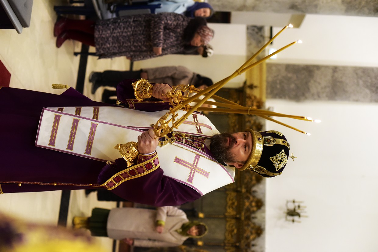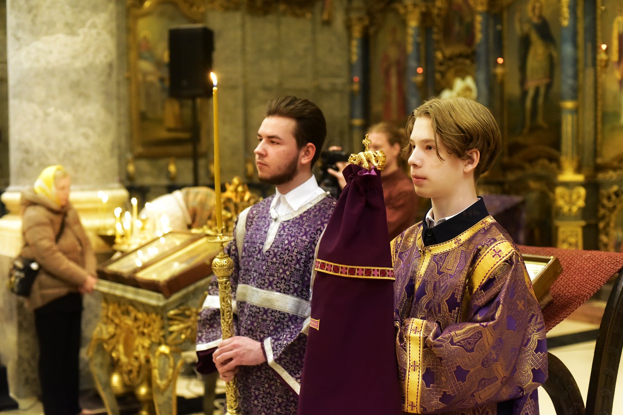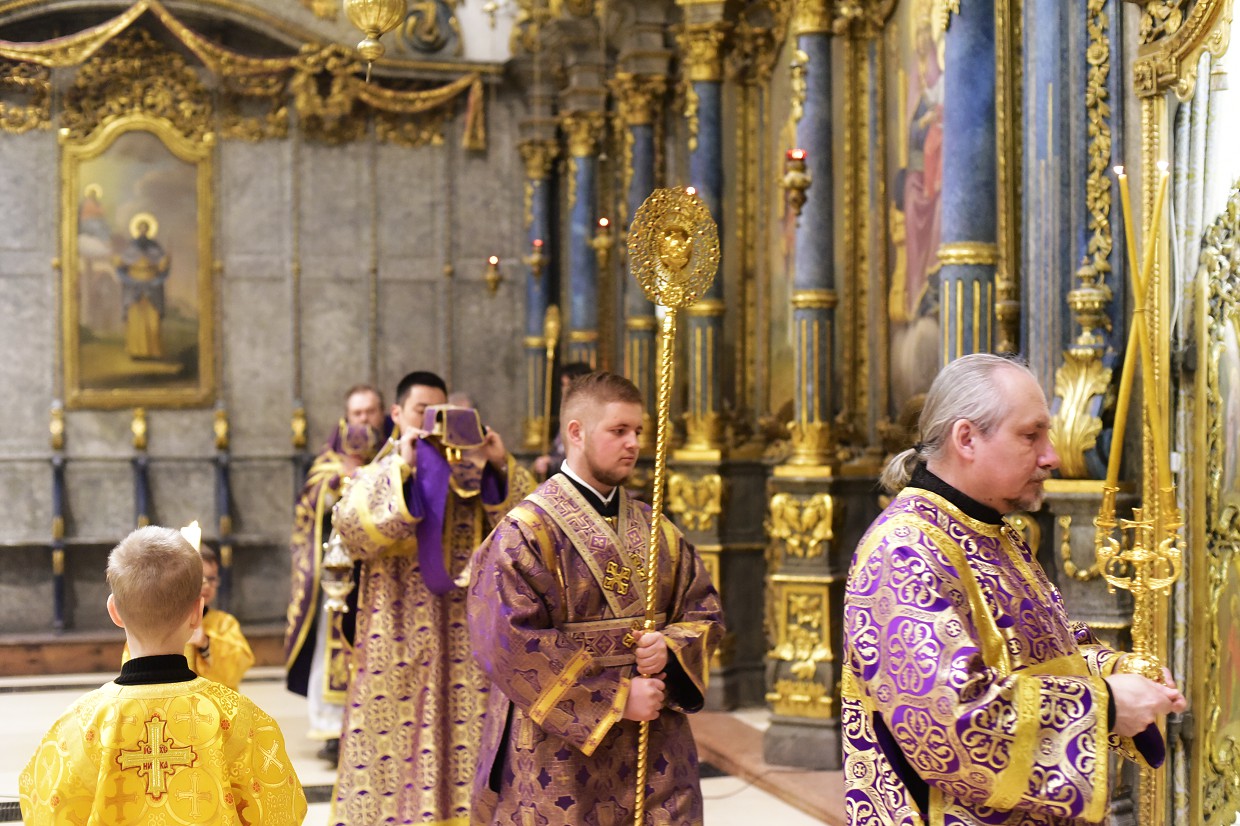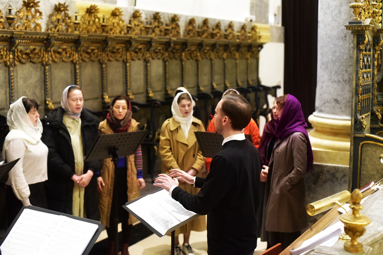 За богослужением пели два хора на двух клиросах — архиерейский хор под управлением Георгия Суркова и хор Троицкого прихода под управлением Евы Гволик.