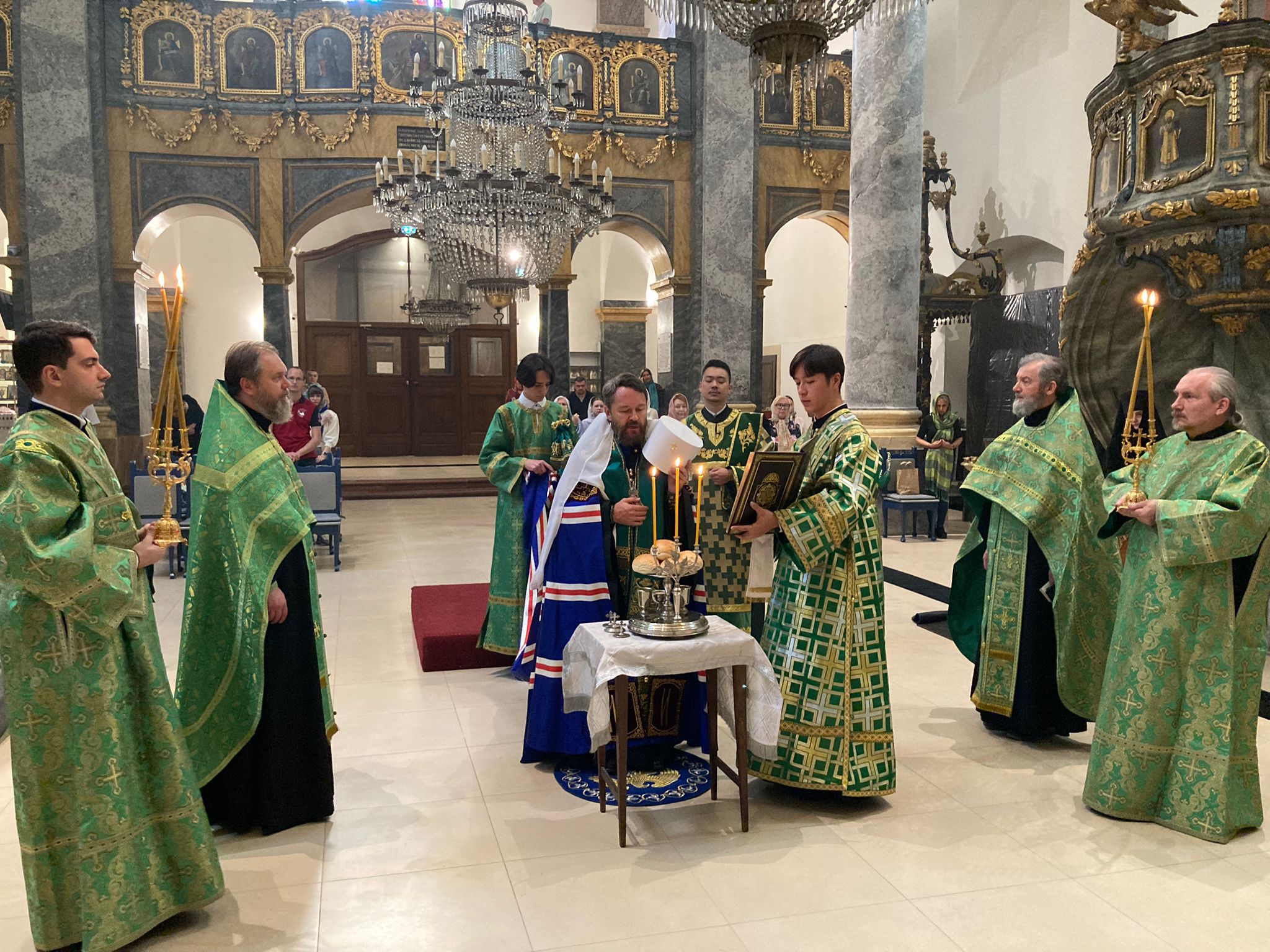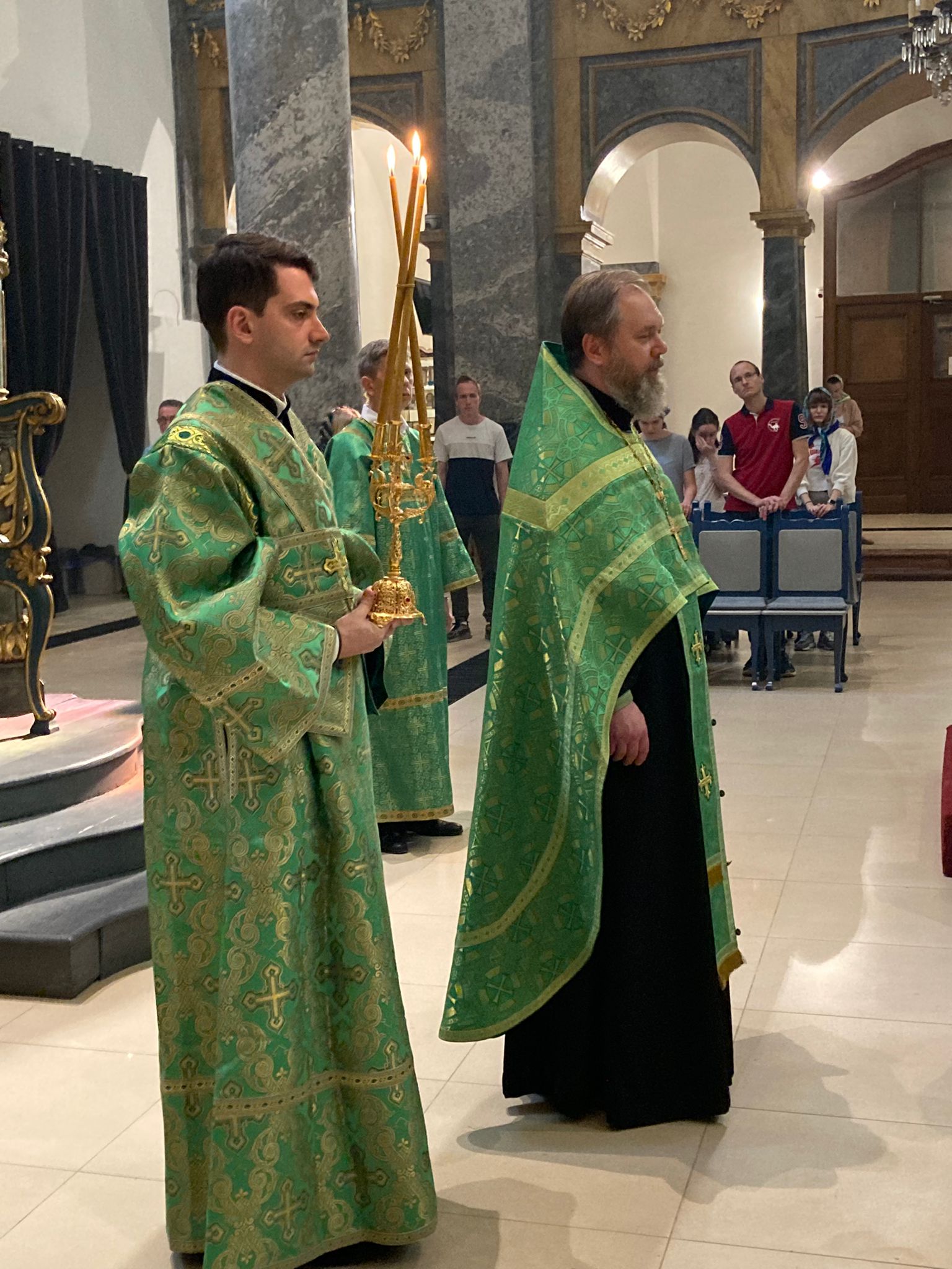Вечером 3 июня 2023 года, в канун Дня Святой Троицы, в Успенском кафедральном соборе состоялось всенощное бдение, которое возглавил правящий архиерей Венгерской епархии митрополит Иларион в сослужении духовенства Свято-Троицкого прихода: настоятеля прихода иерея Димитрия Корнилова, священника прихода Святослава Булаха.