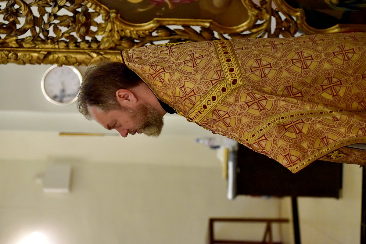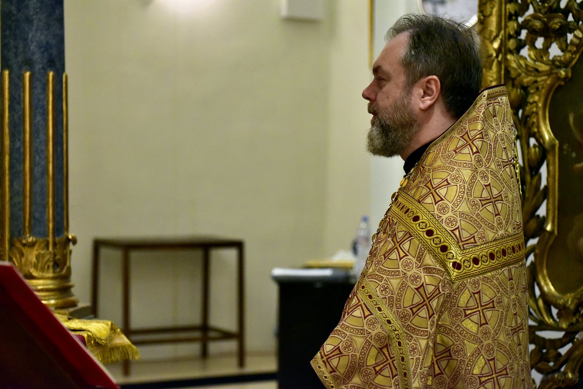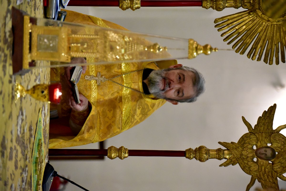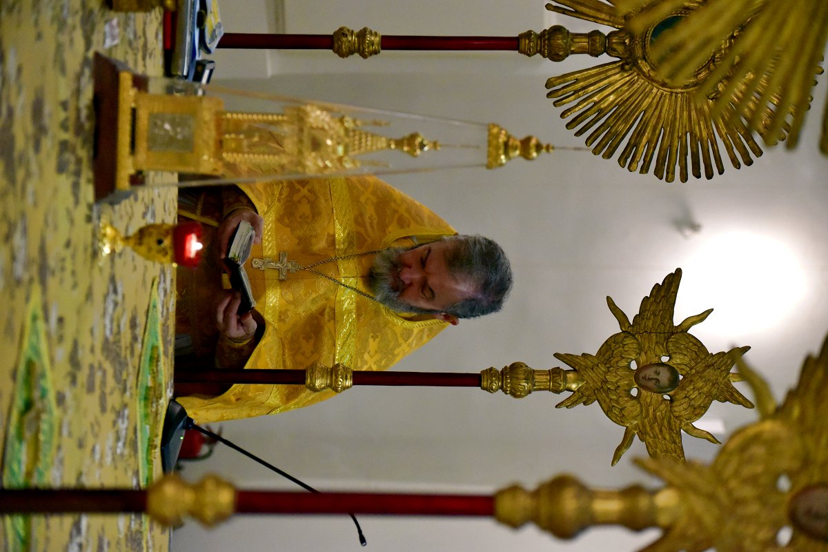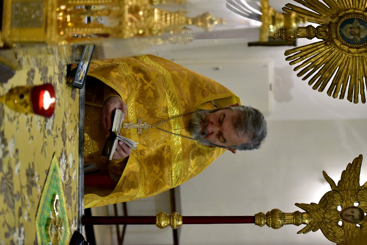 В прозвучавшем отрывке из послания к Евреям, были упомянуты все ветхозаветные праведники, исчисляя подвиги которых, апостол Павел назвал их «облаком свидетелей». Евангельское чтение, прочитанное иереем Димитрием, поведало необходимости подъятия подвигов – признаков святости, – на которые указывает Господь, когда обличает всех следующих Ему, но не берущих своего креста. По прочтении Священного Писания прозвучала сугубая ектения, после которой предстоятель вознес молитву о мире на Украине.