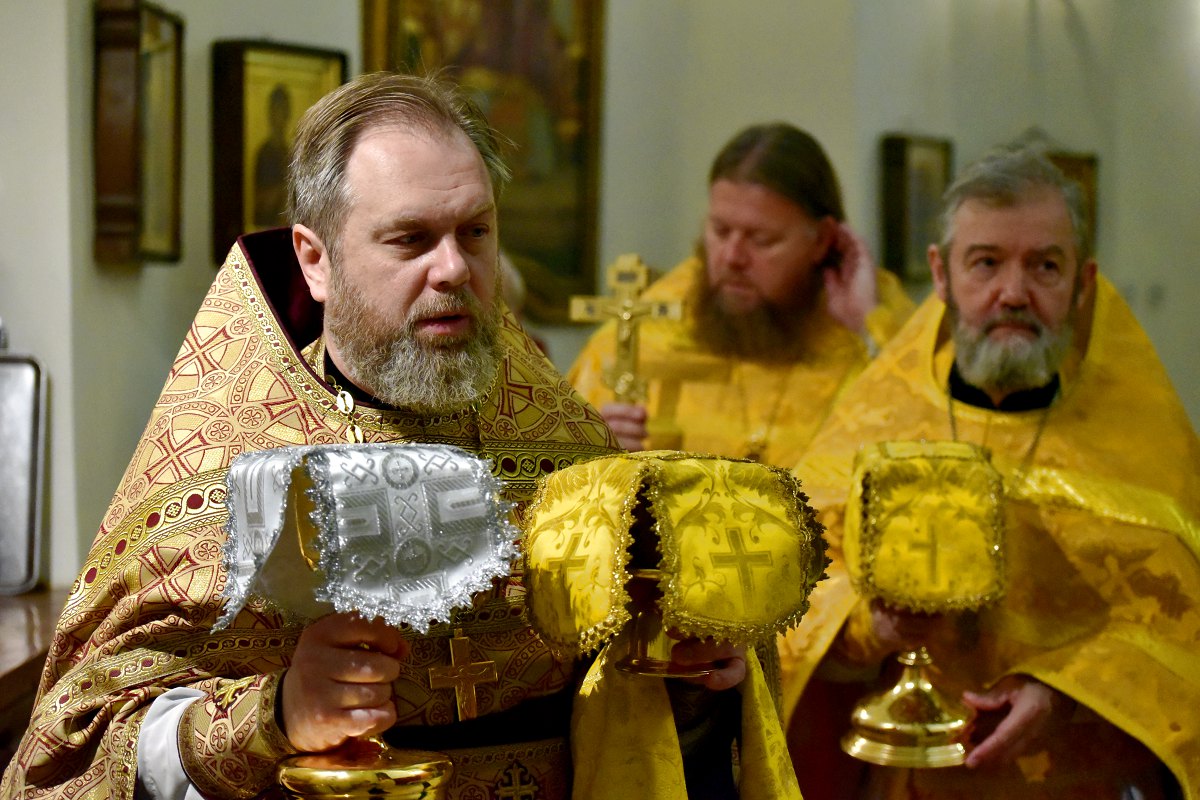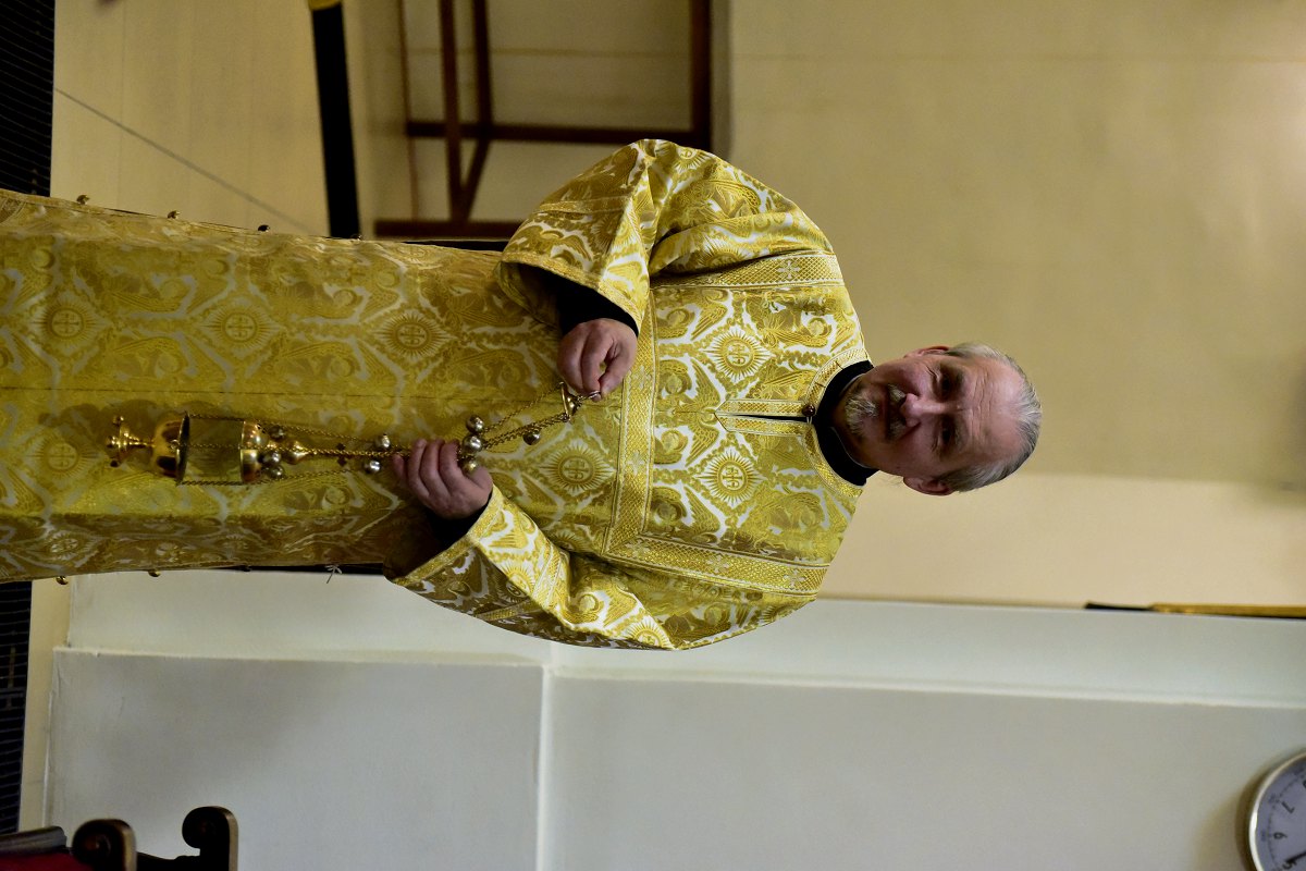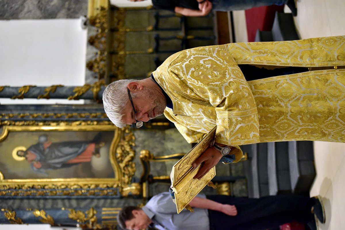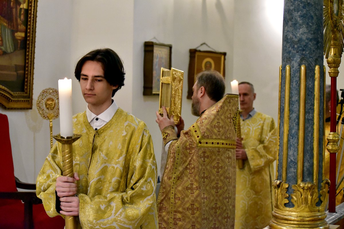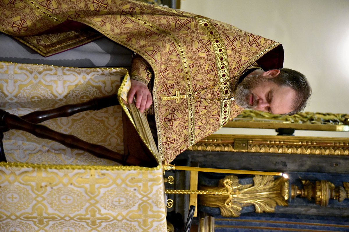 В прозвучавшем отрывке из послания к Евреям, были упомянуты все ветхозаветные праведники, исчисляя подвиги которых, апостол Павел назвал их «облаком свидетелей». Евангельское чтение, прочитанное иереем Димитрием, поведало необходимости подъятия подвигов – признаков святости, – на которые указывает Господь, когда обличает всех следующих Ему, но не берущих своего креста. По прочтении Священного Писания прозвучала сугубая ектения, после которой предстоятель вознес молитву о мире на Украине.