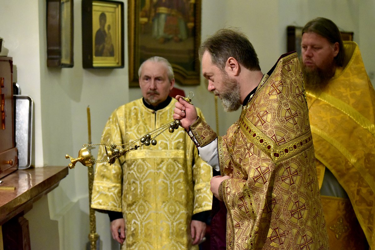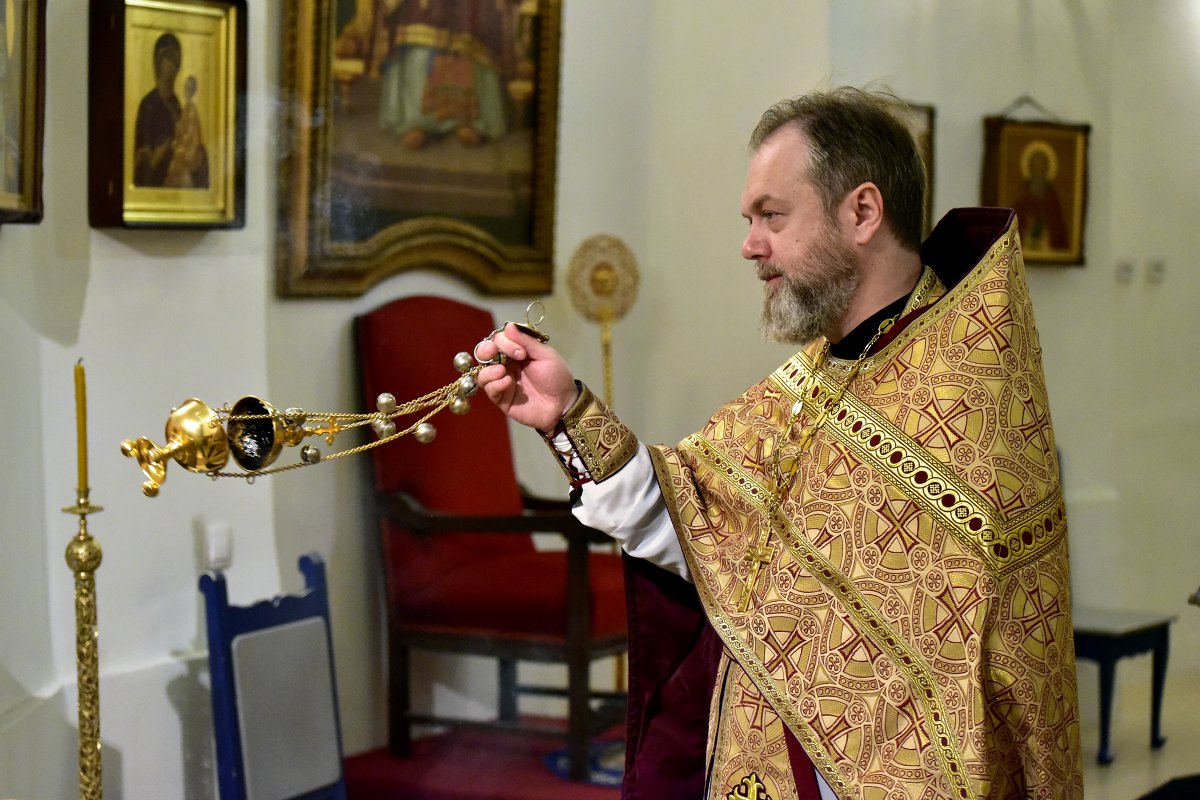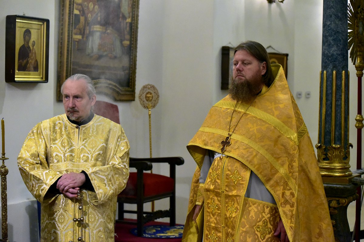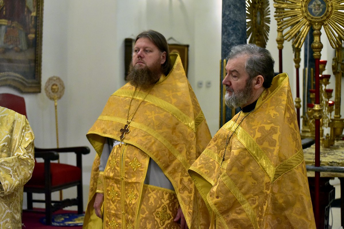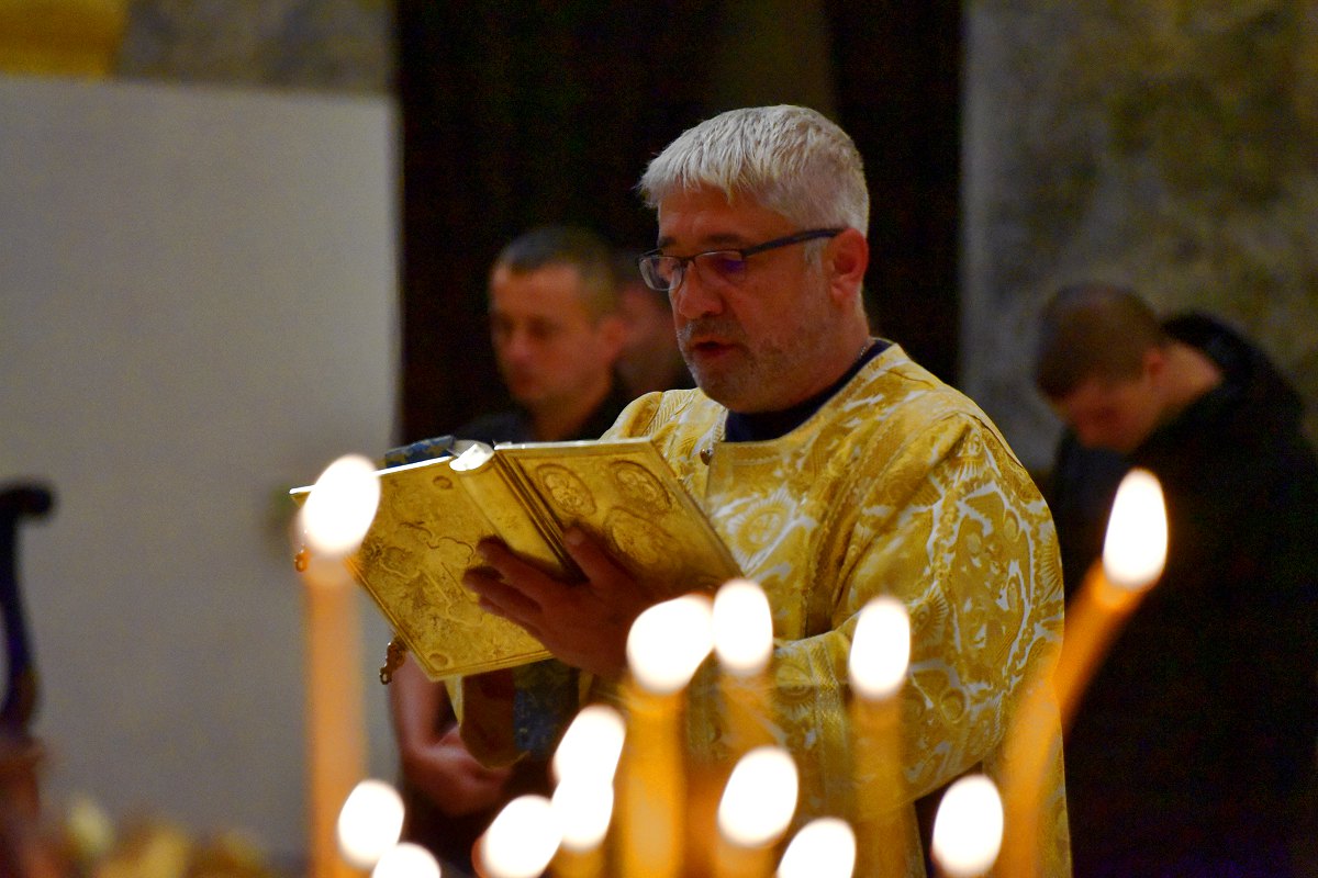 В прозвучавшем отрывке из послания к Евреям, были упомянуты все ветхозаветные праведники, исчисляя подвиги которых, апостол Павел назвал их «облаком свидетелей». Евангельское чтение, прочитанное иереем Димитрием, поведало необходимости подъятия подвигов – признаков святости, – на которые указывает Господь, когда обличает всех следующих Ему, но не берущих своего креста. По прочтении Священного Писания прозвучала сугубая ектения, после которой предстоятель вознес молитву о мире на Украине.