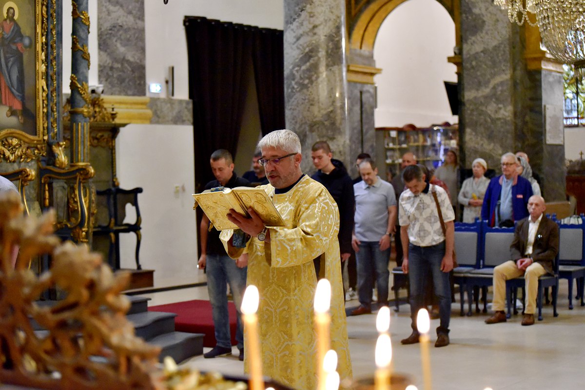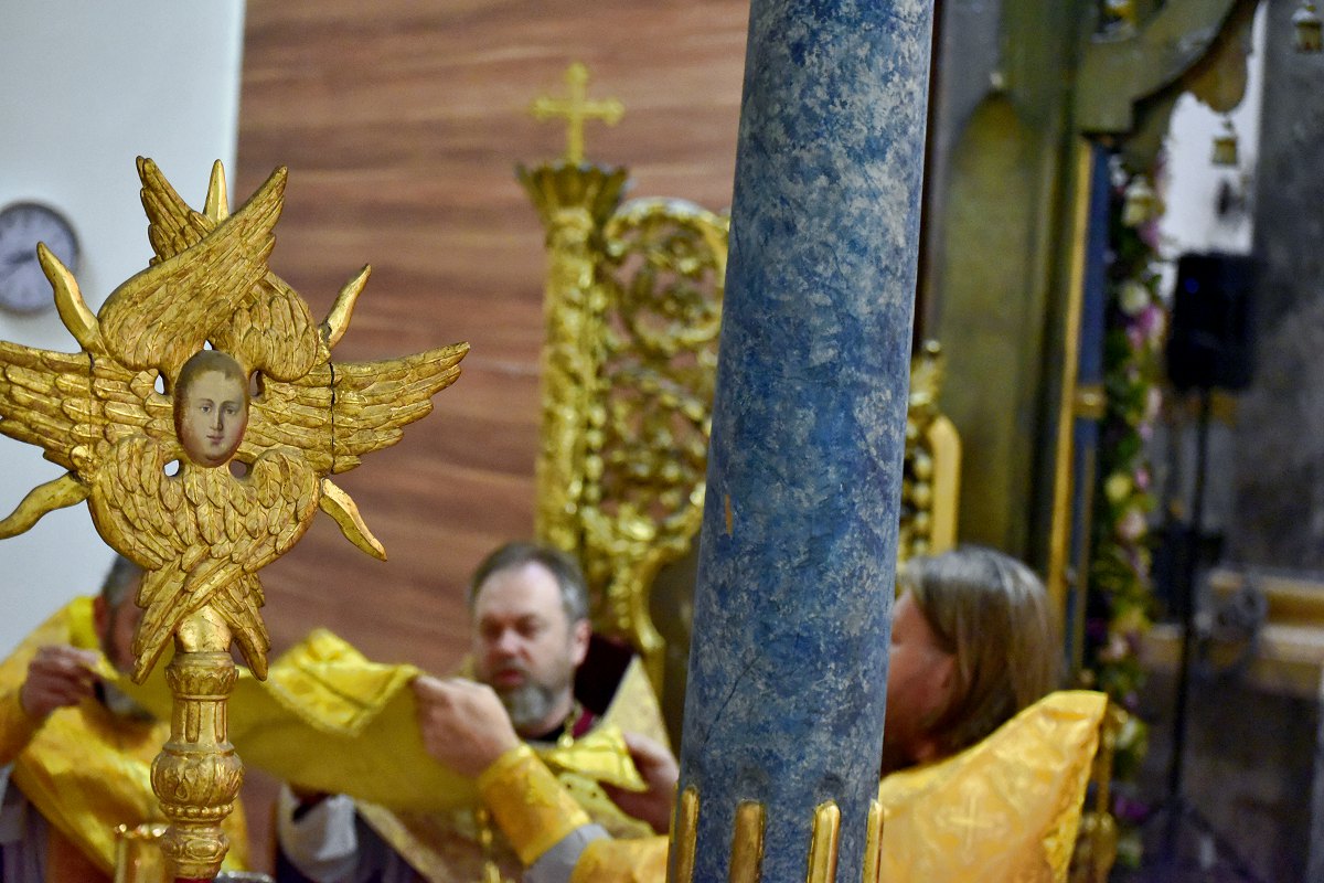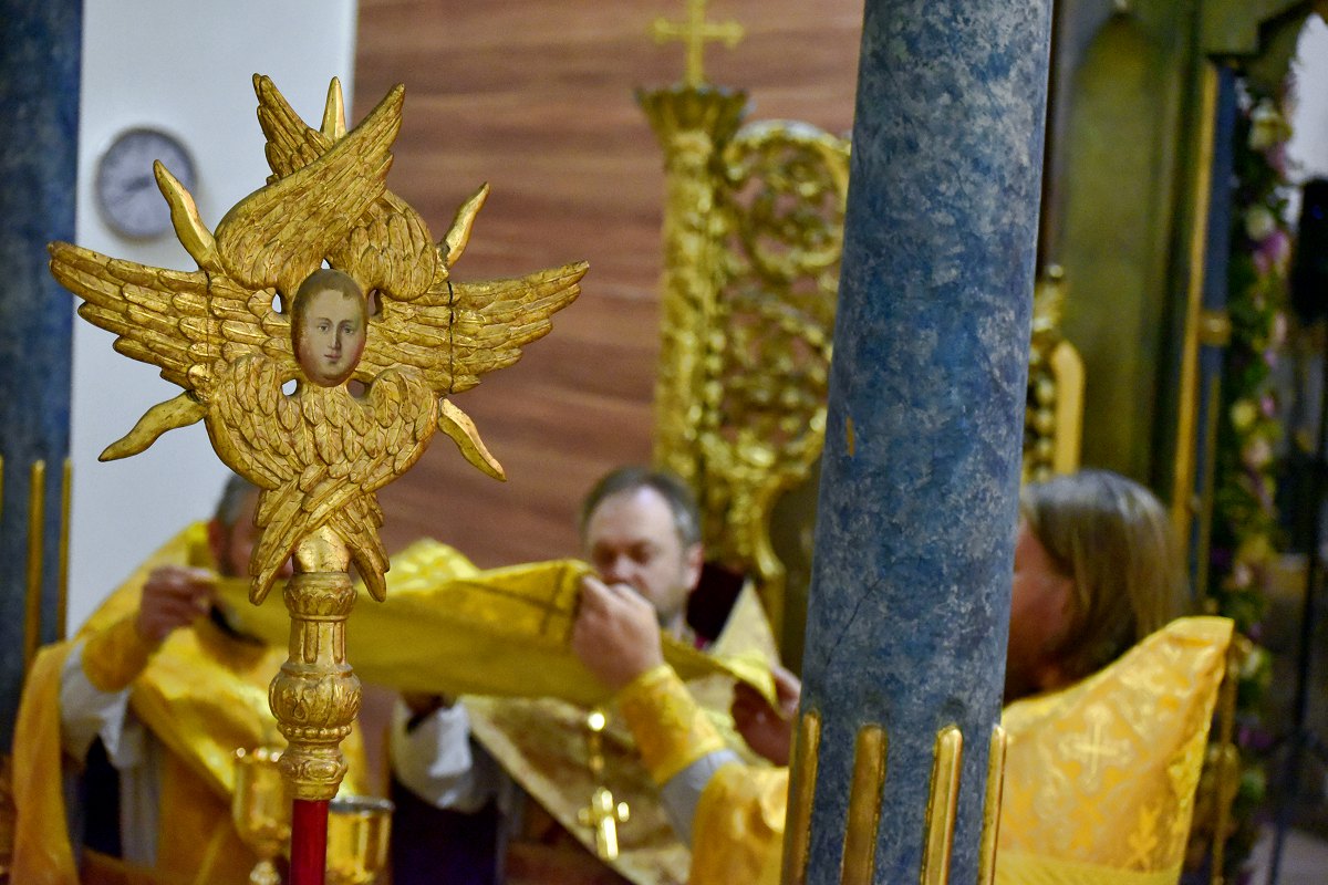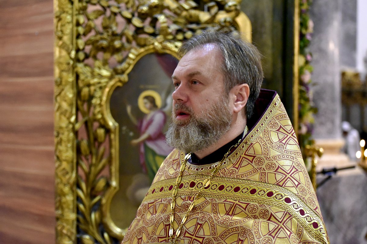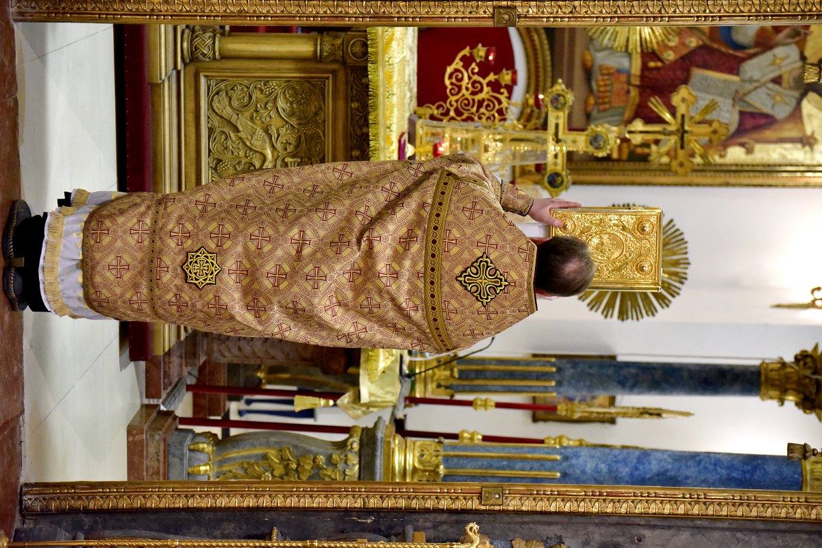 В прозвучавшем отрывке из послания к Евреям, были упомянуты все ветхозаветные праведники, исчисляя подвиги которых, апостол Павел назвал их «облаком свидетелей». Евангельское чтение, прочитанное иереем Димитрием, поведало необходимости подъятия подвигов – признаков святости, – на которые указывает Господь, когда обличает всех следующих Ему, но не берущих своего креста. По прочтении Священного Писания прозвучала сугубая ектения, после которой предстоятель вознес молитву о мире на Украине.