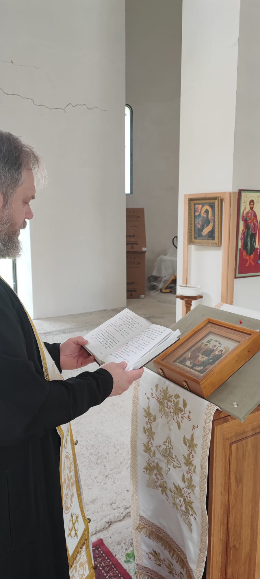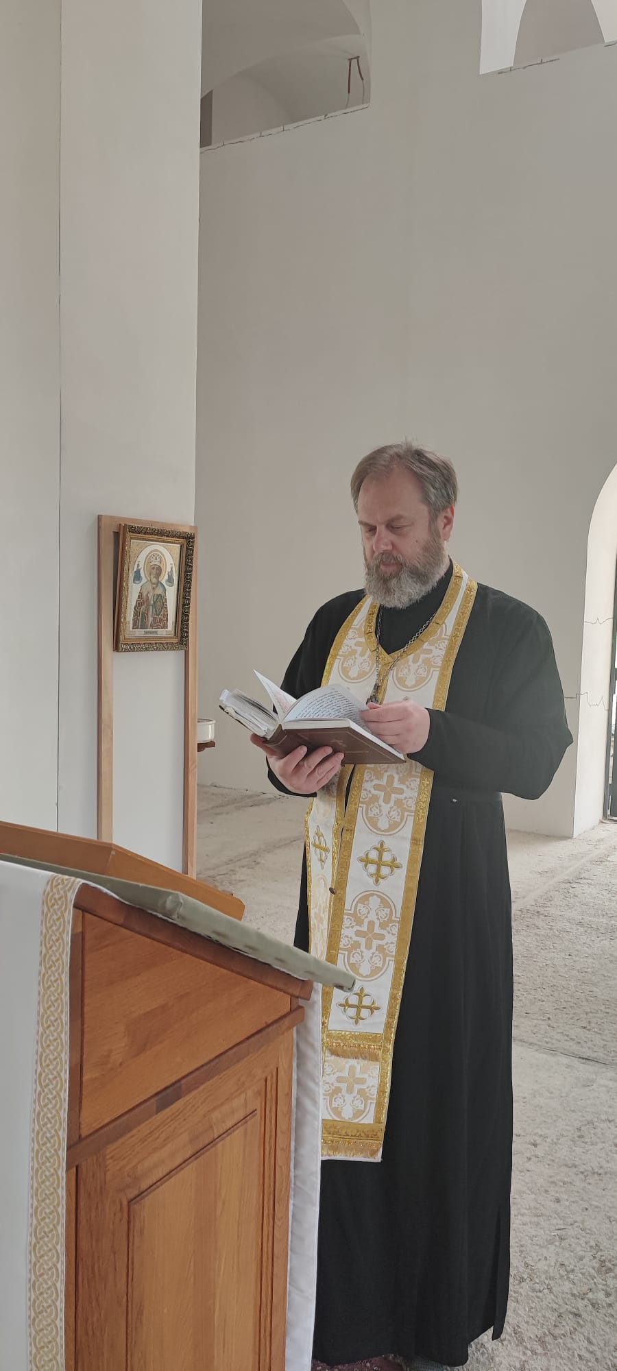 6 июля 2023 года в день Владимирской иконы Божией Матери в стенах строящегося храма в г. Хевизе настоятель Свято-Троицкого прихода Будапешта иерей Димитрий Корнилов совершил молебен о скорейшем и успешном завершении строительства.