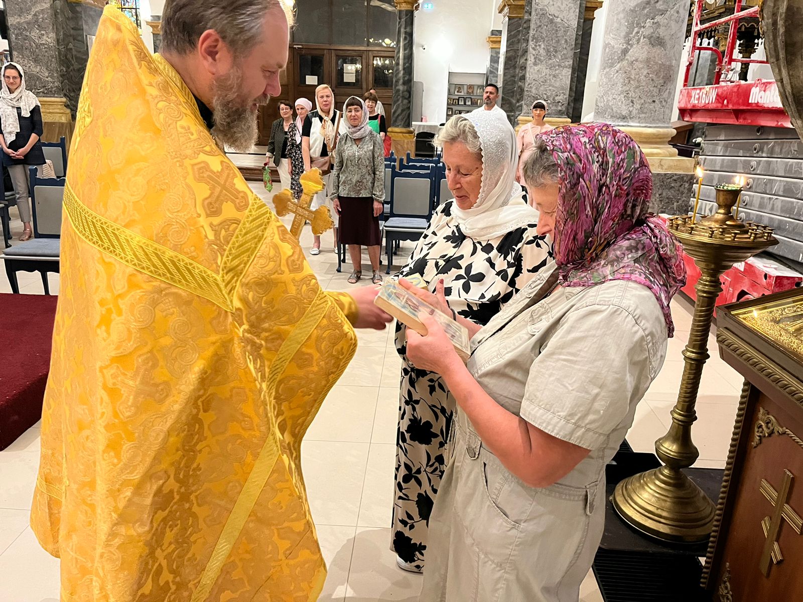 29 и 30 сентября 2023 года в Свято-Троицком приходе г. Будапешта состоялся благодарственный молебен и Божественная литургия, по окончании которых настоятель Свято-Троицкого прихода иерей Димитрий Корнилов тепло поздравил наших прихожан Веру, Людмилу, Надежду с их именинами. От нашего прихода им был вручен ценный подарок, а под сводами Успенского собора было пропето многолетие.