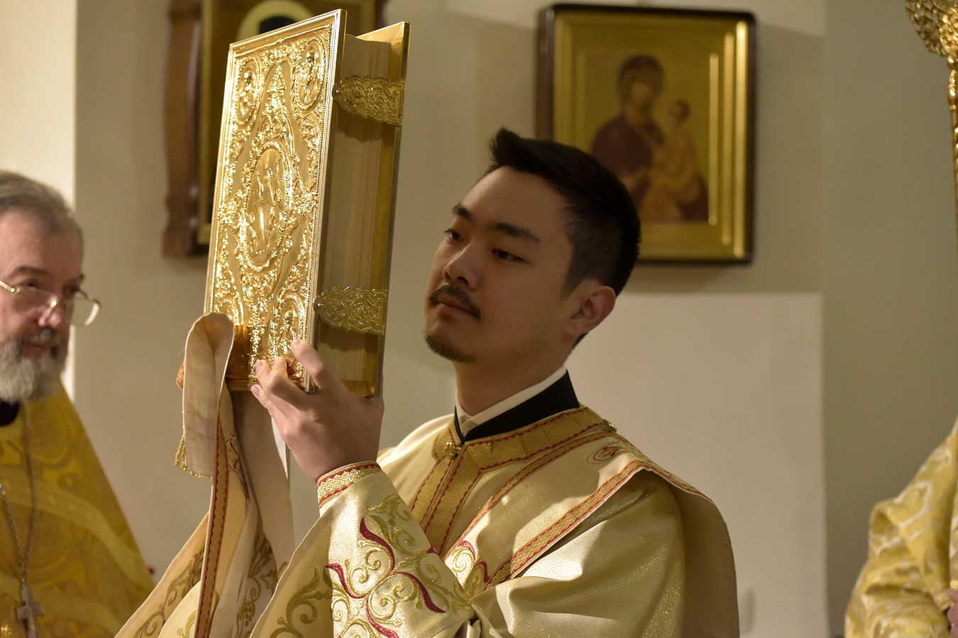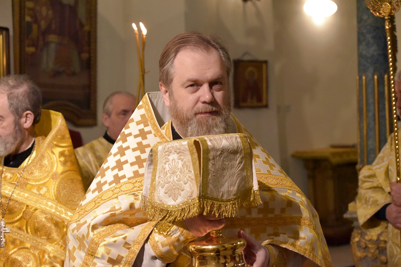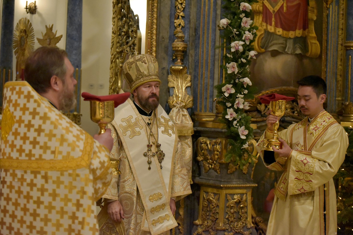 Ему сослужил настоятель Свято-Троицкого прихода иерей Димитрий Корнилов, клирик Свято-Троицкого прихода иерей Святослав Булах и архиерейский диакон Вячеслав Ли.