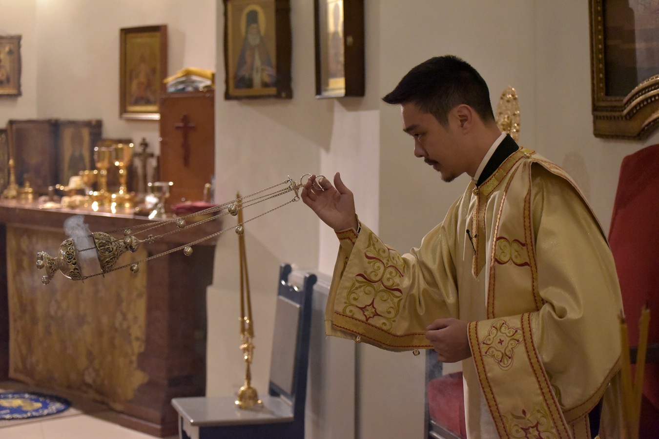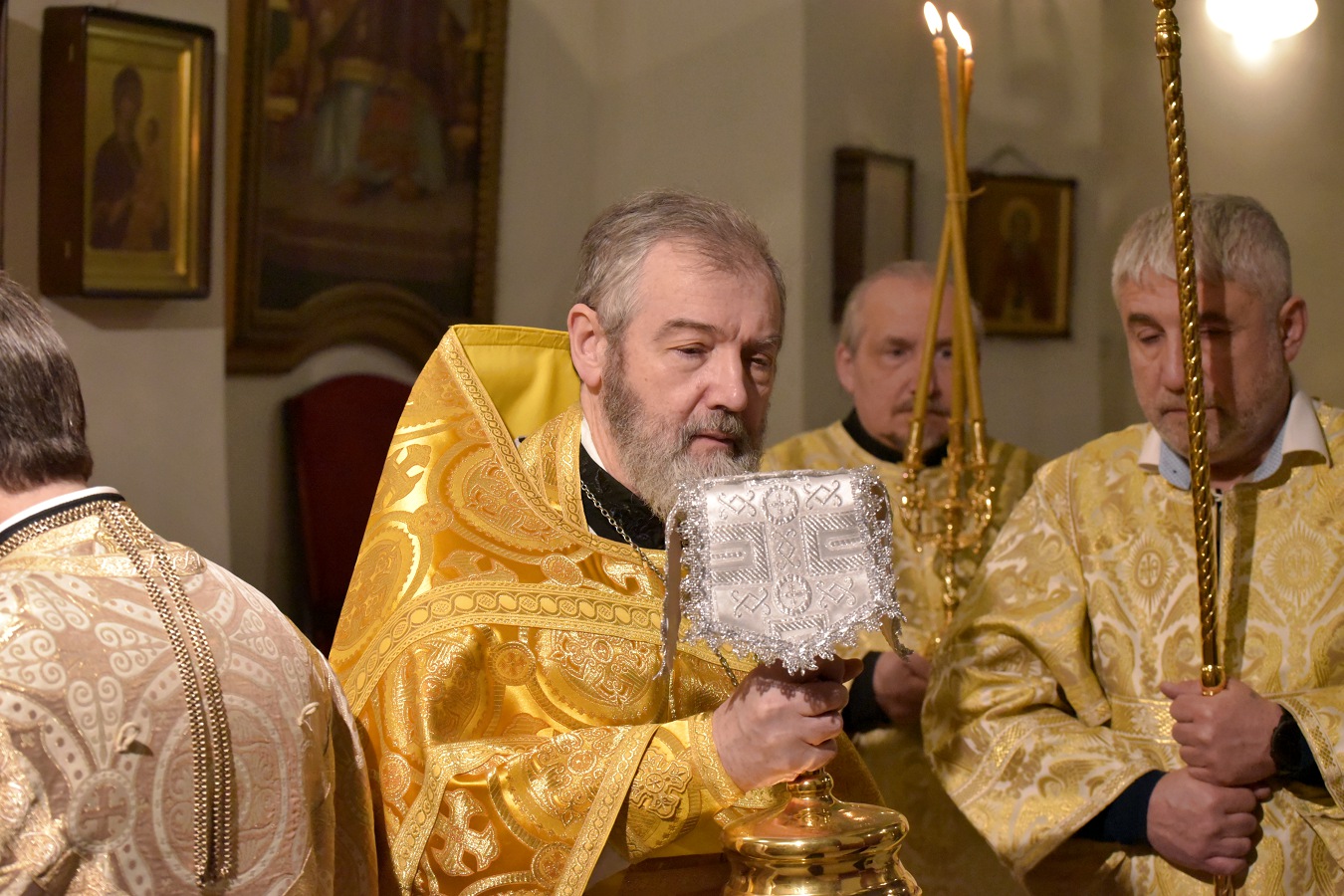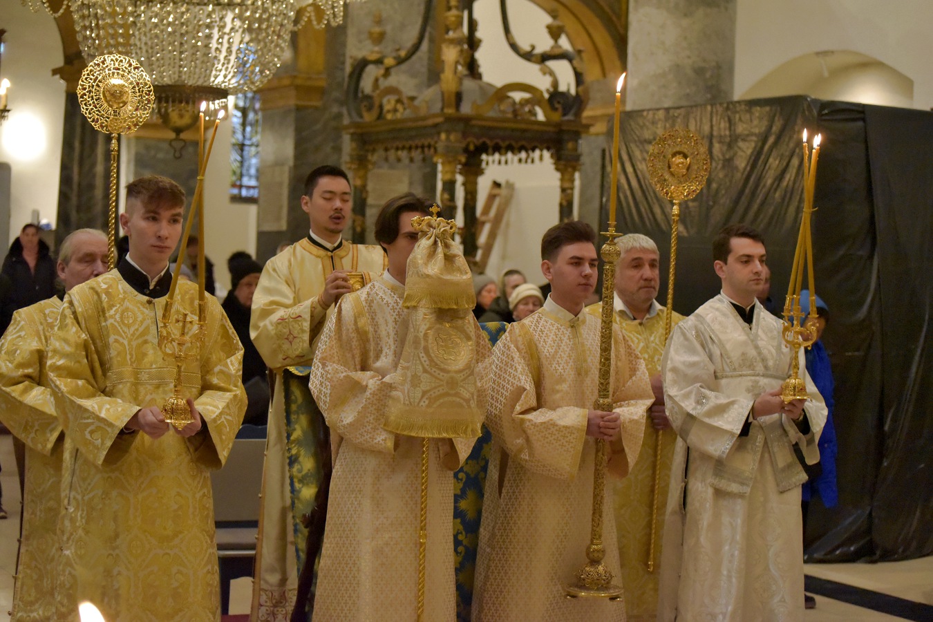 Ему сослужил настоятель Свято-Троицкого прихода иерей Димитрий Корнилов, клирик Свято-Троицкого прихода иерей Святослав Булах и архиерейский диакон Вячеслав Ли.