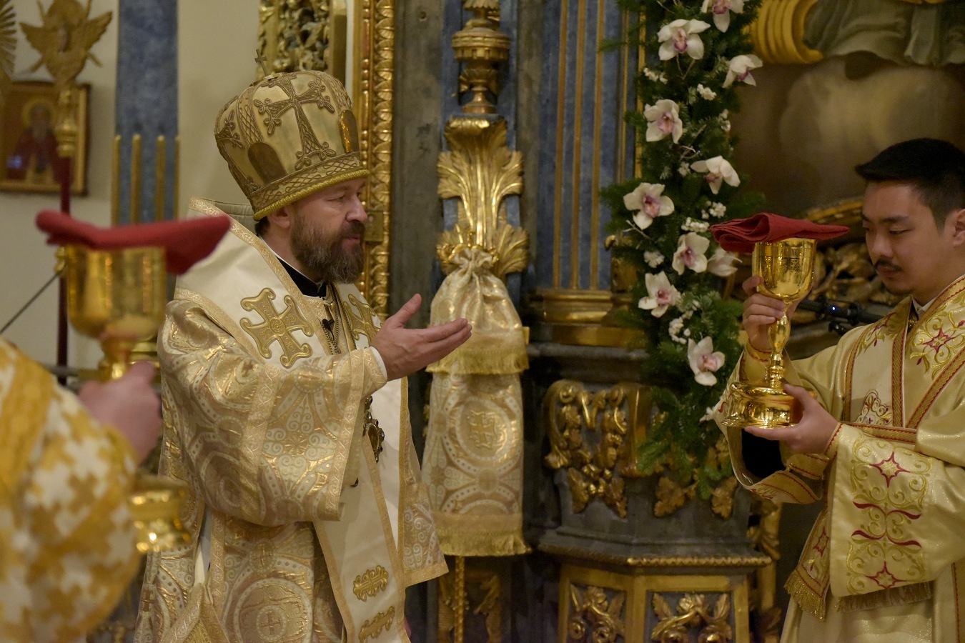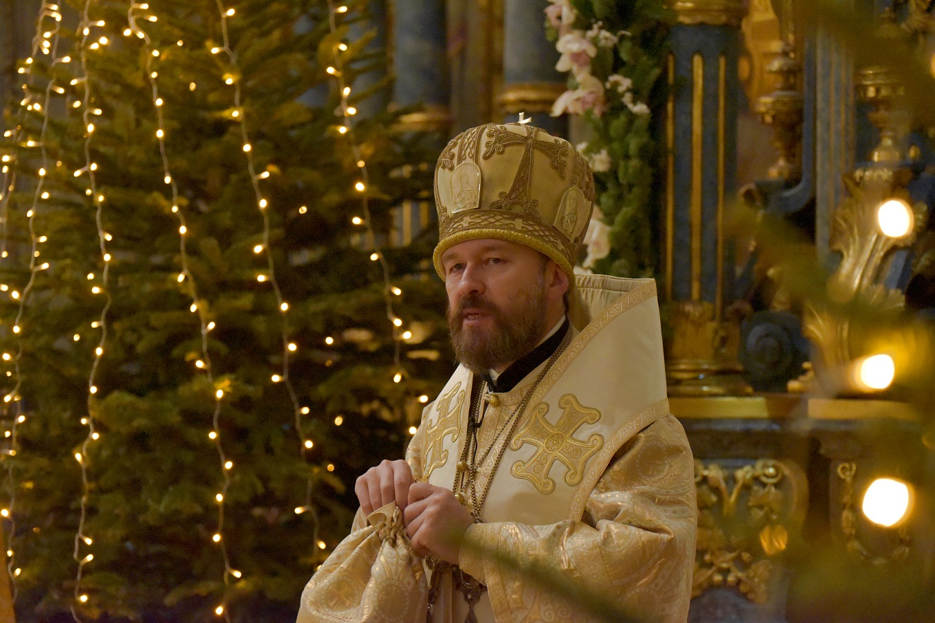 Перед выносом Святых Даров митрополит Иларион обратился к молящимся с архипастырским словом, раскрыв содержание Евангельского чтения Божественной литургии.