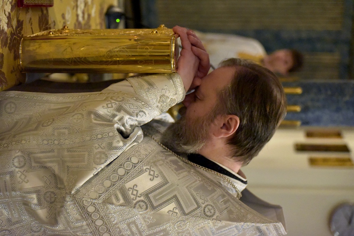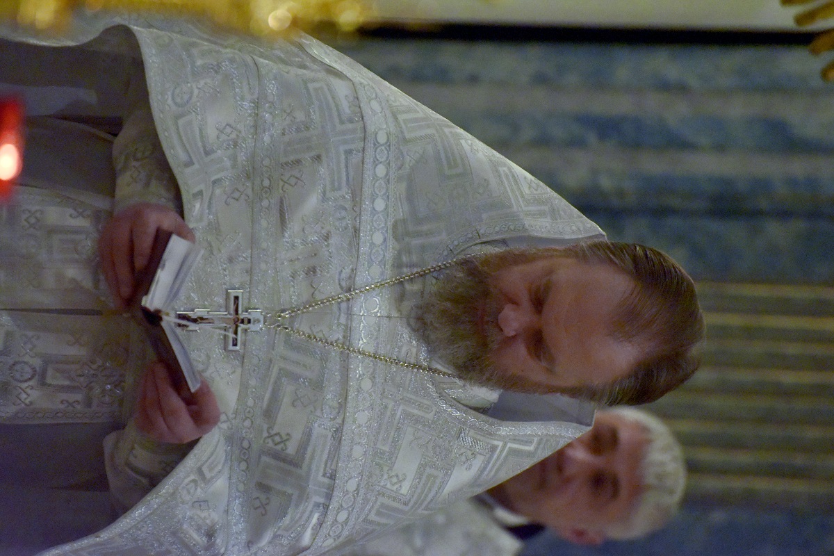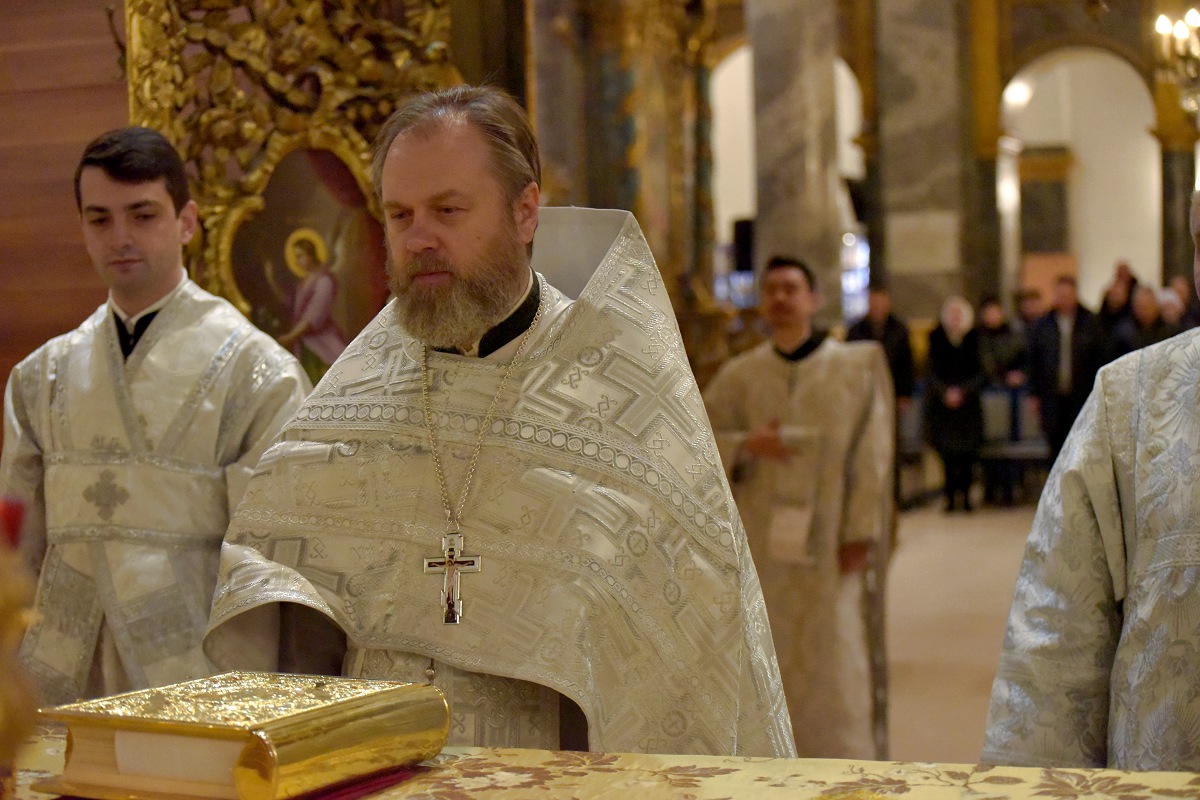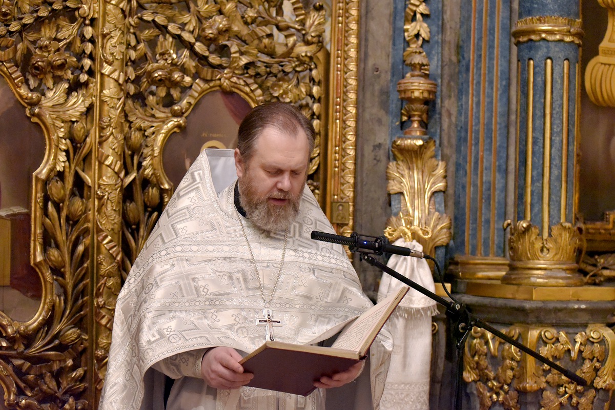 В читаемом диаконом Вячеславом Евангелии от Матфея говорилось о начале общественного служения Господа Иисуса Христа в Галилее и духовно-нравственном состоянии жителей этой страны, как народа, сидящего во тьме. Первыми словами Спасителя к народу стал призыв к покаянию. Ради искренности, глубины и силы этого призыва Господь указал на вожделенную цель, ради которой следует приносить покаяние, обновляться сердцем и возрождаться духом – Царство Небесное.