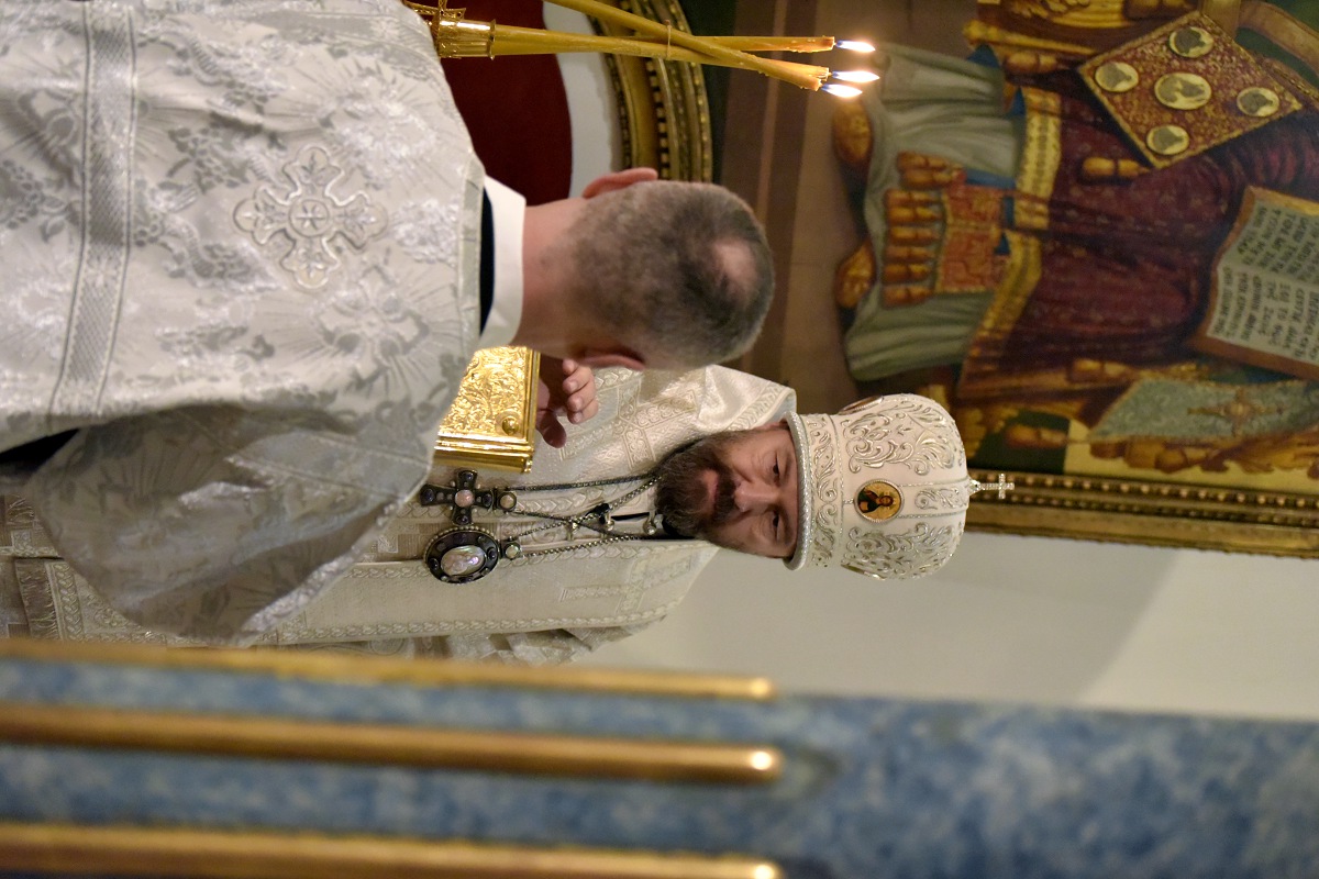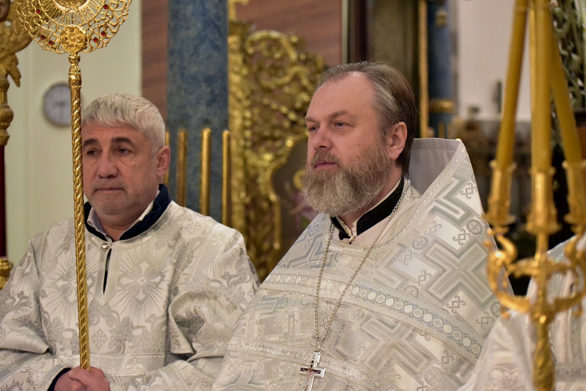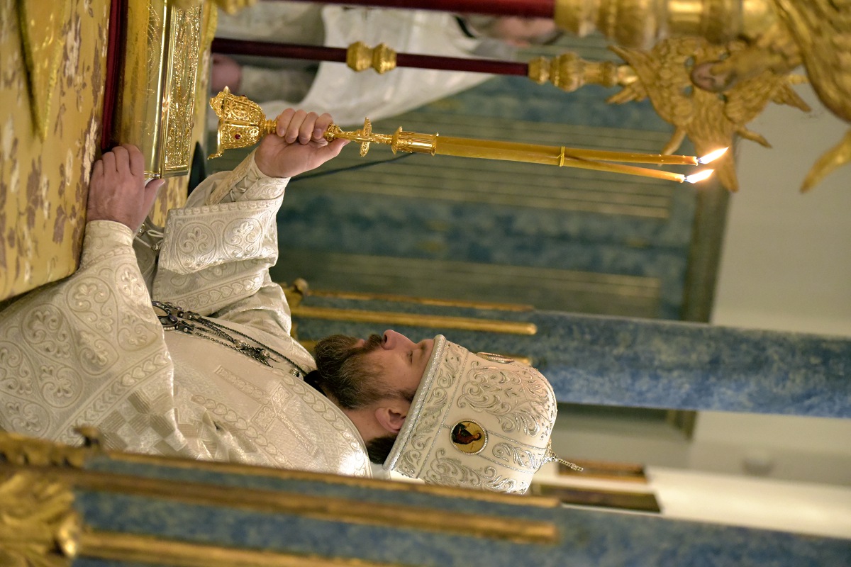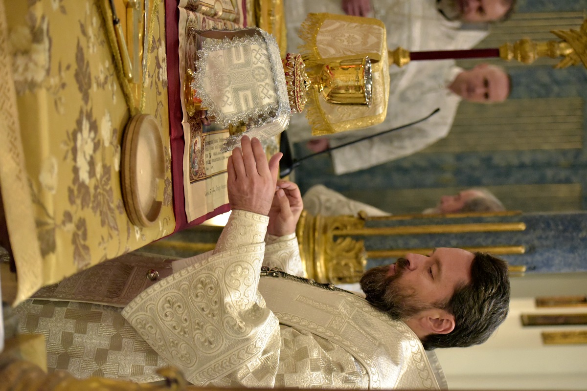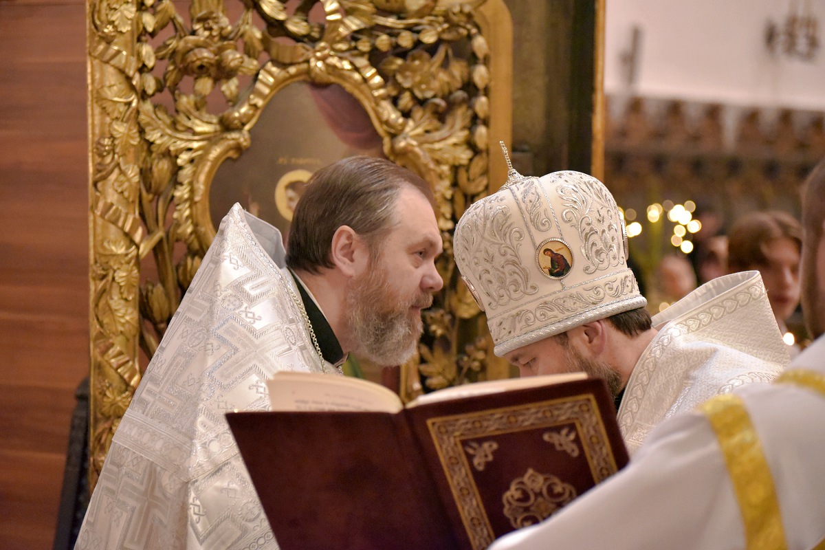 В ходе богослужения было прочитано апостольское послание к Ефесянам, в котором святой Павел увещевает своих братьев по вере поступать достойно звания, в которое каждый был призван, то есть звания христианского. Первоверховный апостол учит, что каждому из верующих, как отдельному члену в организме, дается особая благодать, особый дар, которым он может и должен служить ближним на общую пользу, что эта разнородность даров не только не мешает единодушию, а наоборот еще более скрепляет единение между христианами.