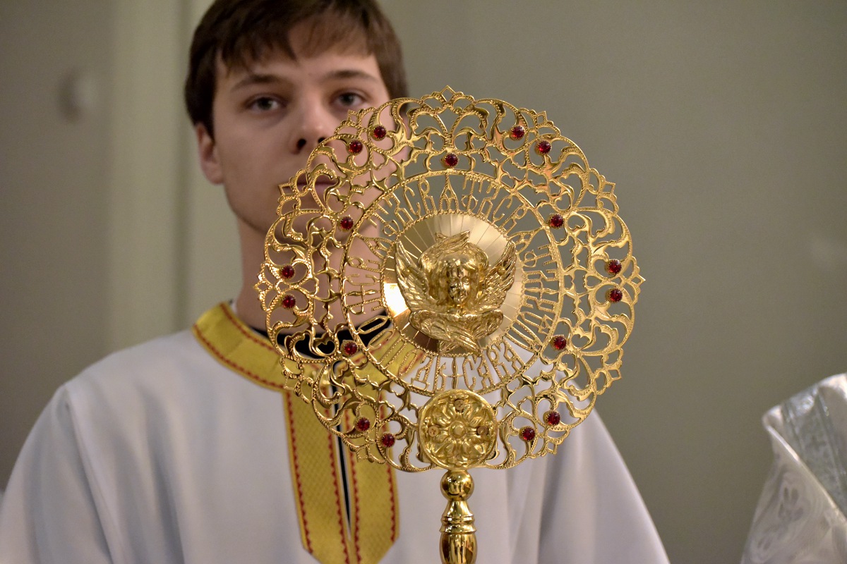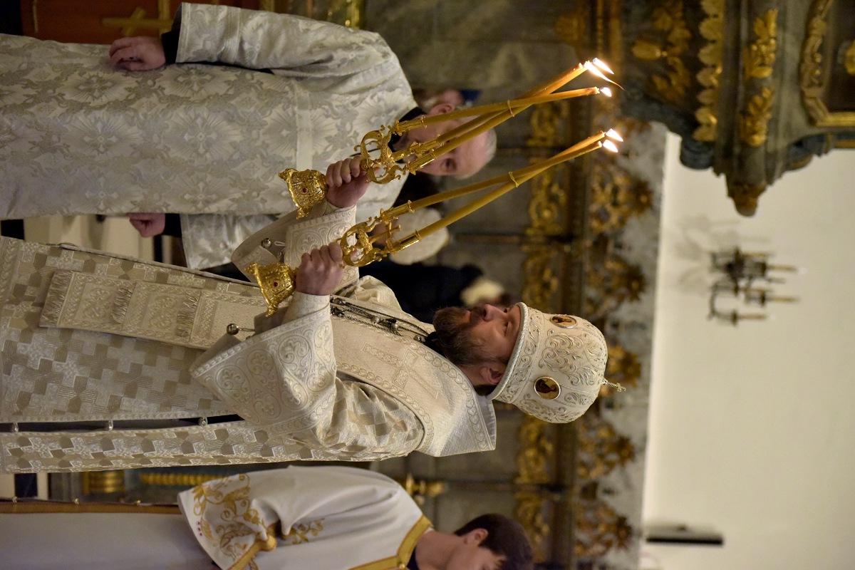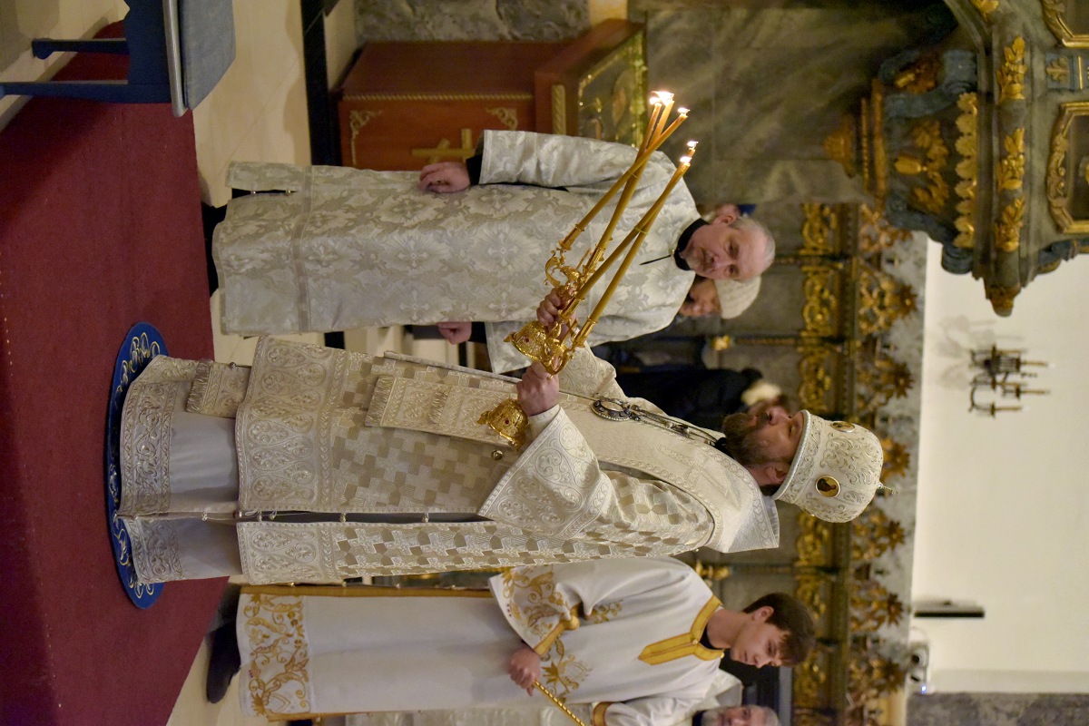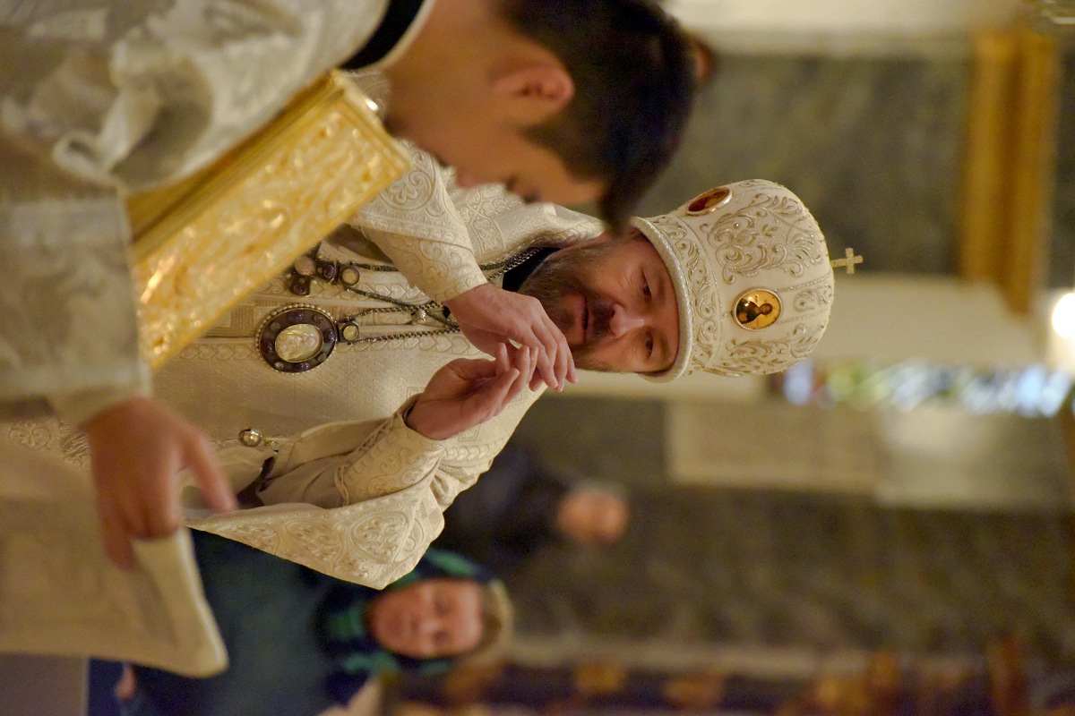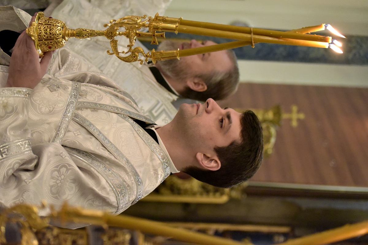 В ходе богослужения было прочитано апостольское послание к Ефесянам, в котором святой Павел увещевает своих братьев по вере поступать достойно звания, в которое каждый был призван, то есть звания христианского. Первоверховный апостол учит, что каждому из верующих, как отдельному члену в организме, дается особая благодать, особый дар, которым он может и должен служить ближним на общую пользу, что эта разнородность даров не только не мешает единодушию, а наоборот еще более скрепляет единение между христианами.