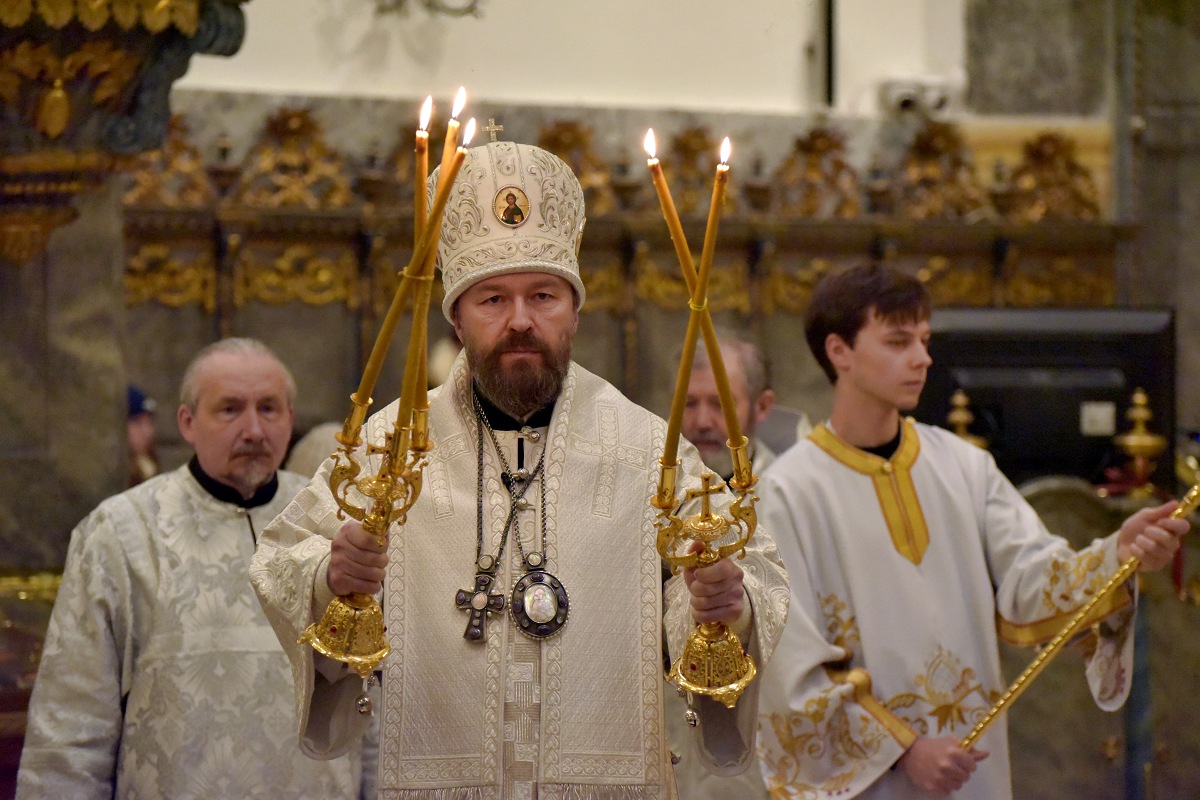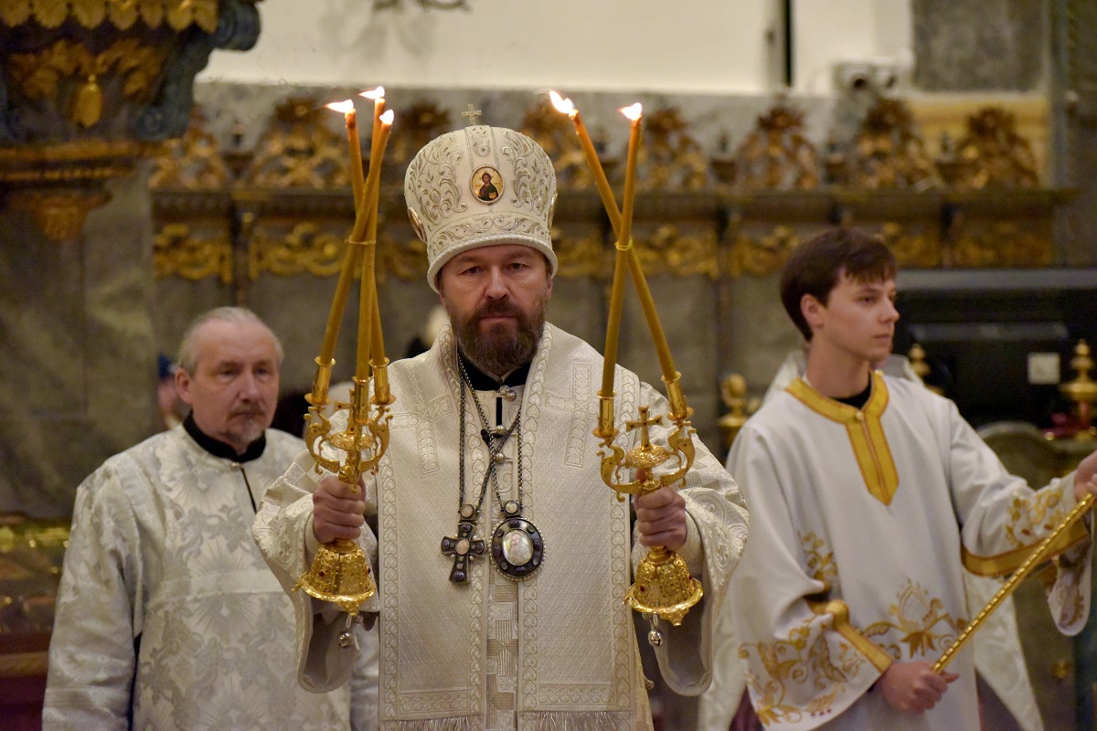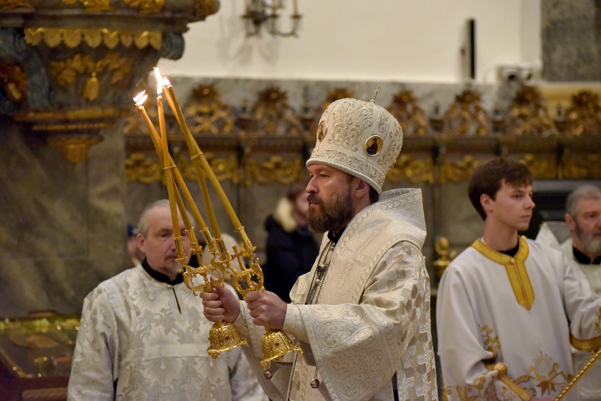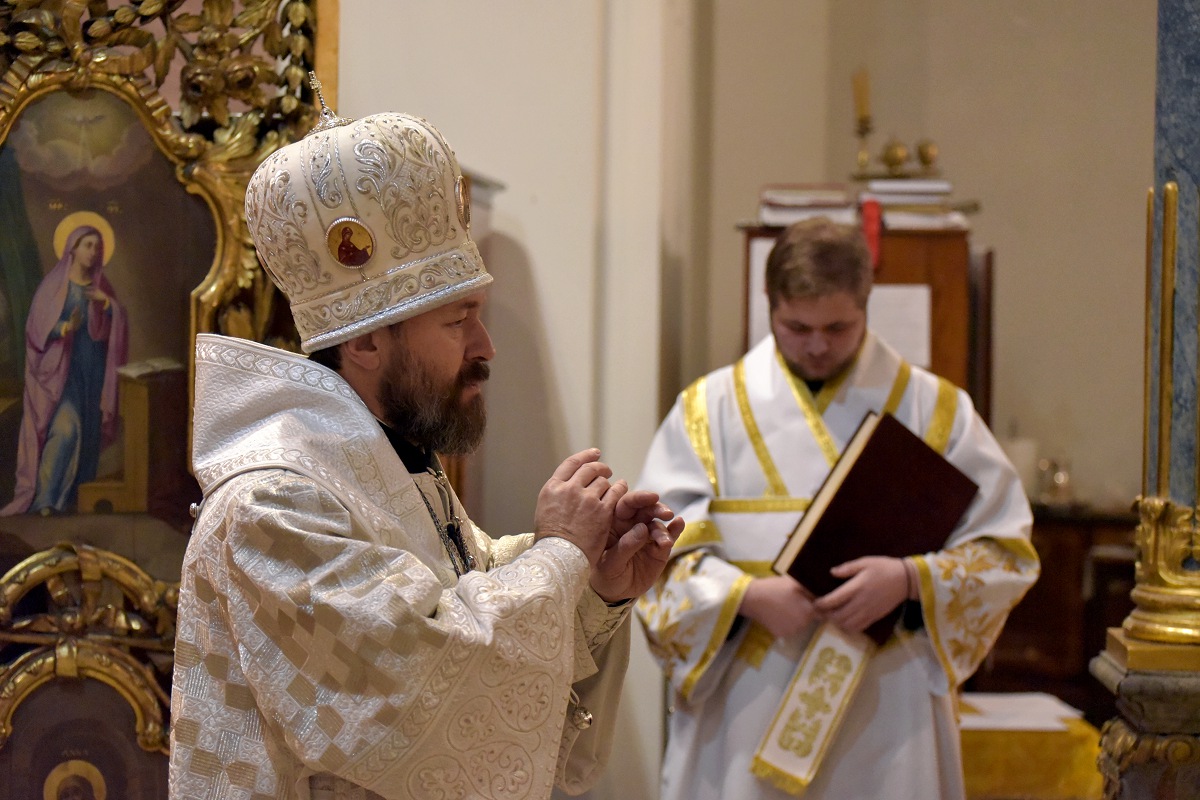 В завершение воскресной службы митрополит Иларион обратился к молящимся с архипастырским словом, раскрыв содержание Евангельского чтения Божественной литургии, а также поблагодарил прихожан за совместную молитву, поздравил причастников с принятием Святых Христовых Тайн, именинников с днем Ангела и преподал всем свое благословение.