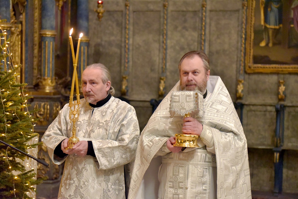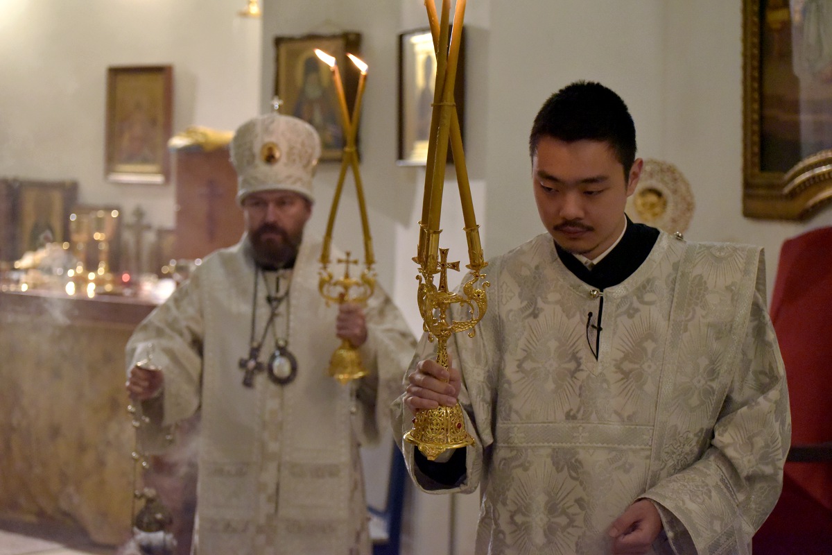 Главе Венгерской епархии сослужили настоятель Свято-Троицкого прихода иерей Димитрий Корнилов, священник прихода Святослав Булах, архиерейский диакон Вячеслав Ли.