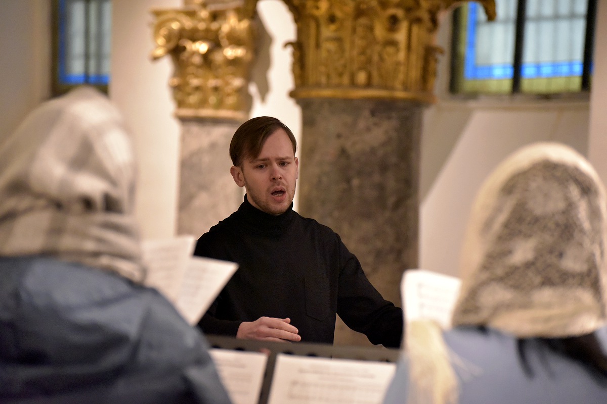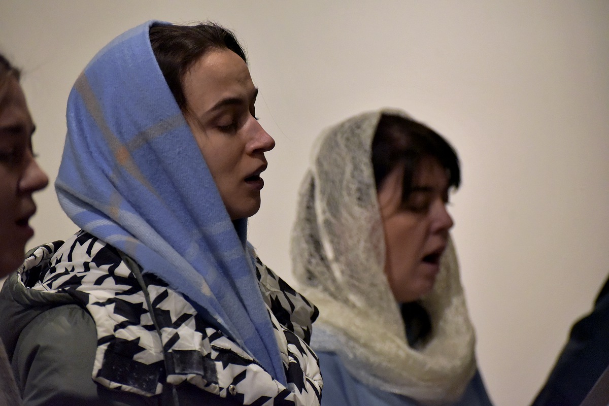 Молитвенные песнопения праздничной воскресной литургии исполнили певчие архиерейского хора под управлением Георгия Суркова.