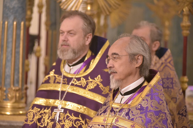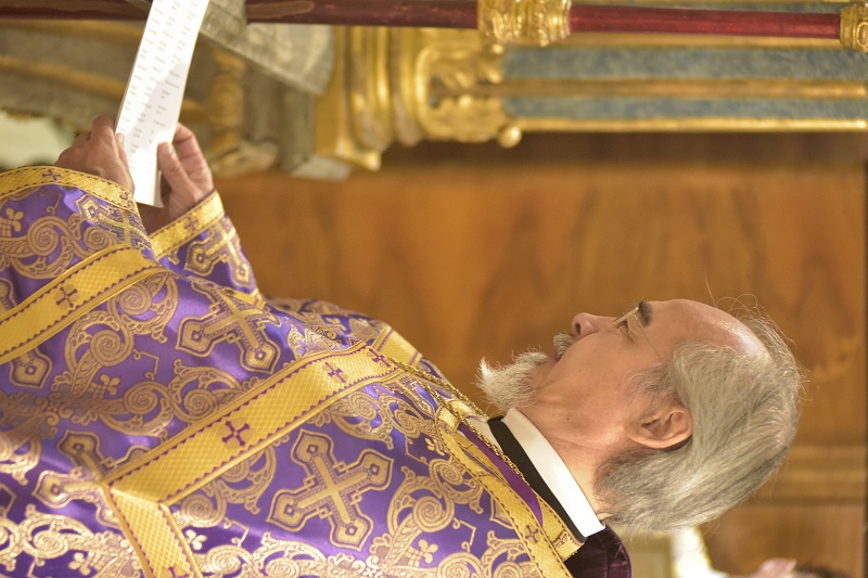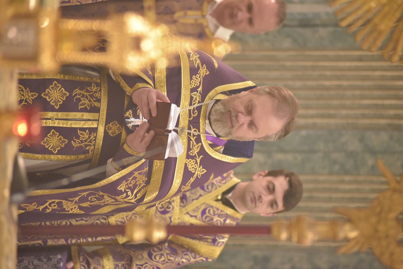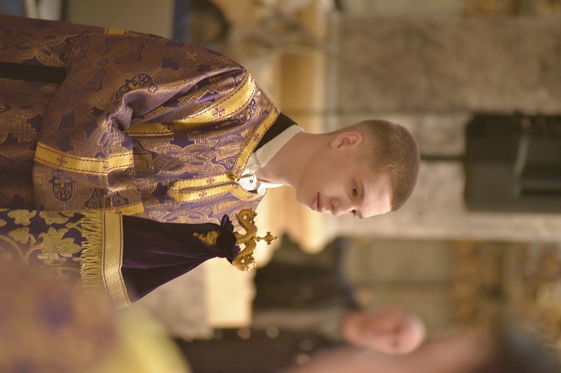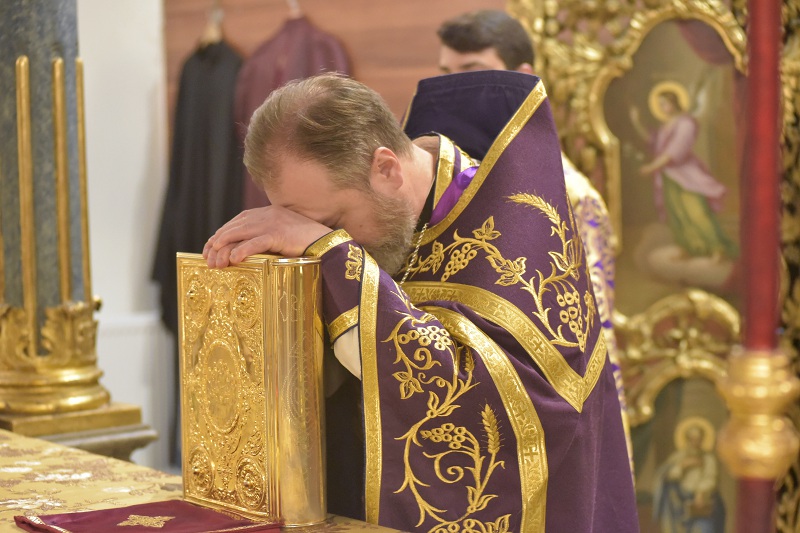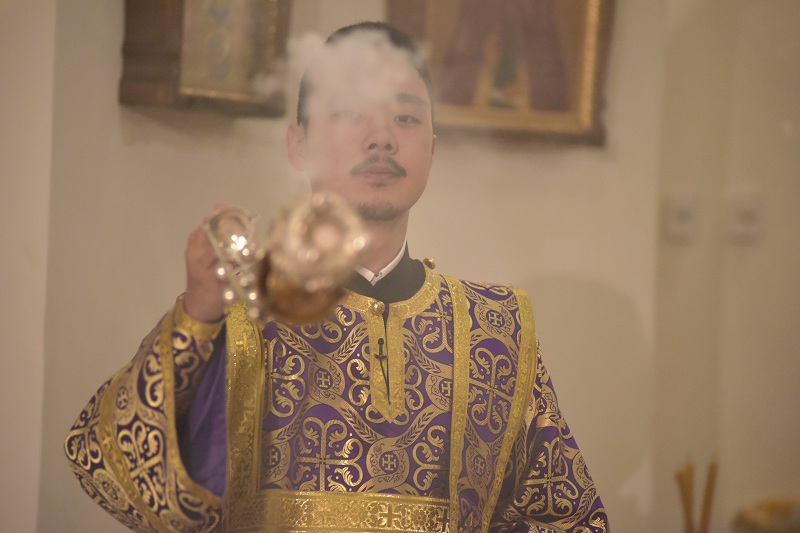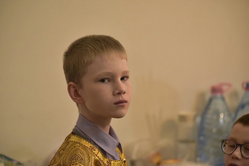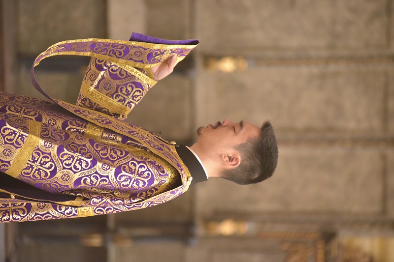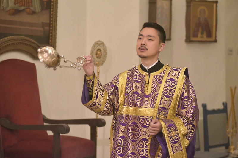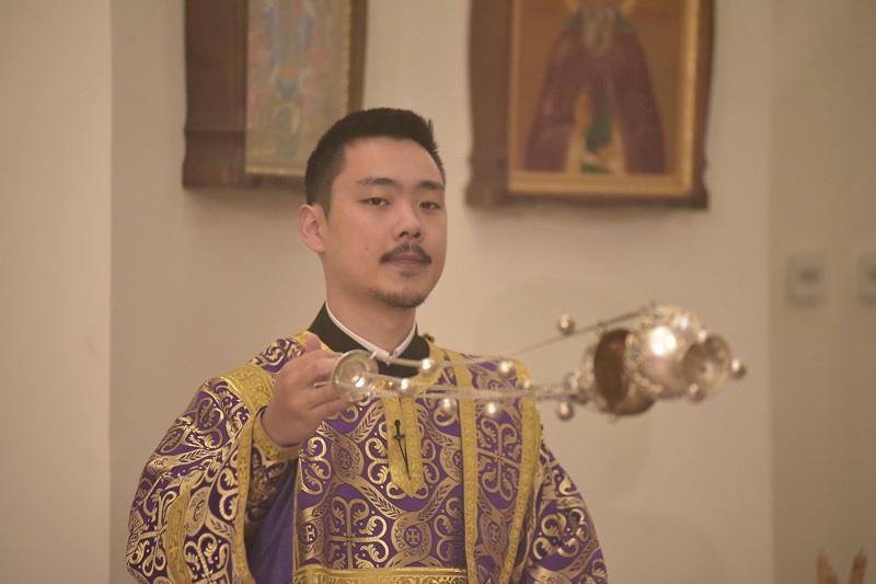 В евангельском фрагменте, возвещенном диаконом Вячеславом Ли, рассказывалось об исцелении отрока, одержимого бесовским насилием, попущенным ему за неверие и развращенность родителя. Даровав отроку здравие, Господь указал на молитву и пост, как на главнейшие условия исцеления от духовных недугов, от пленения падшими духами.