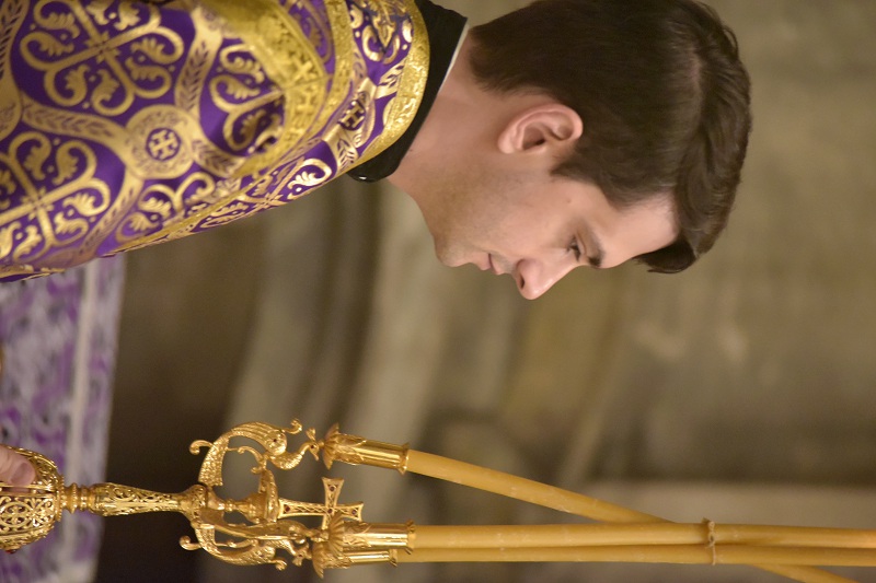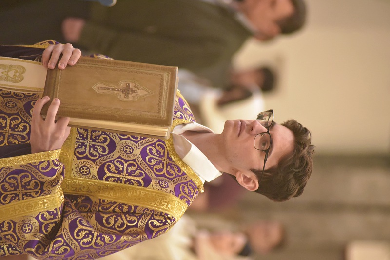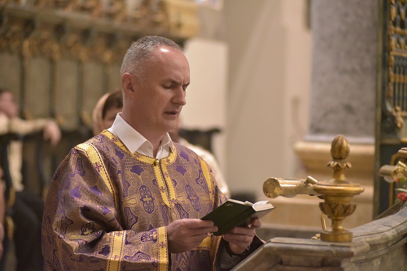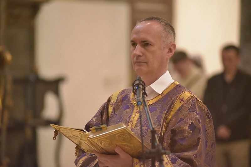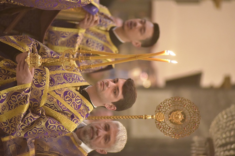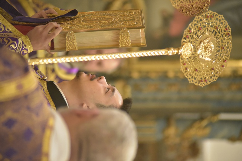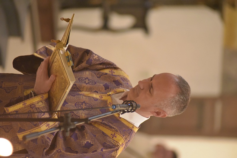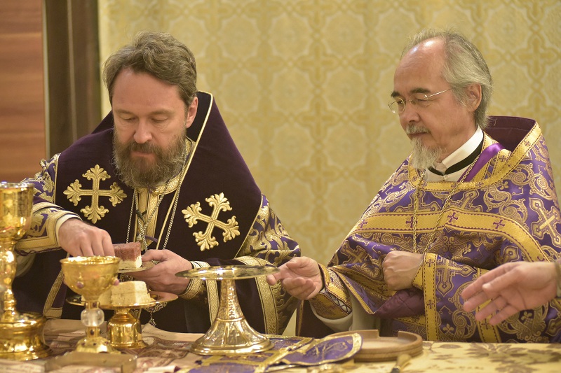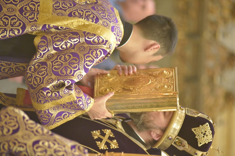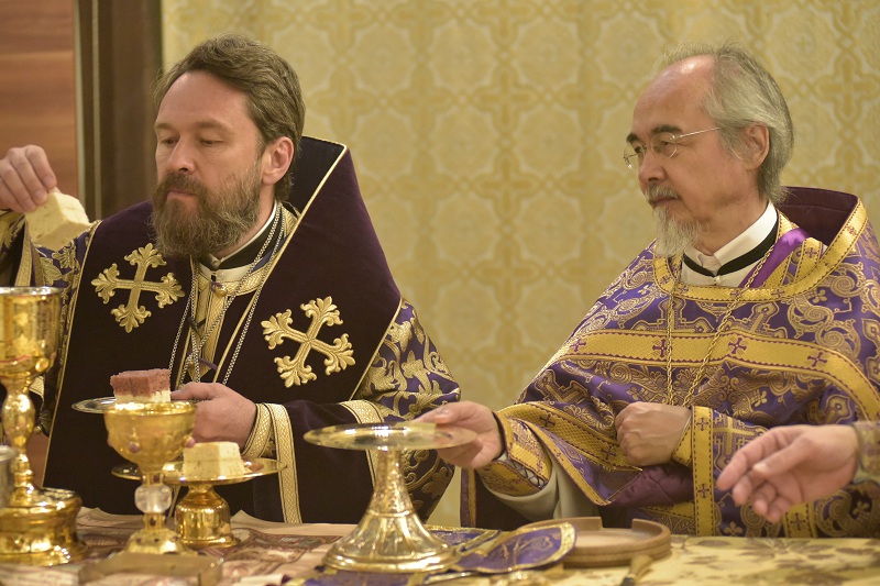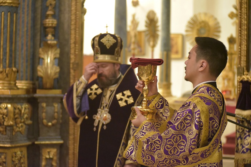 В евангельском фрагменте, возвещенном диаконом Вячеславом Ли, рассказывалось об исцелении отрока, одержимого бесовским насилием, попущенным ему за неверие и развращенность родителя. Даровав отроку здравие, Господь указал на молитву и пост, как на главнейшие условия исцеления от духовных недугов, от пленения падшими духами.