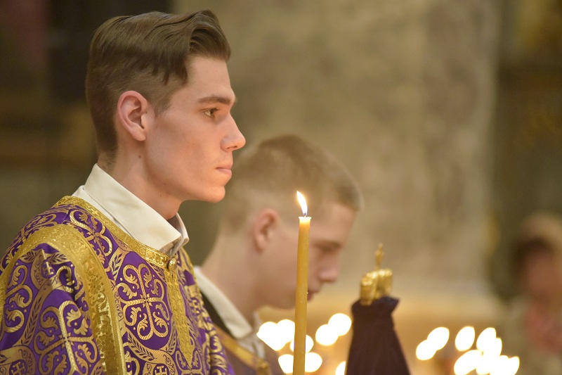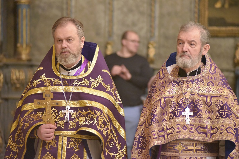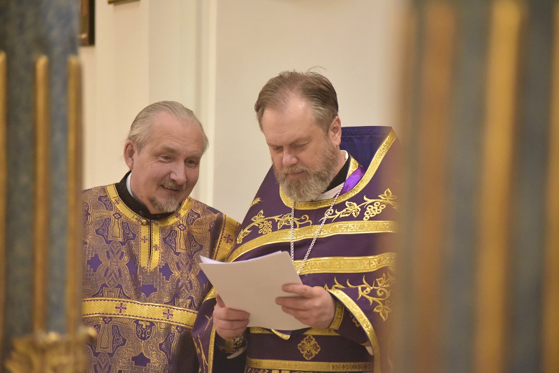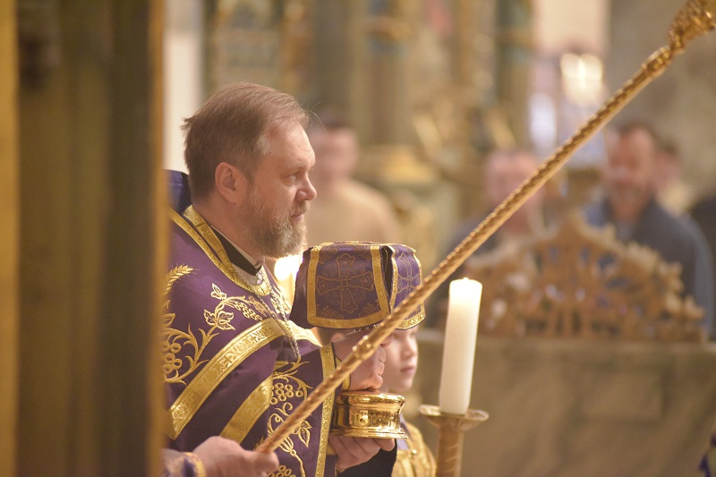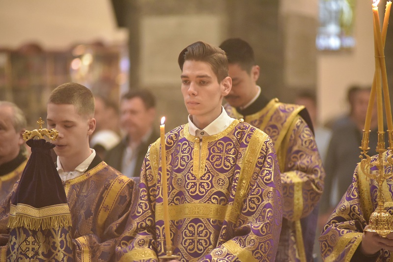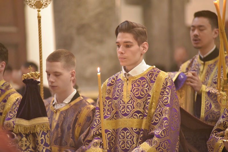 Божественную литургию четвертой великопостной Недели начал настоятель Свято-Троицкого прихода иерей Димитрий Корнилов. Молитвенные песнопения, воспевающие память преподобного Иоанна Лествичника и то его духовное руководство, которое он увековечил для человечества, исполнили певчие архиерейского хора под управлением Георгия Суркова.