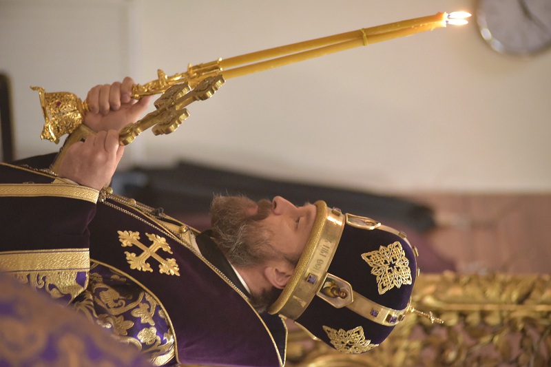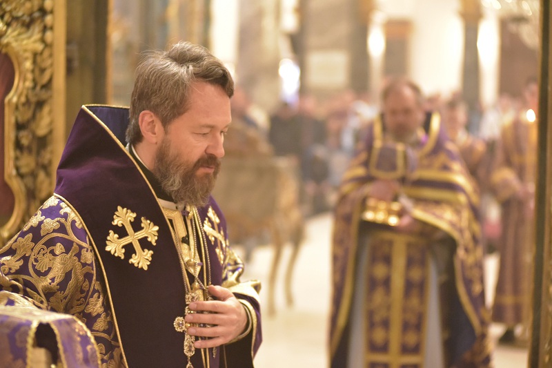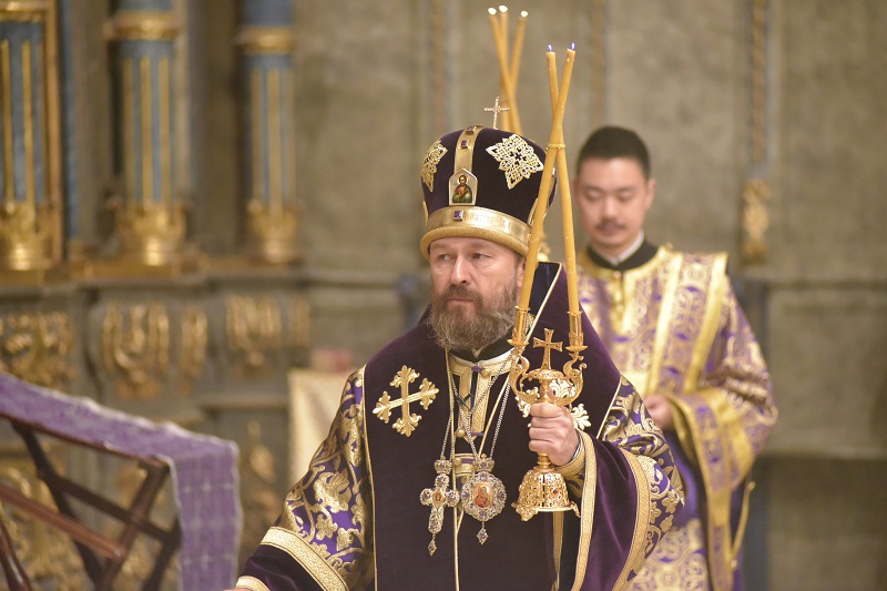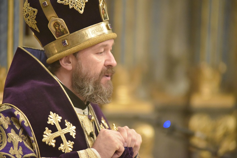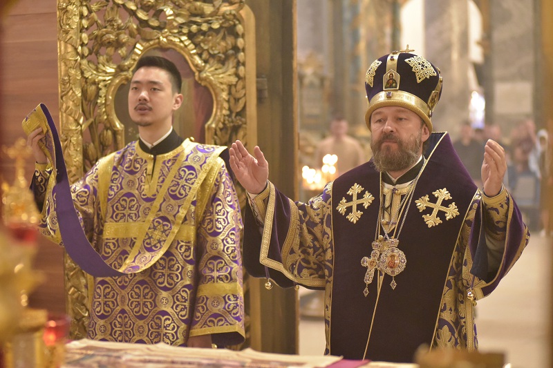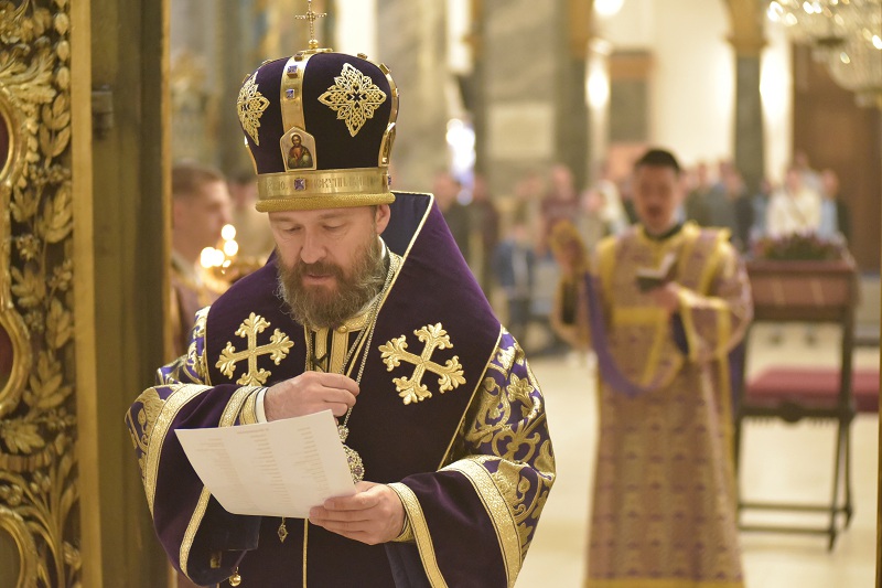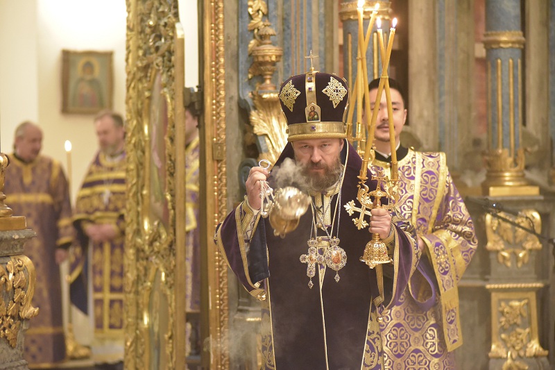 В завершение богослужения, по заамвонной молитве к прихожанам обратился митрополит Иларион, рассказав о значении крепкой веры в борьбе со страстями, о необходимости поста и молитвы, указанных в прозвучавшем евангельском чтении.