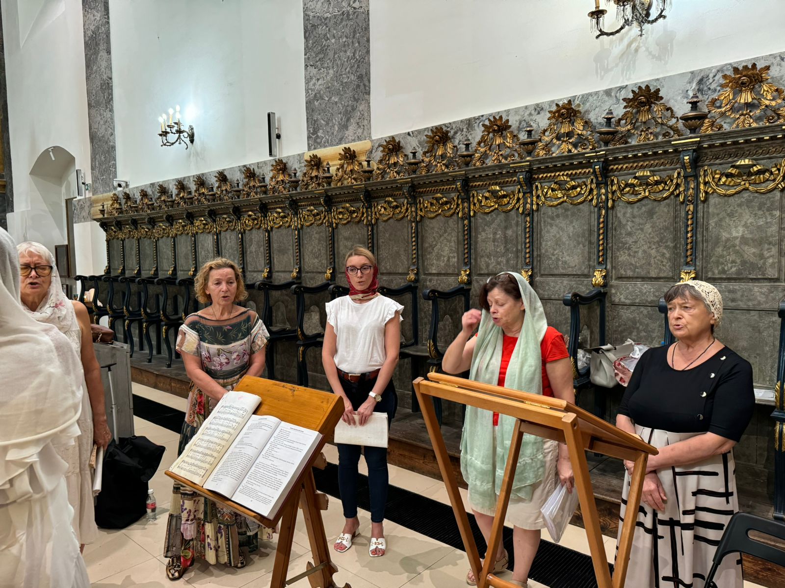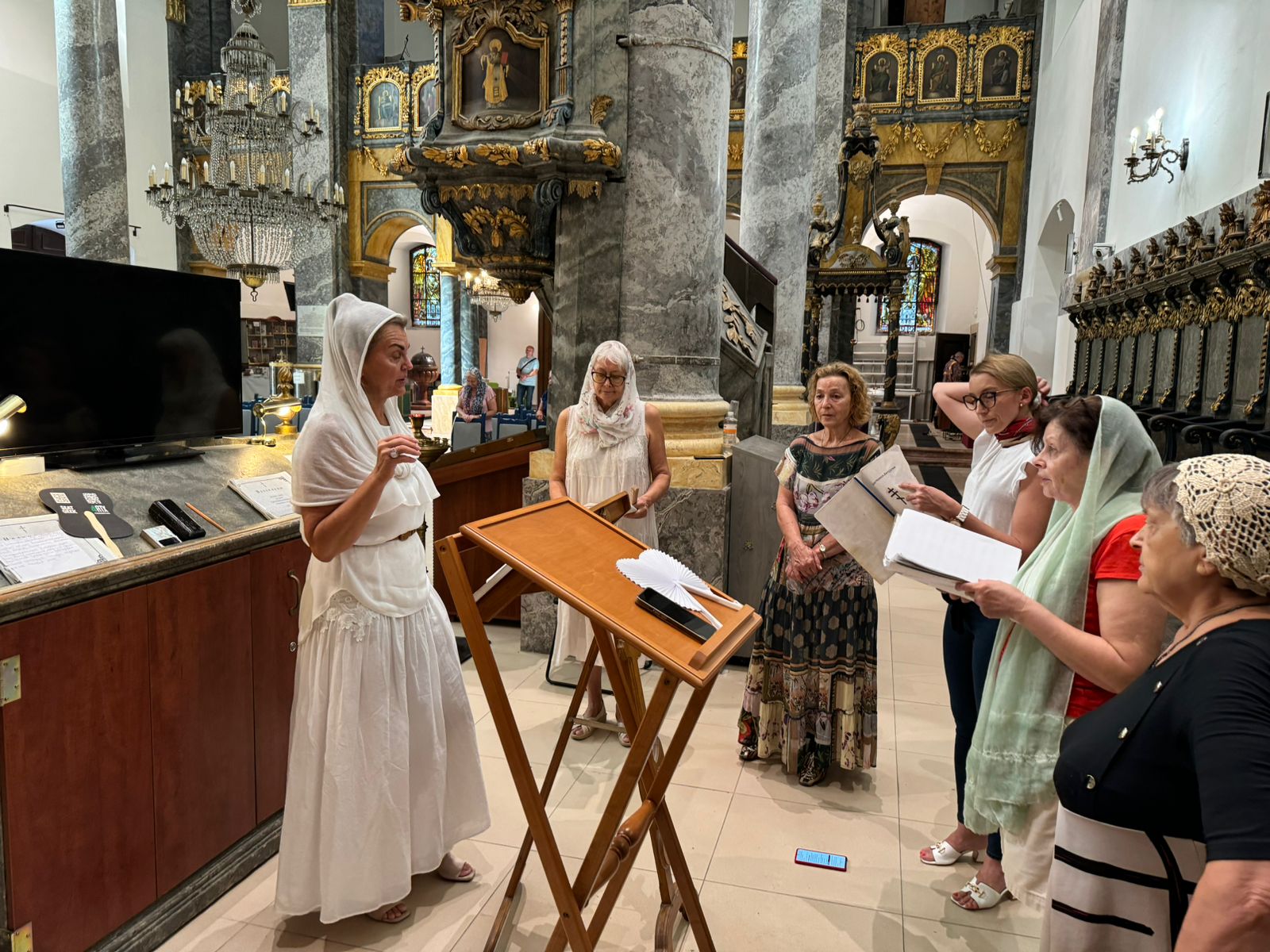 За праздничной службой, посвященной прославлению Креста Господня прозвучали песнопения в исполнении певчих приходского хора под управлением Ольги Булгаковой.