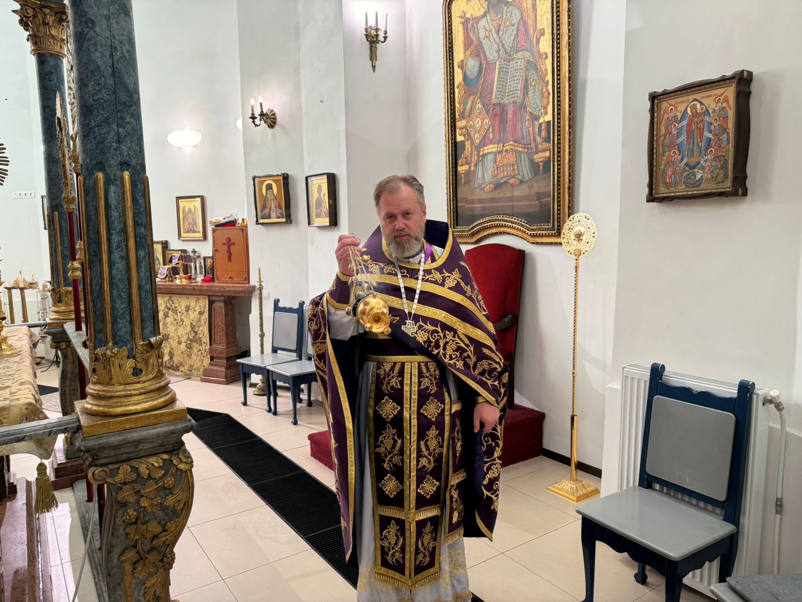 Также настоятель прихода иерей Димитрий после отпуста, поздравил собравшихся с наступившим церковным торжеством.