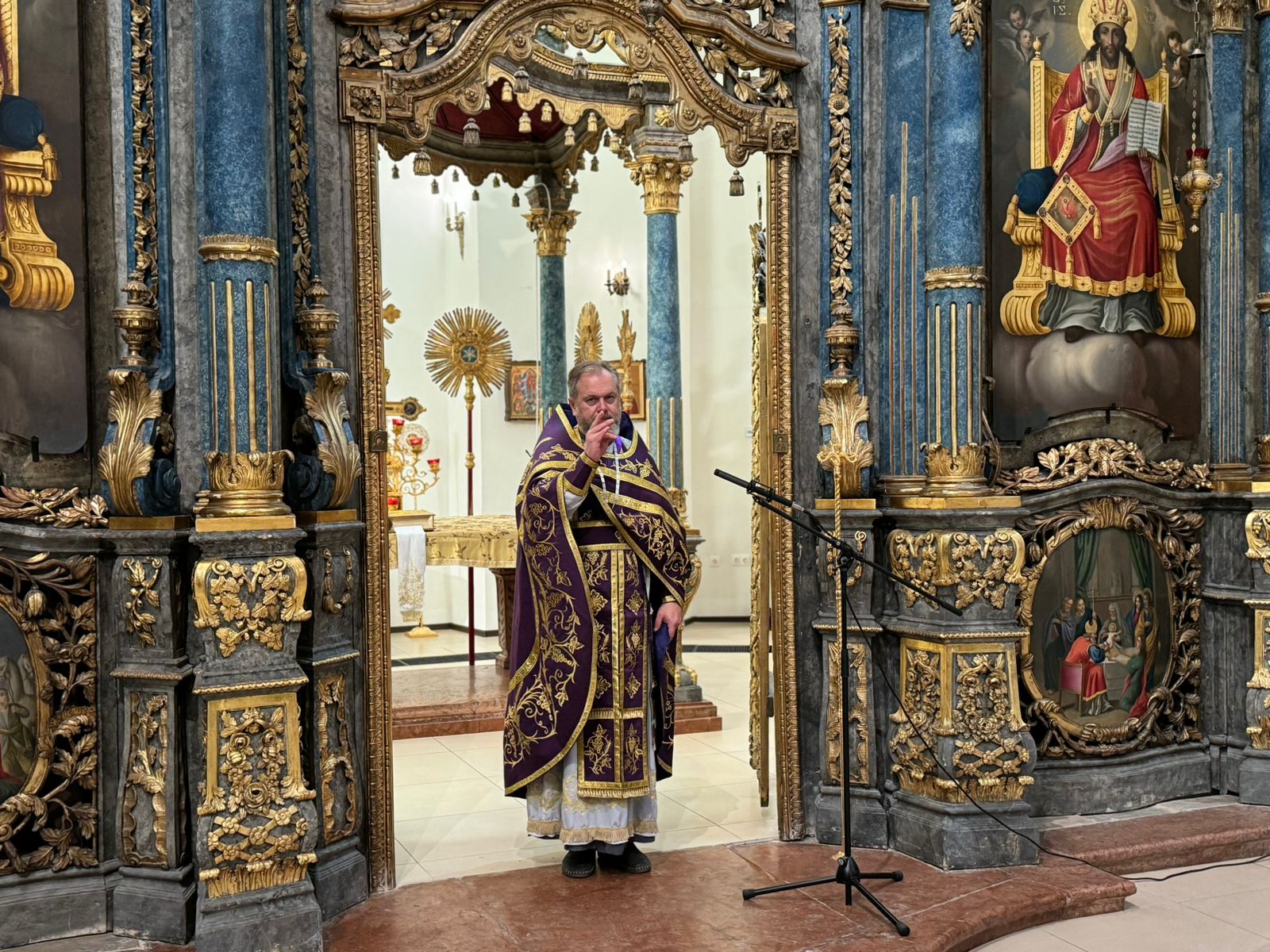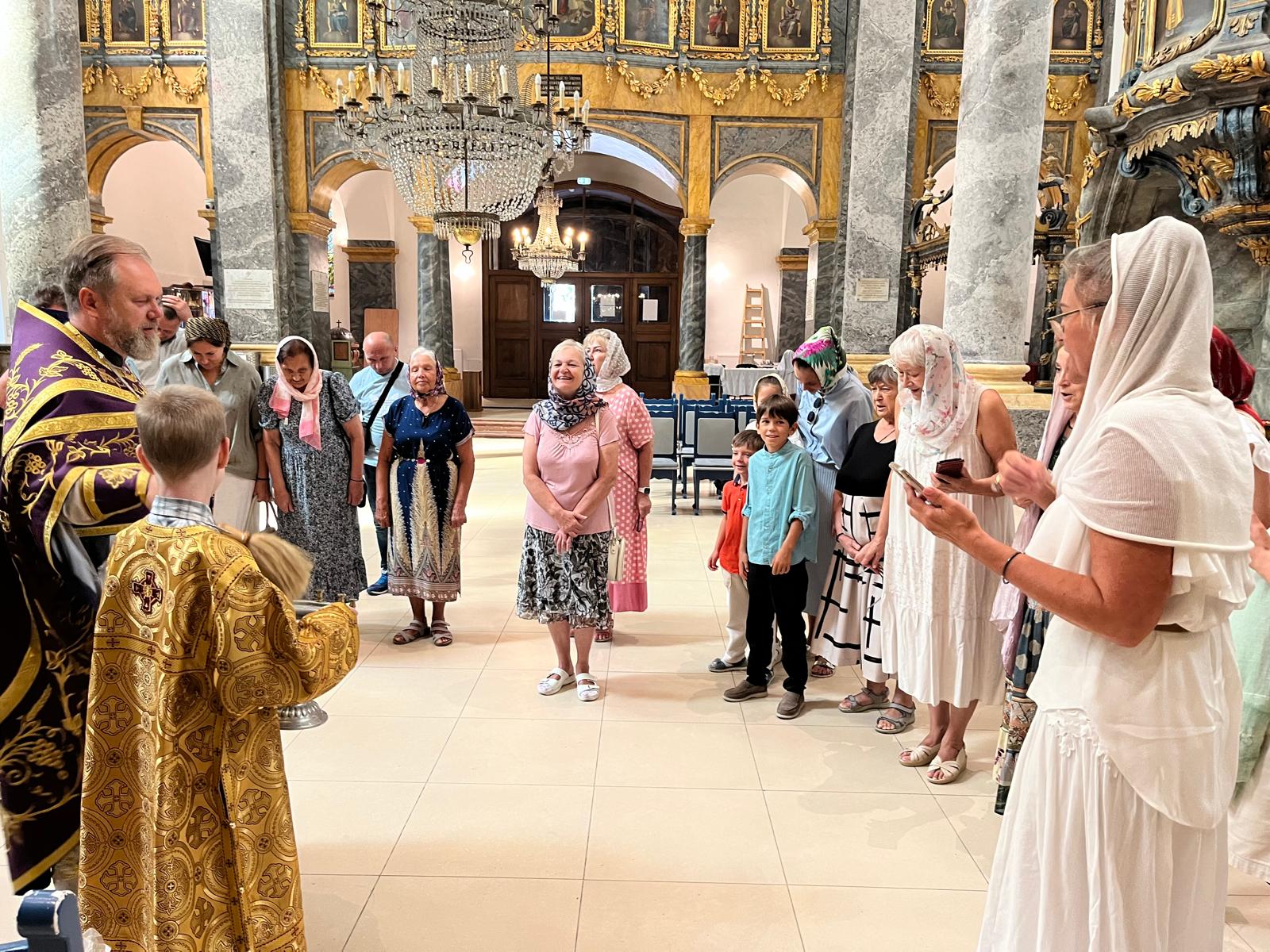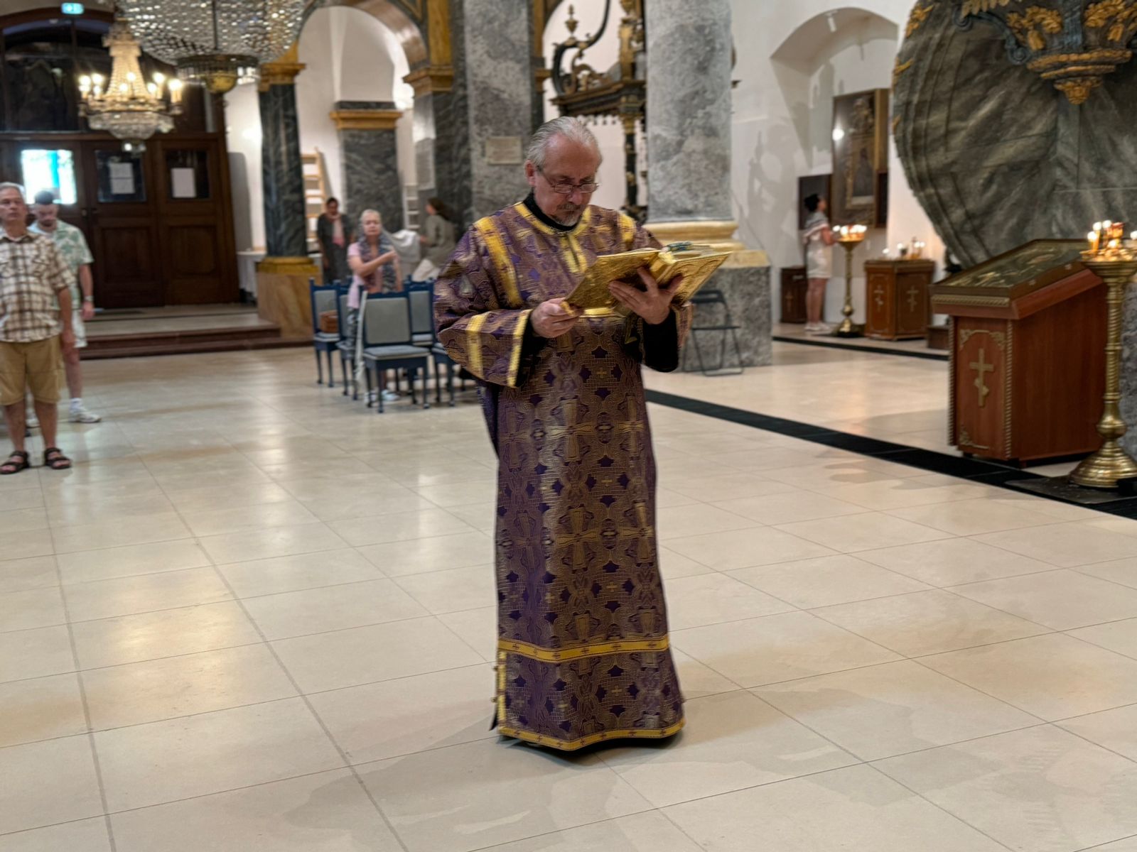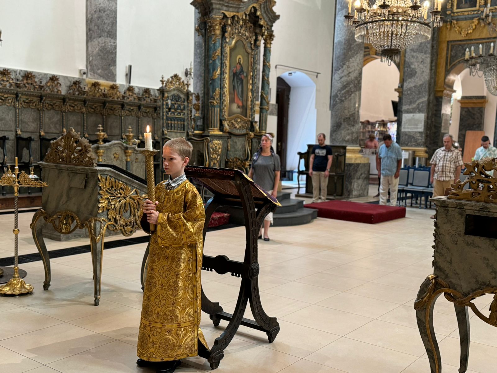 14 августа 2024 года в Свято-Троицком приходе Успенского кафедрального собора состоялась Божественная литургия. Ее совершил настоятель прихода иерей Димитрий Корнилов.