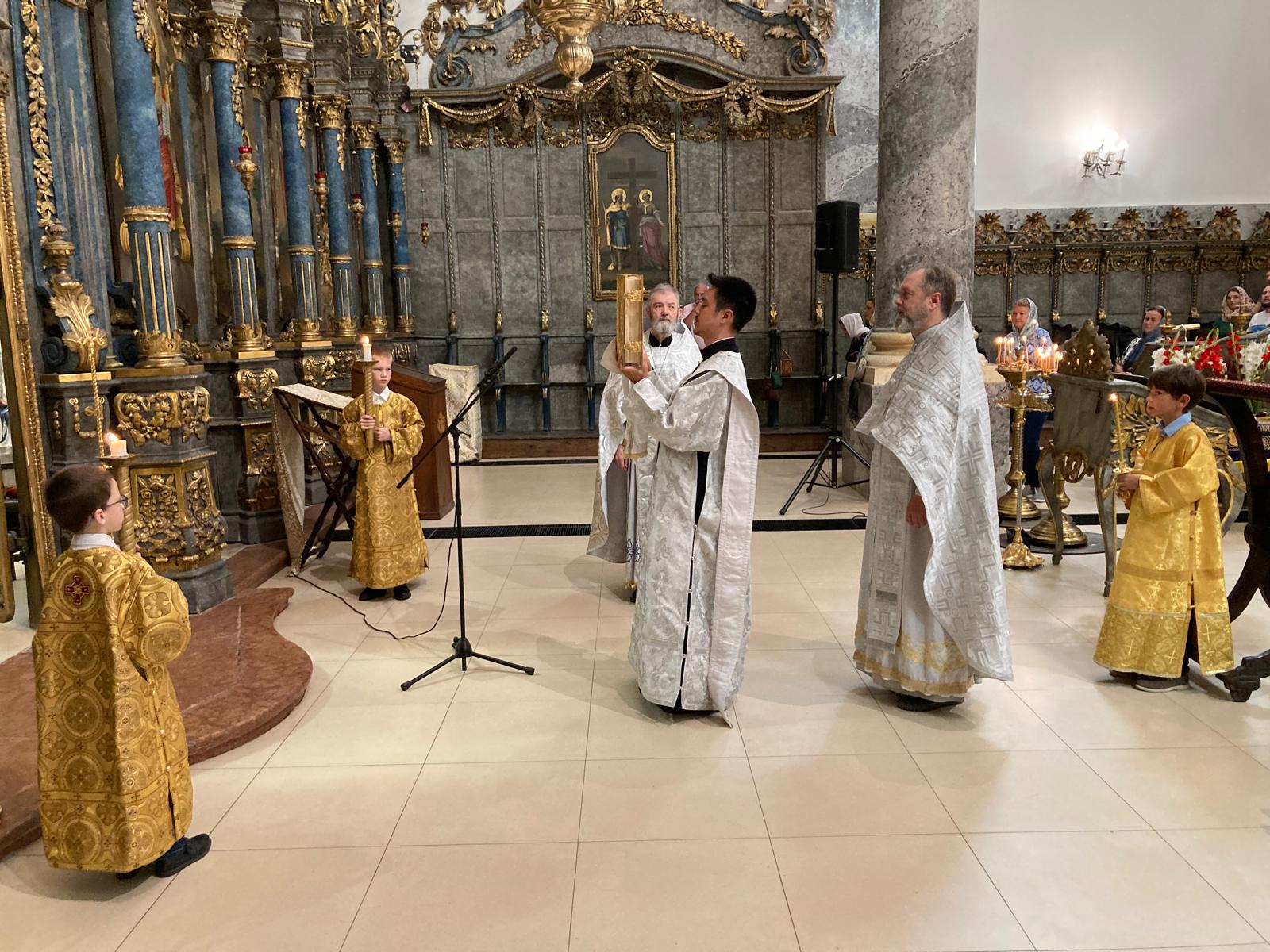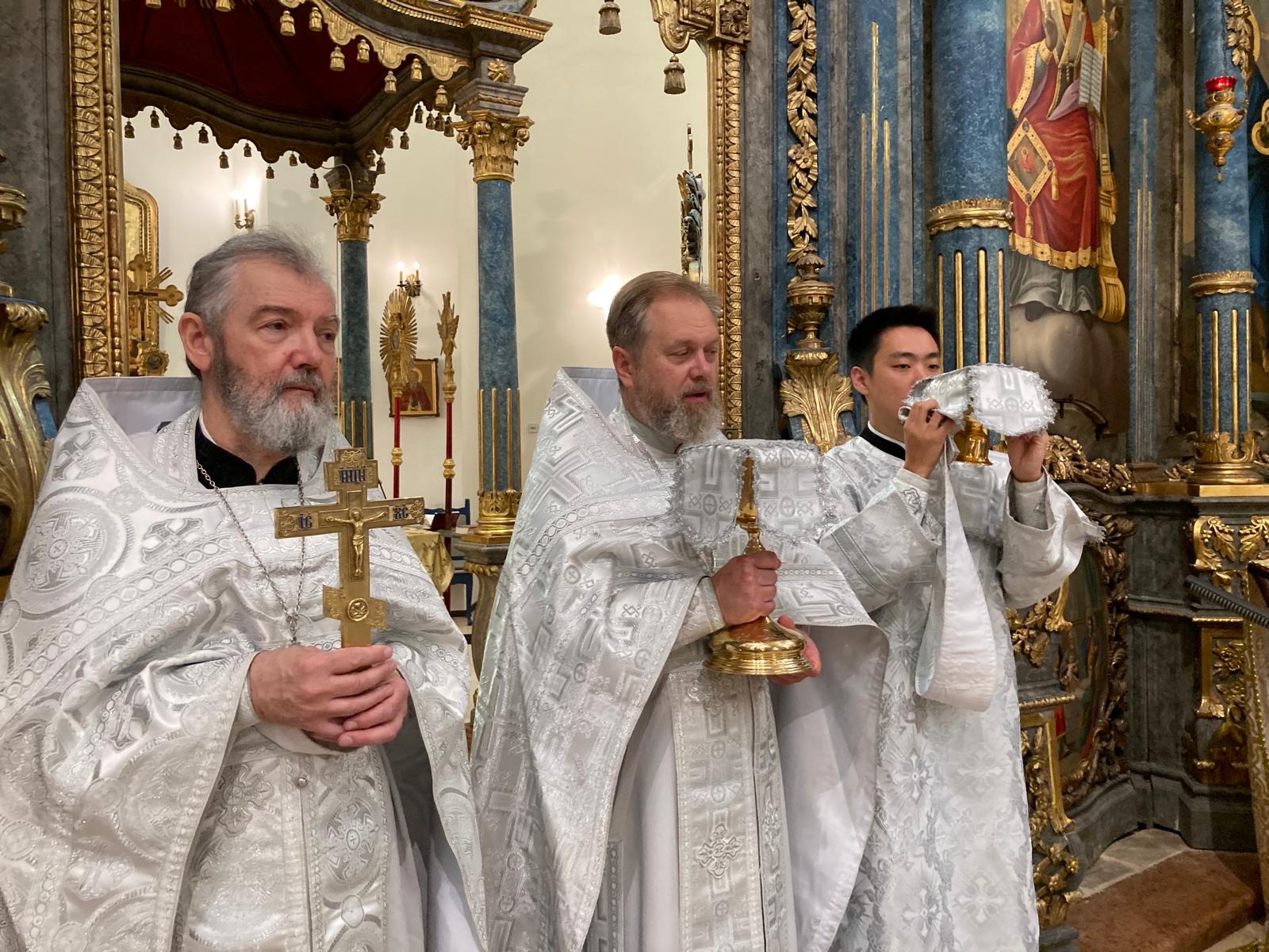 Утром 19 августа 2024 года, в праздник Преображения Господа Бога и Спаса нашего Иисуса Христа в Свято- Троицком приходе Успенского кафедрального собора состоялась Божественная Литургия, возглавил которую настоятель Свято-Троицкого прихода иерей Димитрий Корнилов в сослужении иерея Святослава Булаха, священника нашего прихода и архиерейского диакона Вячеслава Ли.