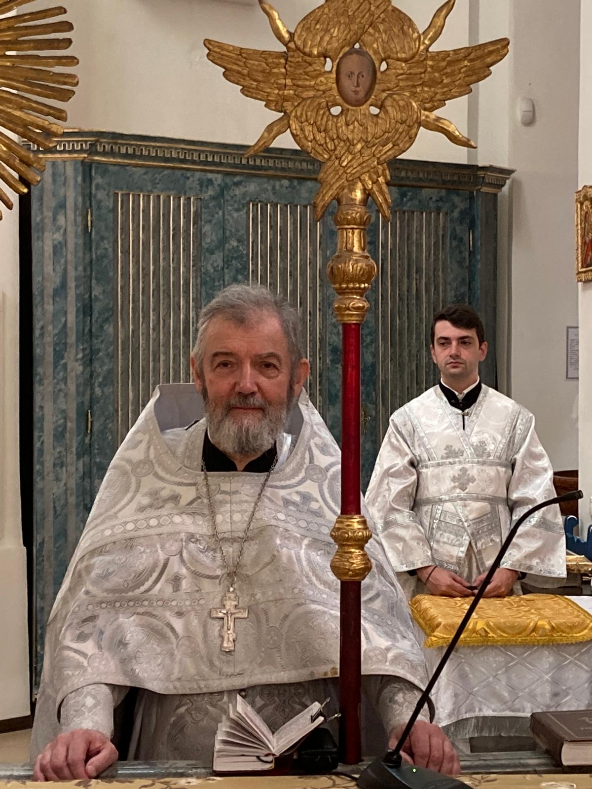 Перед выносом Святых Даров настоятель Свято-Троицкого прихода иерей Димитрий обратился к прихожанам с проповедью.
