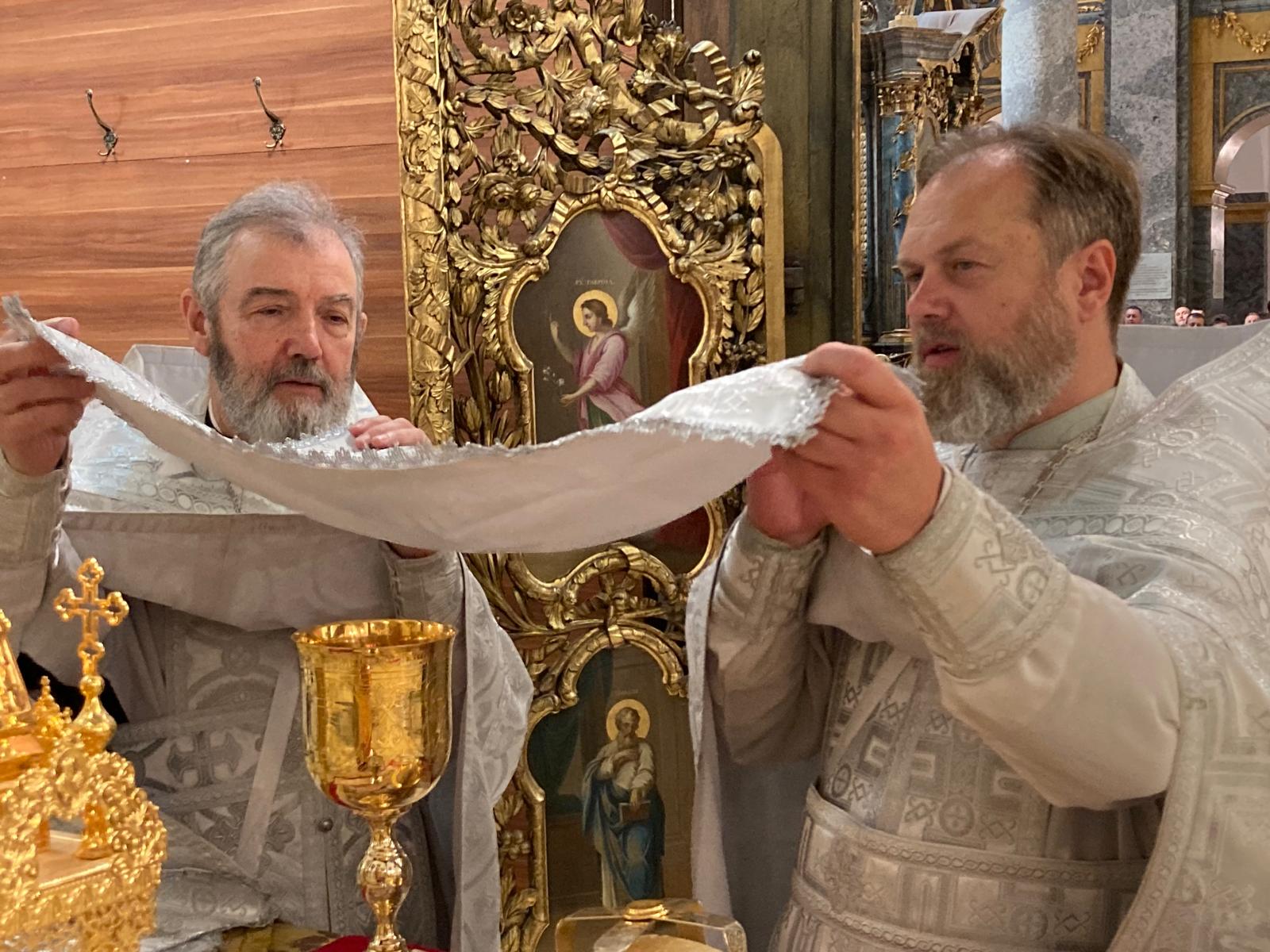 В евангельском зачале, прочитанном диаконом Вячеславом, был представлен подробный рассказ апостола Матфея о чудесном событии Преображения Господа Иисуса Христа на вершине горы Фавор. Описывая это явление, святой евангелист отметил также и глубокое чувство внутреннего ликования апостола Петра, целиком овладевшего им на тот миг от причастности дарам благодати Сына Божия.