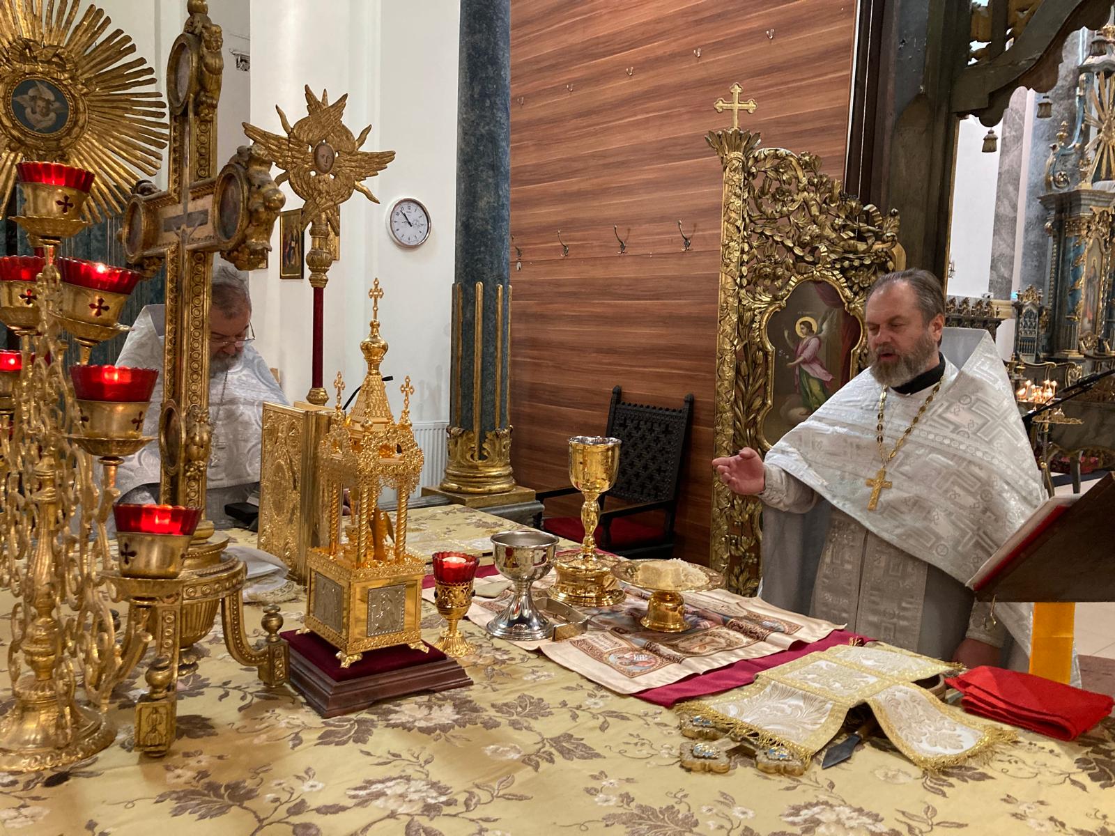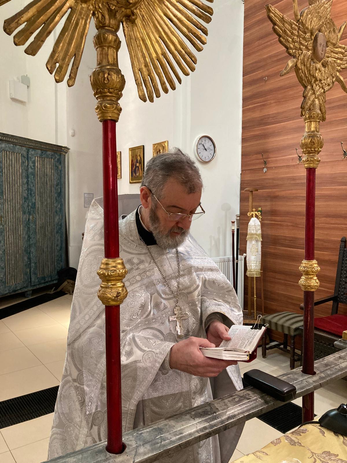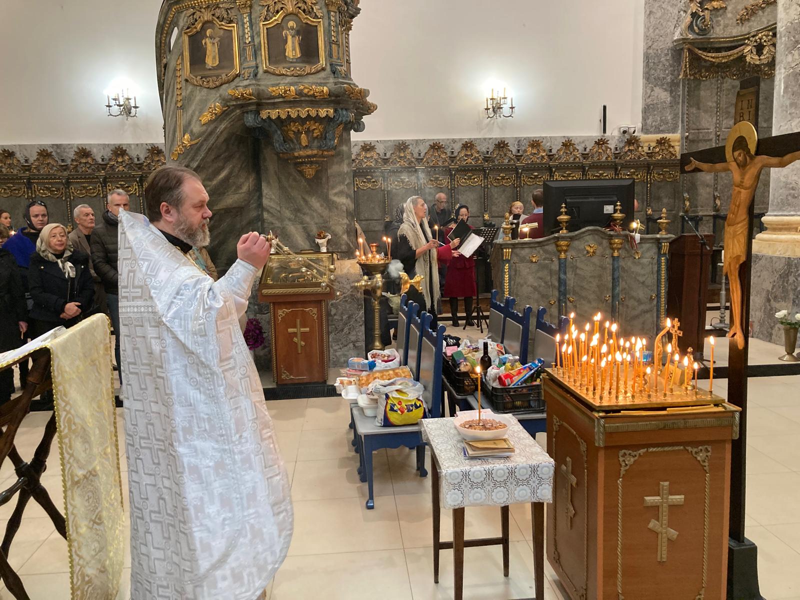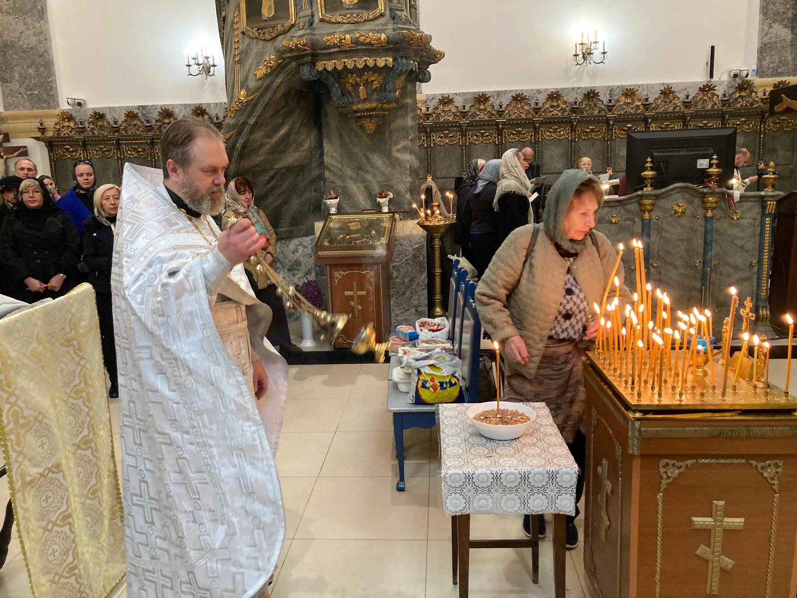 После причащения прихожан Святыми Христовыми Тайнами, по заамвонной молитве настоятель прихода иерей Димитрий Корнилов и священник прихода Святослав Булах совершили поминальное чинопоследование.