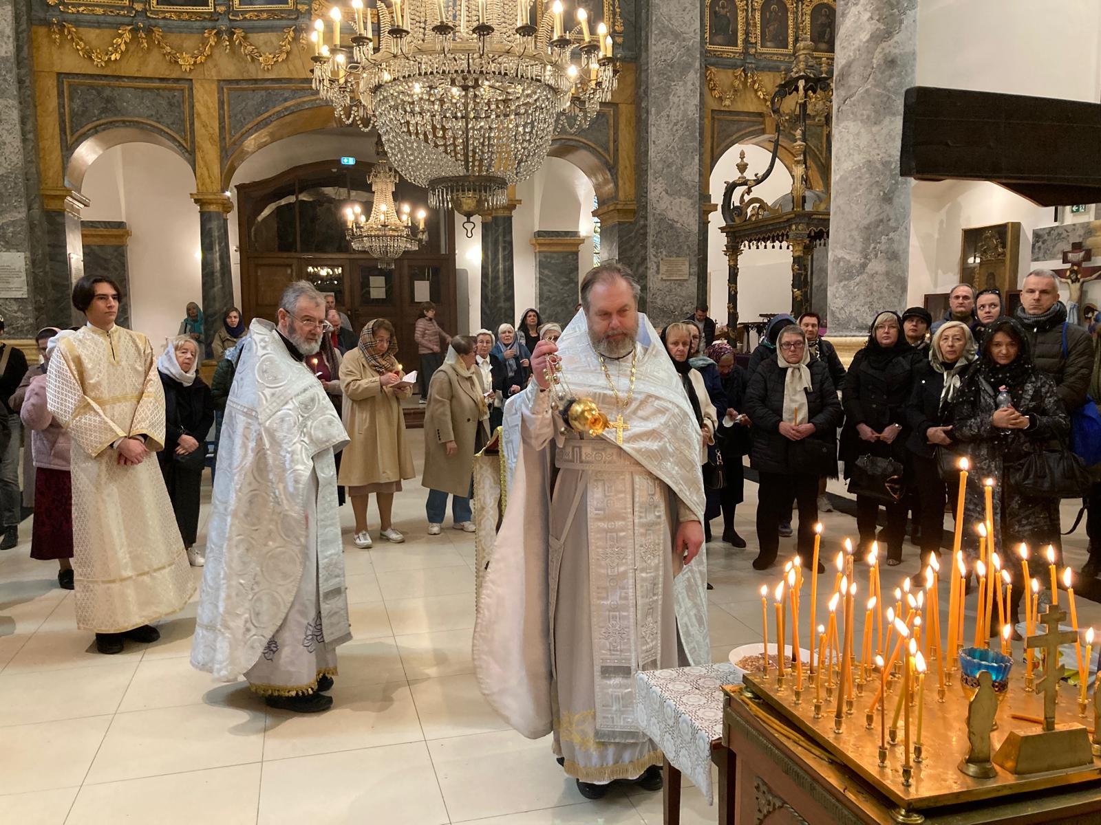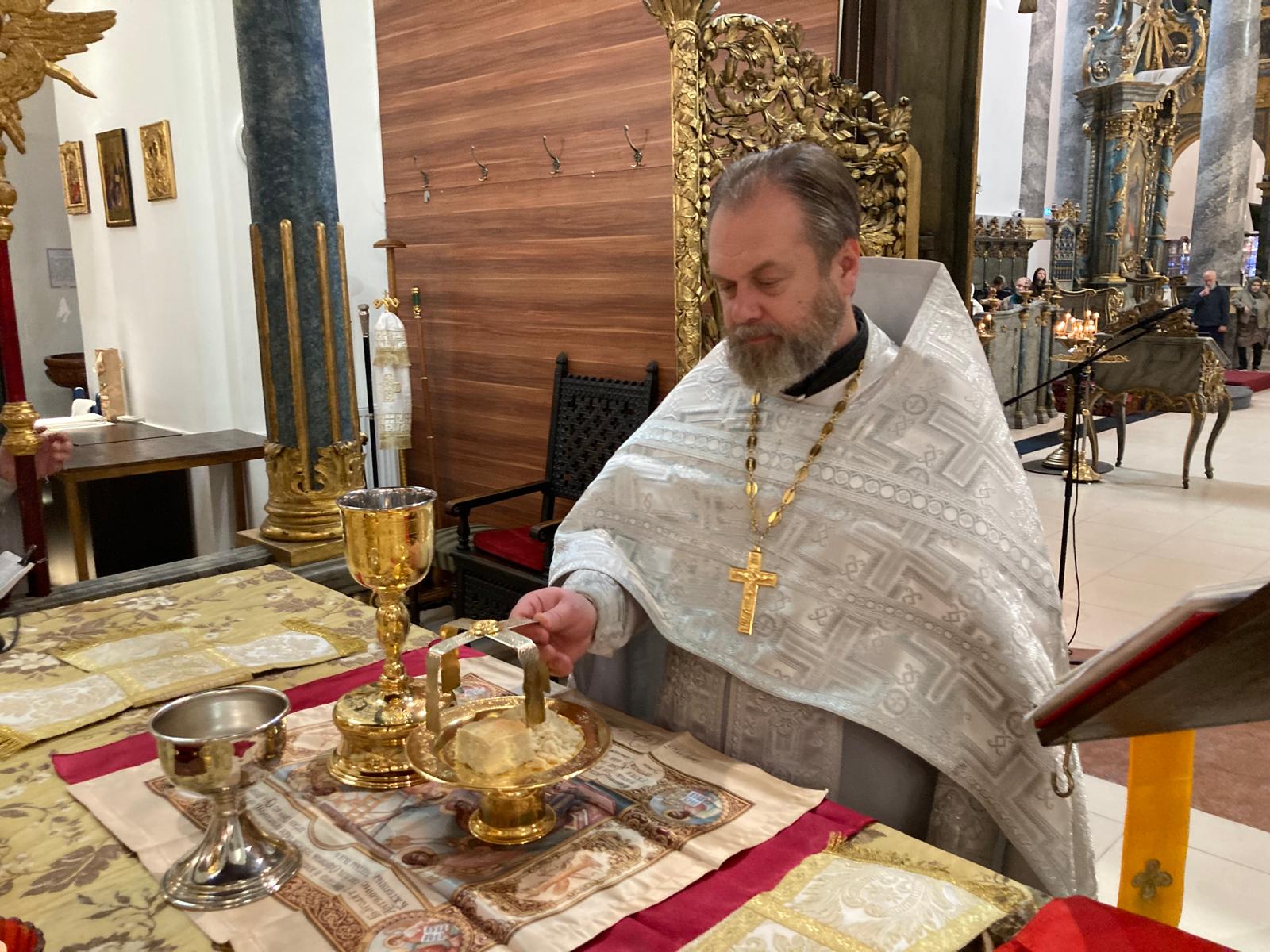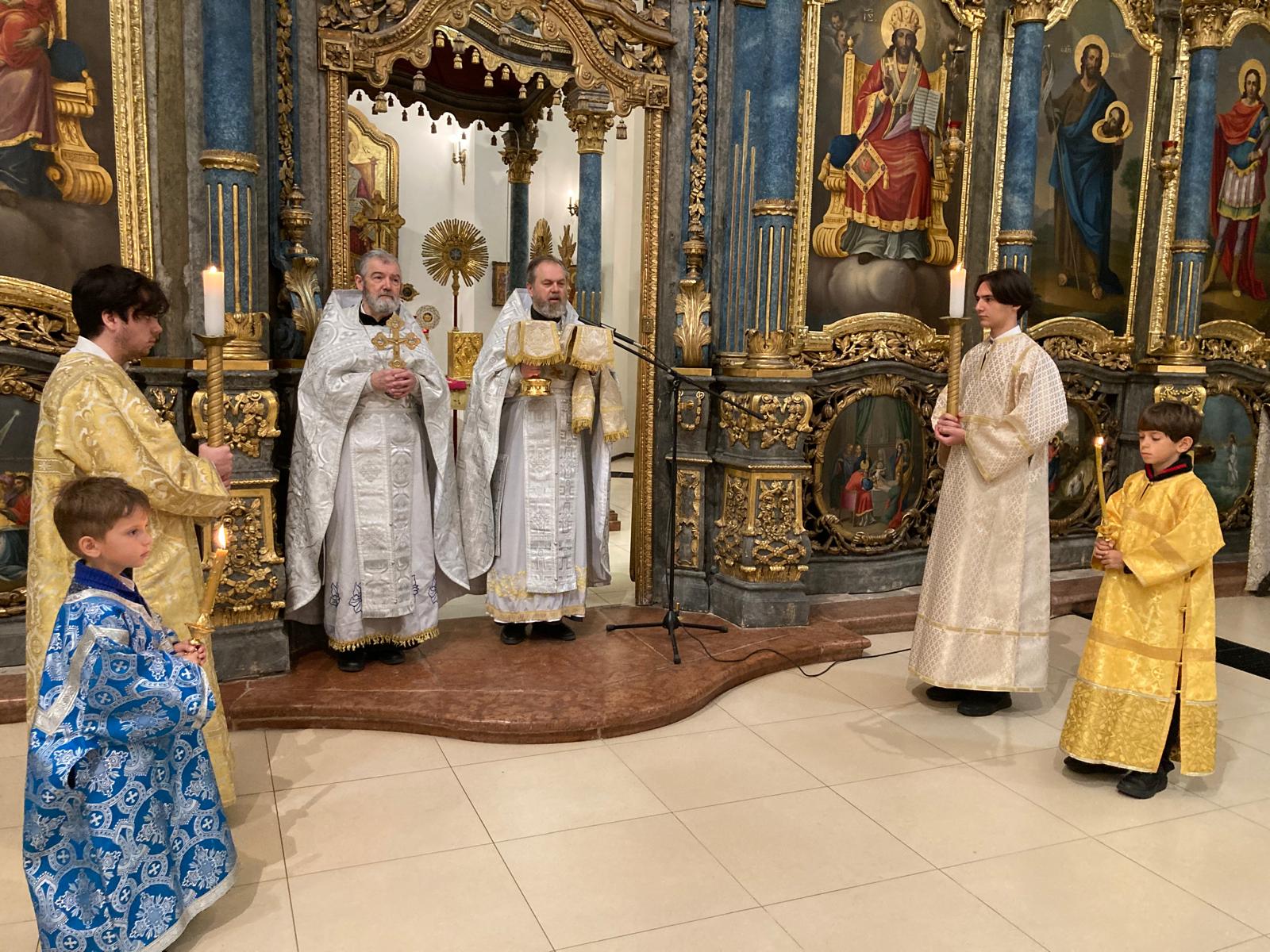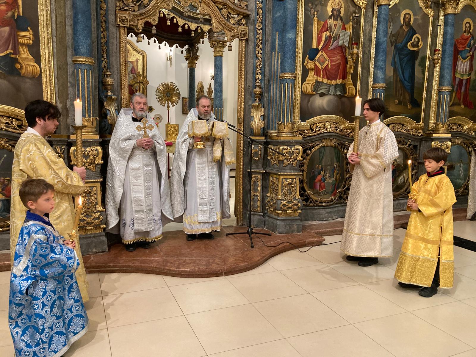 После причащения прихожан Святыми Христовыми Тайнами, по заамвонной молитве настоятель прихода иерей Димитрий Корнилов и священник прихода Святослав Булах совершили поминальное чинопоследование.