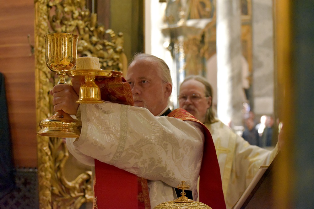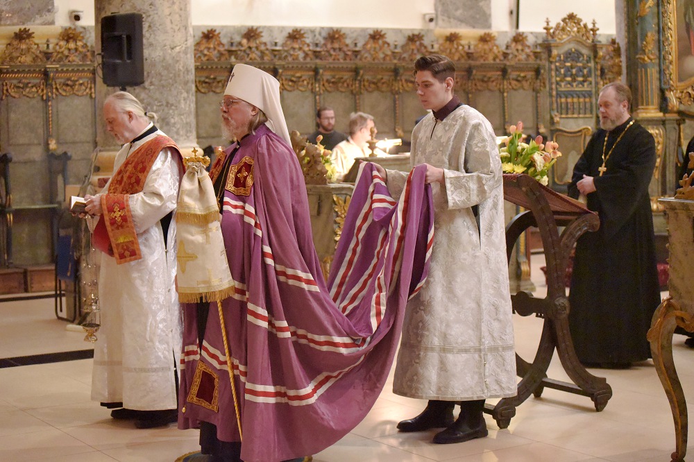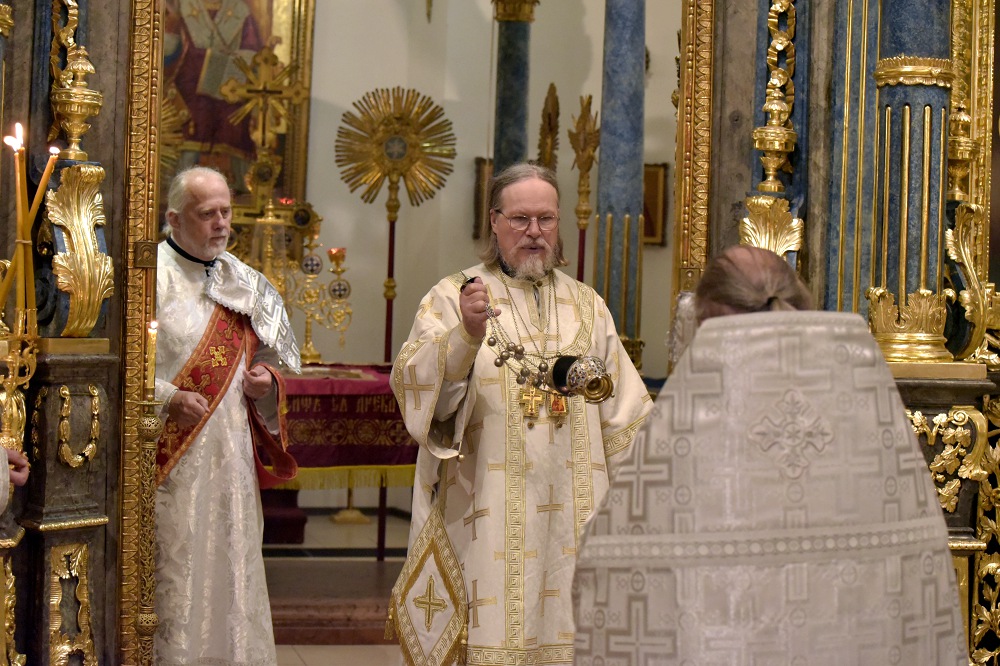 В завершение богослужения митрополит Марк обратился к прихожанам с пастырским словом, а после причащения прихожан он поблагодарил собравшихся за общую молитву, поздравил причастников с принятием Святых Христовых Таин, именинников с днем Ангела и преподал всем свое архипастырское благословение.