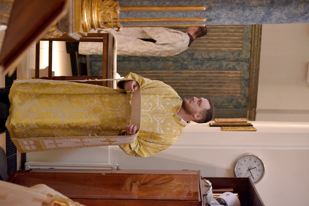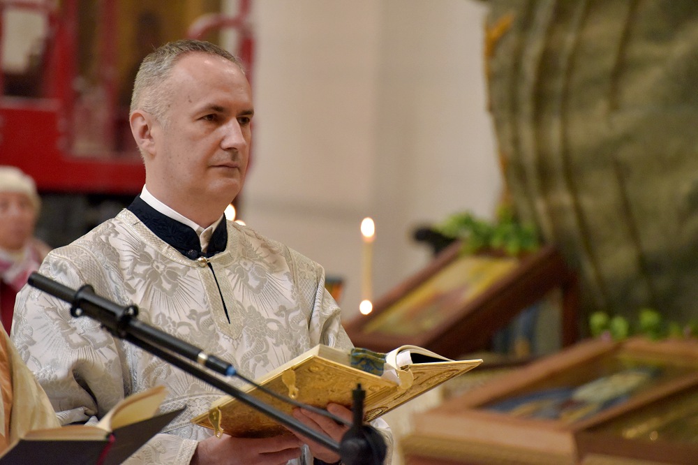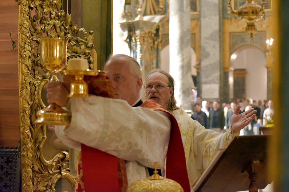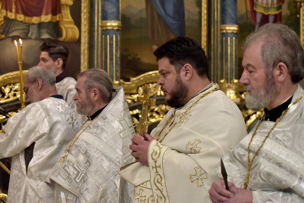 Фрагмент девятой главы от Иоанна Богослова, содержащий обстоятельное описание чудесного исцеление слепого, был прочитан диаконом Владимиром Чепыжовым. Евангельский рассказ поведал, как слепой от рождения в результате чуда, совершенного Спасителем, обрел зрение не только телесное, но и духовное, уверовав в то, что Иисус Христос есть истинный Сын Божий. Телесно же зрячие от рождения, но ослепшие от злобы духовными очами фарисеи – напротив, стали клеветать на Христа, не желая поверить в величайшее чудо исцеления слепорожденного и негодуя по поводу того, что Господь сотворил его в субботу.