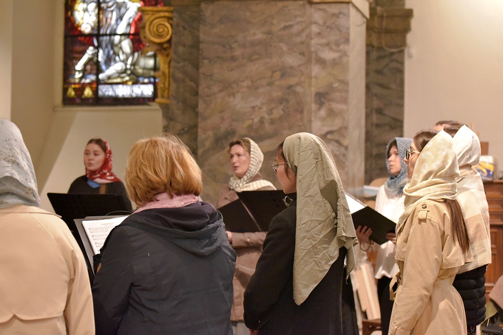 Молитвенные песнопения воскресной Божественной Литургии исполнили певчие архиерейского хора под управлением Георгия Суркова.