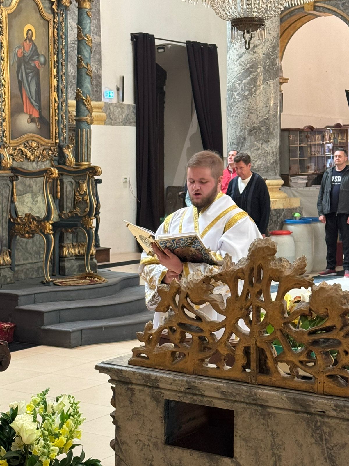В праздник Вознесения Господа нашего Иисуса Христа в Успенском кафедральном соборе настоятель прихода во имя Святой Троицы иерей Димитрий Корнилов совершил раннюю Божественную литургию . Ему сослужил помощник правящего архиерея священник прихода Святослав Булах. По окончании службы отец Димитрий произнёс проповедь, в которой рассказал о значении Вознесения Господа, о смысле этого праздника.