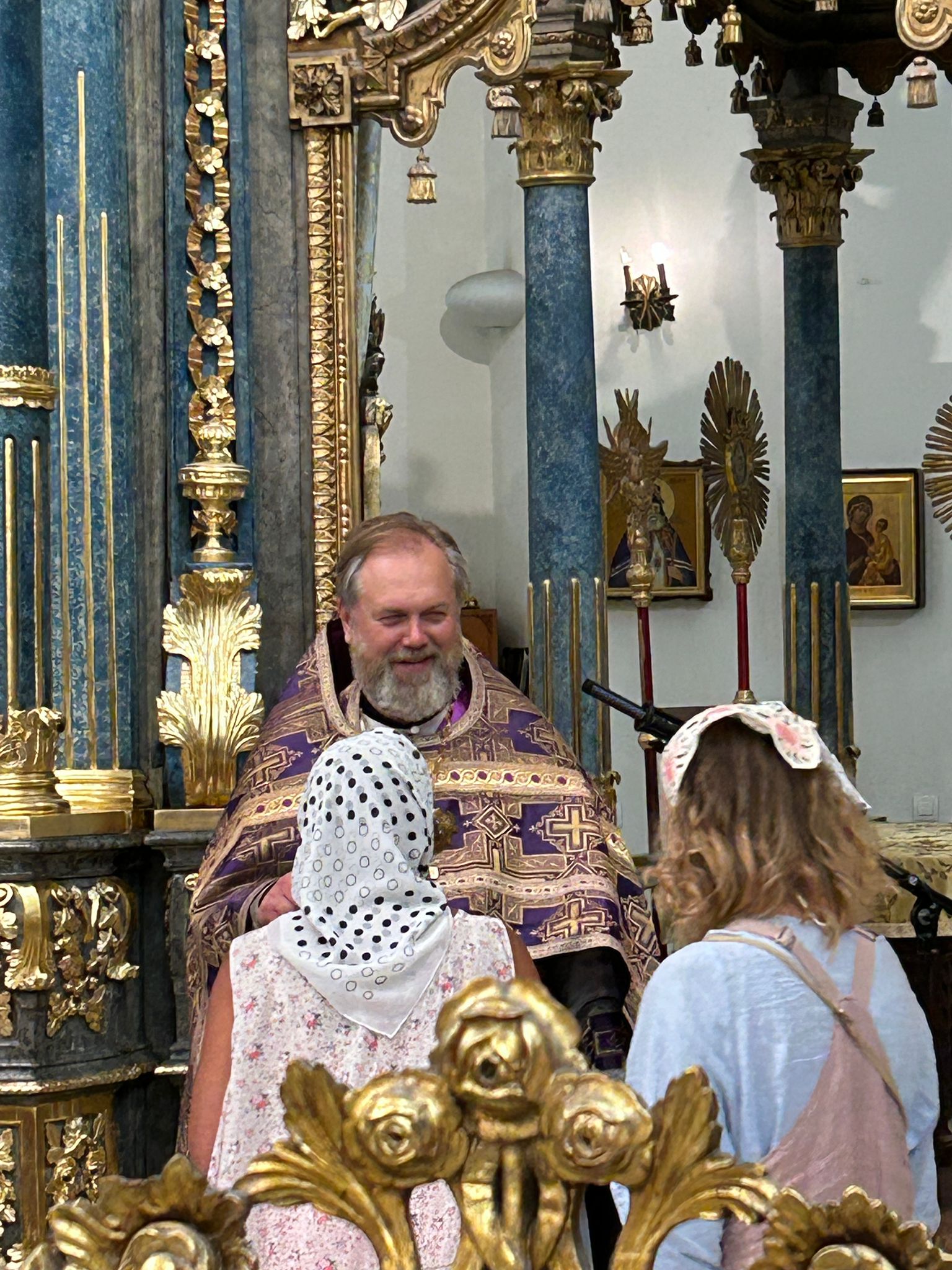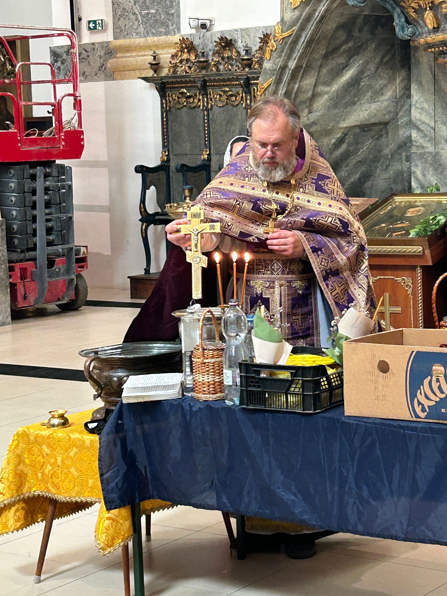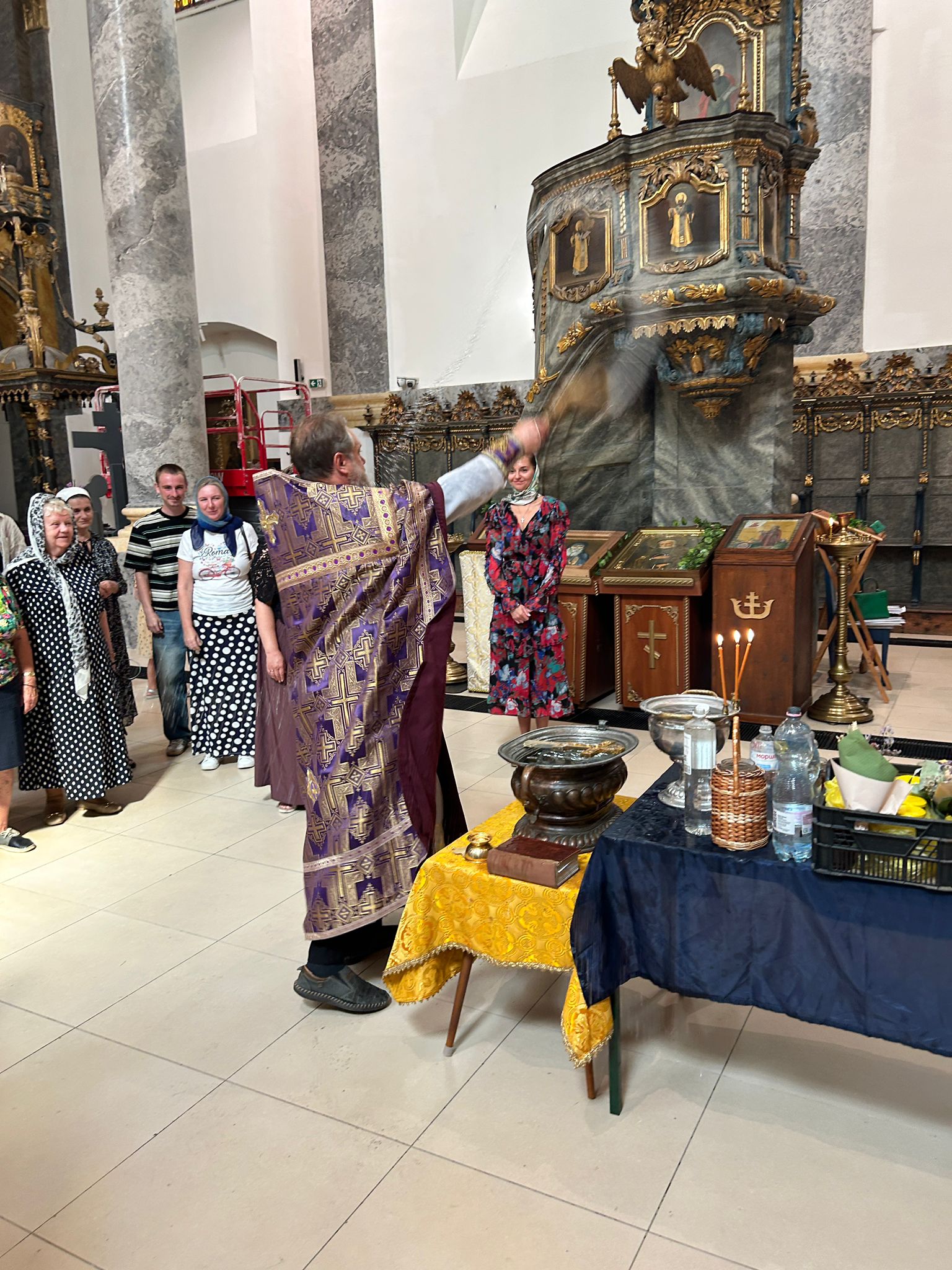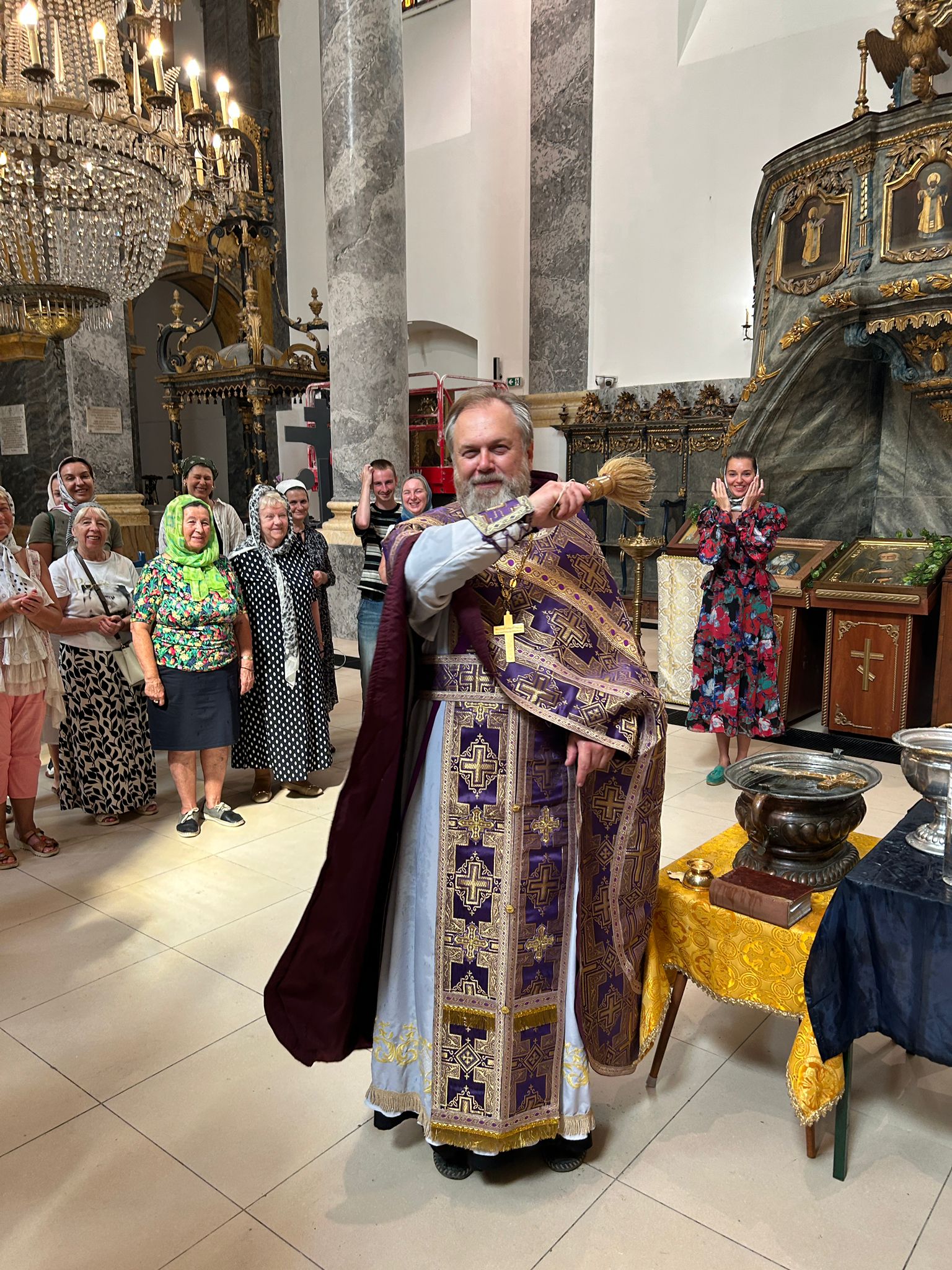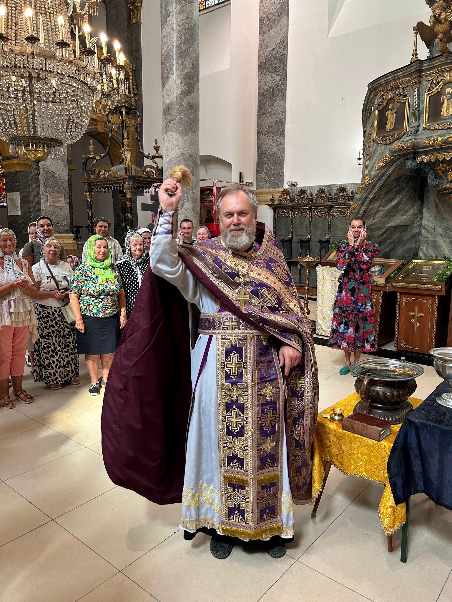14 августа 2025 года в Свято-Троицком приходе Успенского кафедрального собора состоялась Божественная литургия. Ее совершил настоятель прихода иерей Димитрий Корнилов.